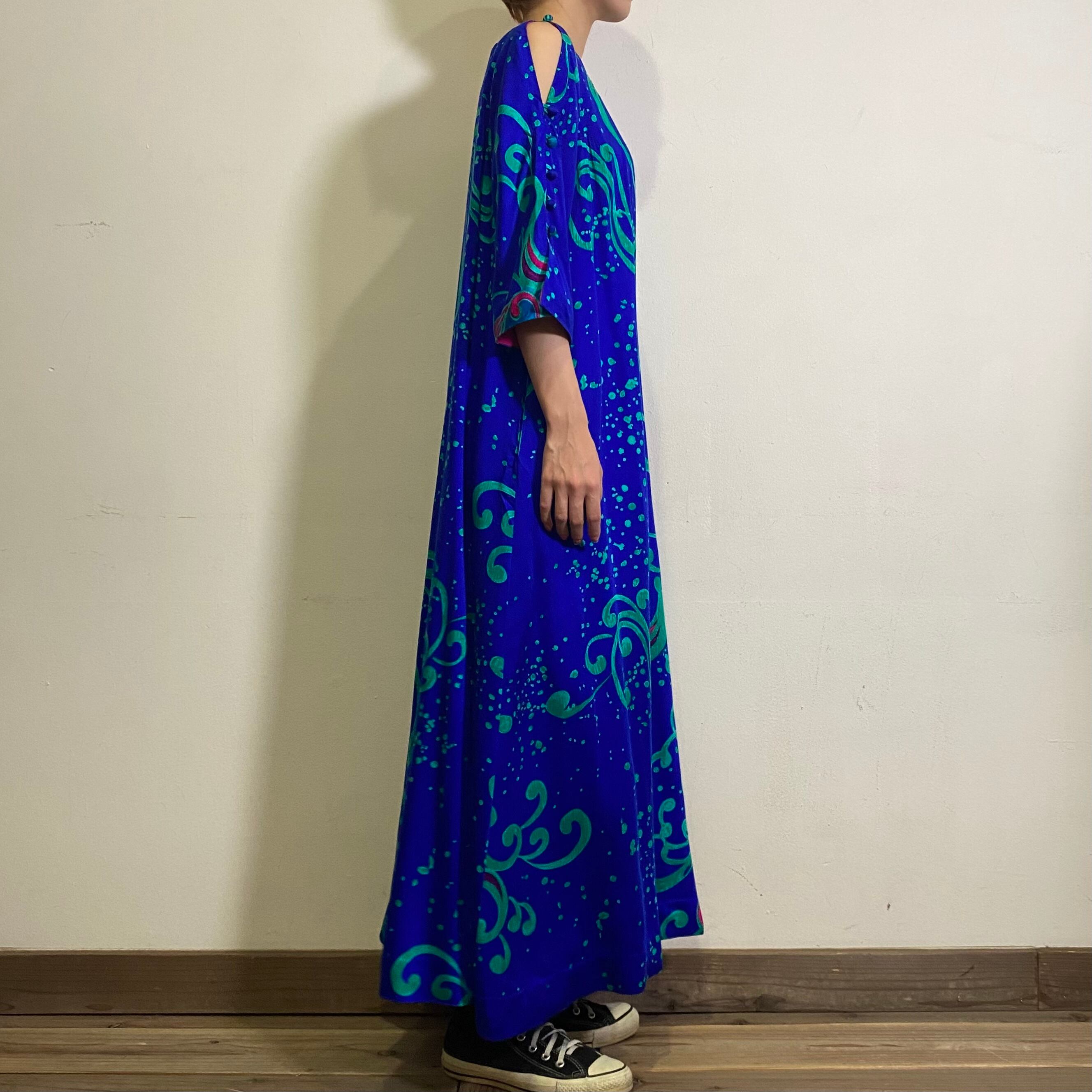 70s blue designed long dress