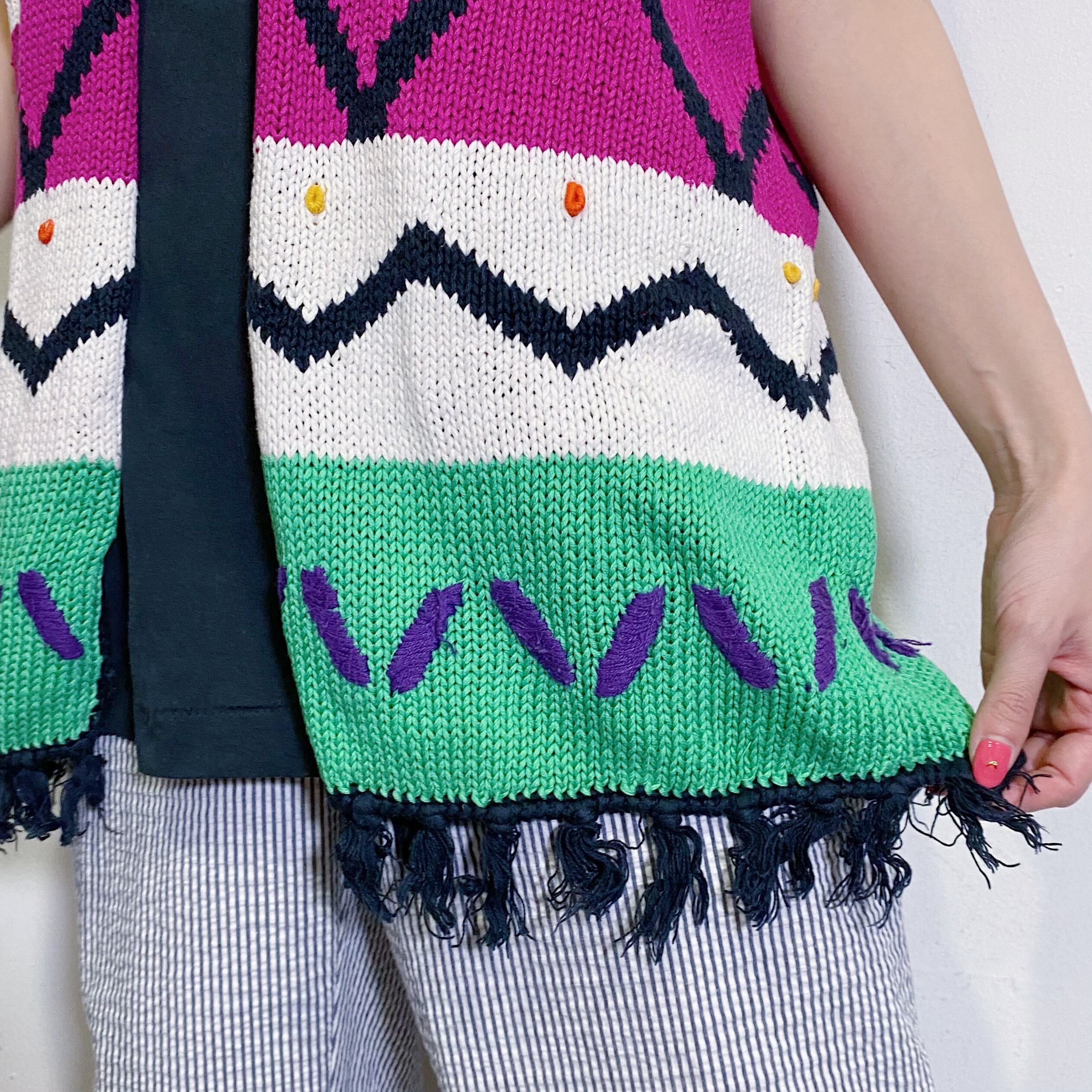 80s colorful fringe cotton knit vest