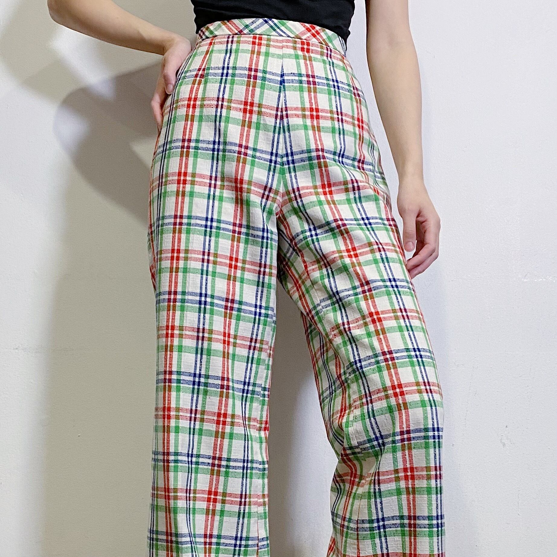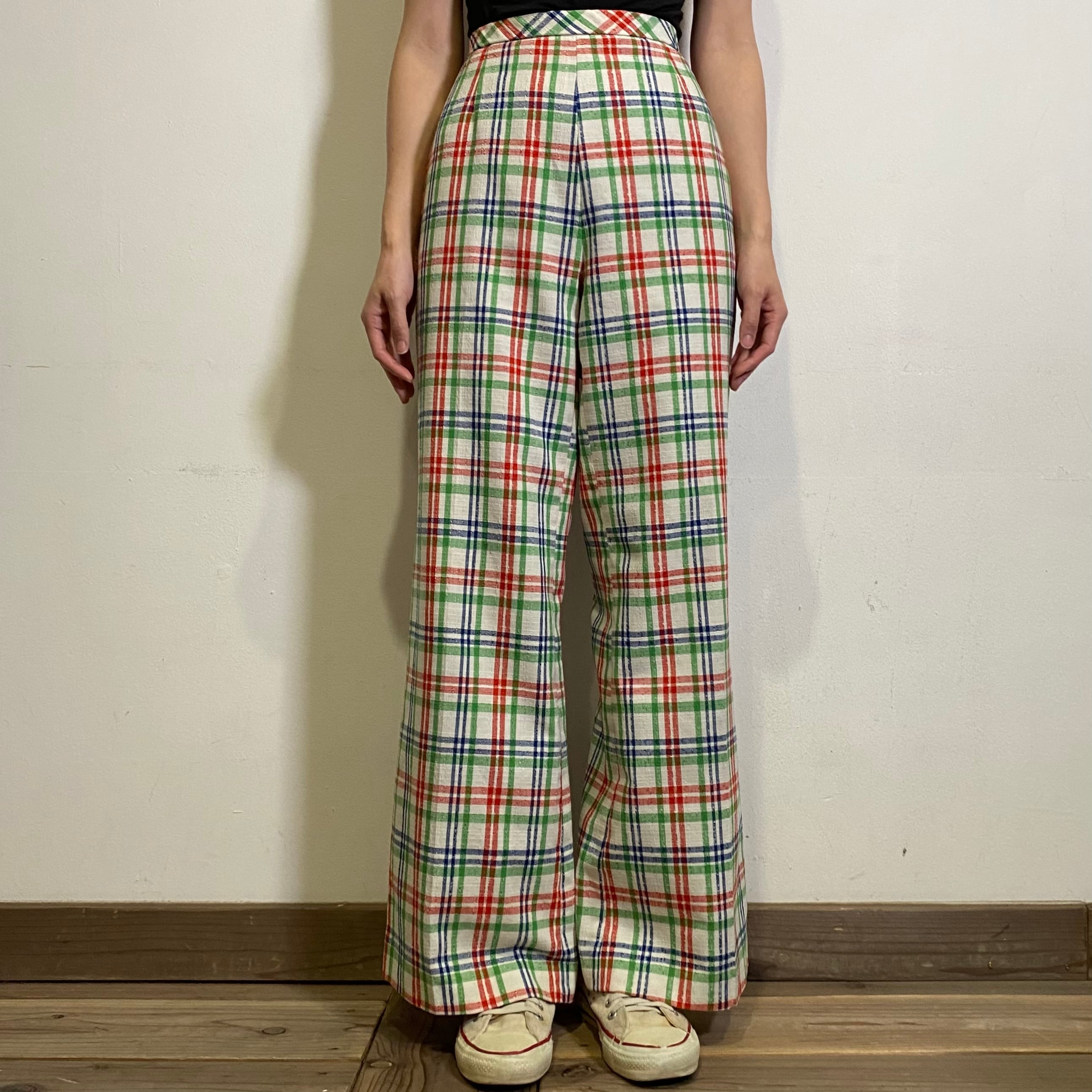赤×青×緑のチェックが可愛い、70年代のパンツです。