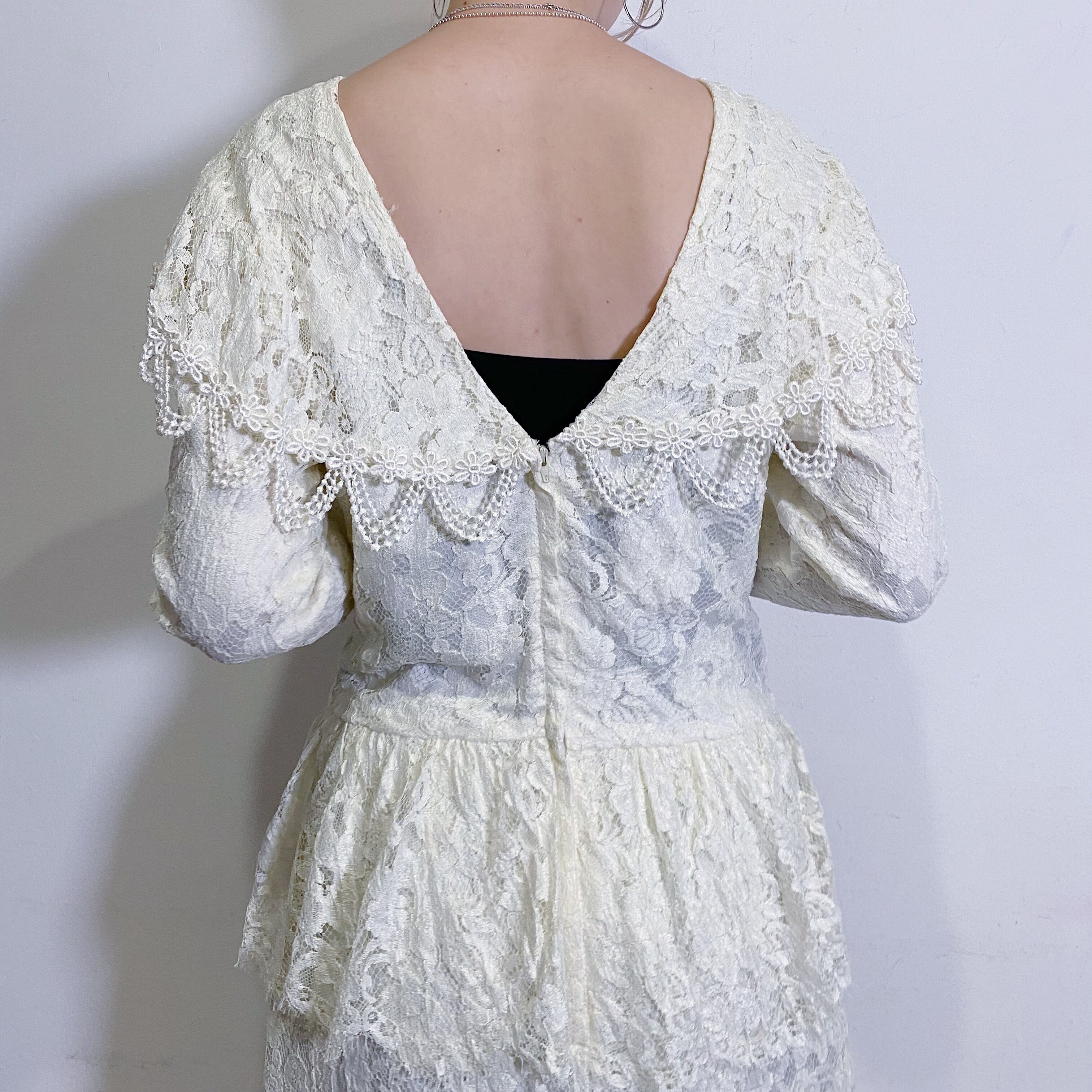 真っ白なお花の総レースに、フリフリとあしらわれたレースがとっておきに可愛い一枚。