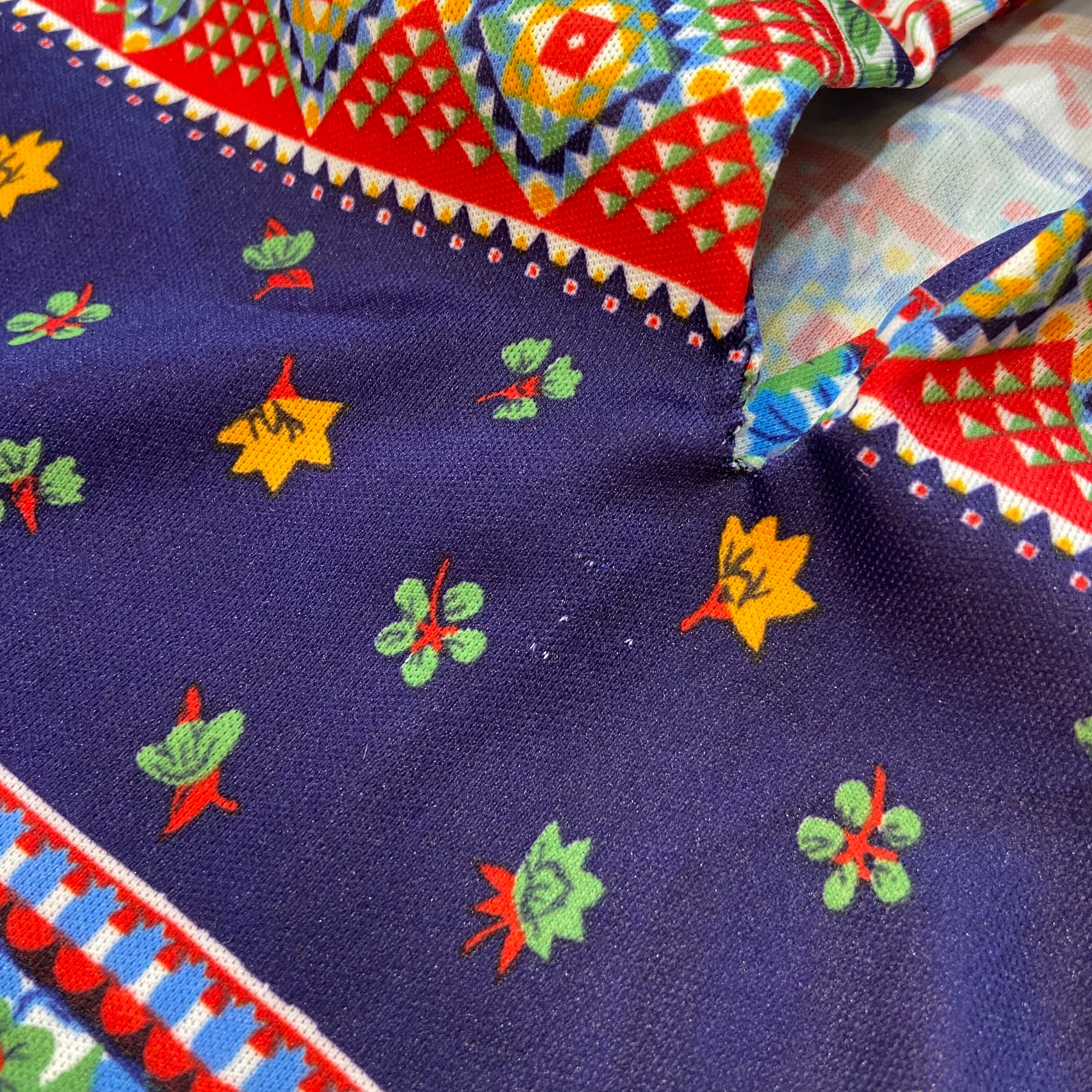 ネイビーや赤、緑などの色合いが可愛い、70年代のチュニックです。