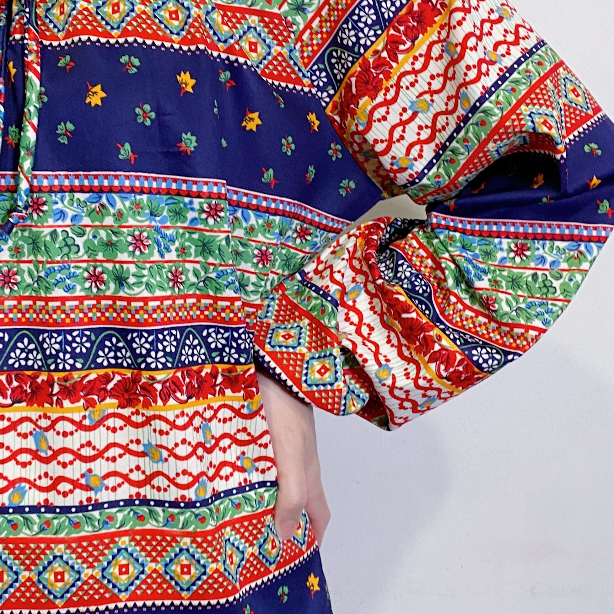 70s colorful flower printed tunic top