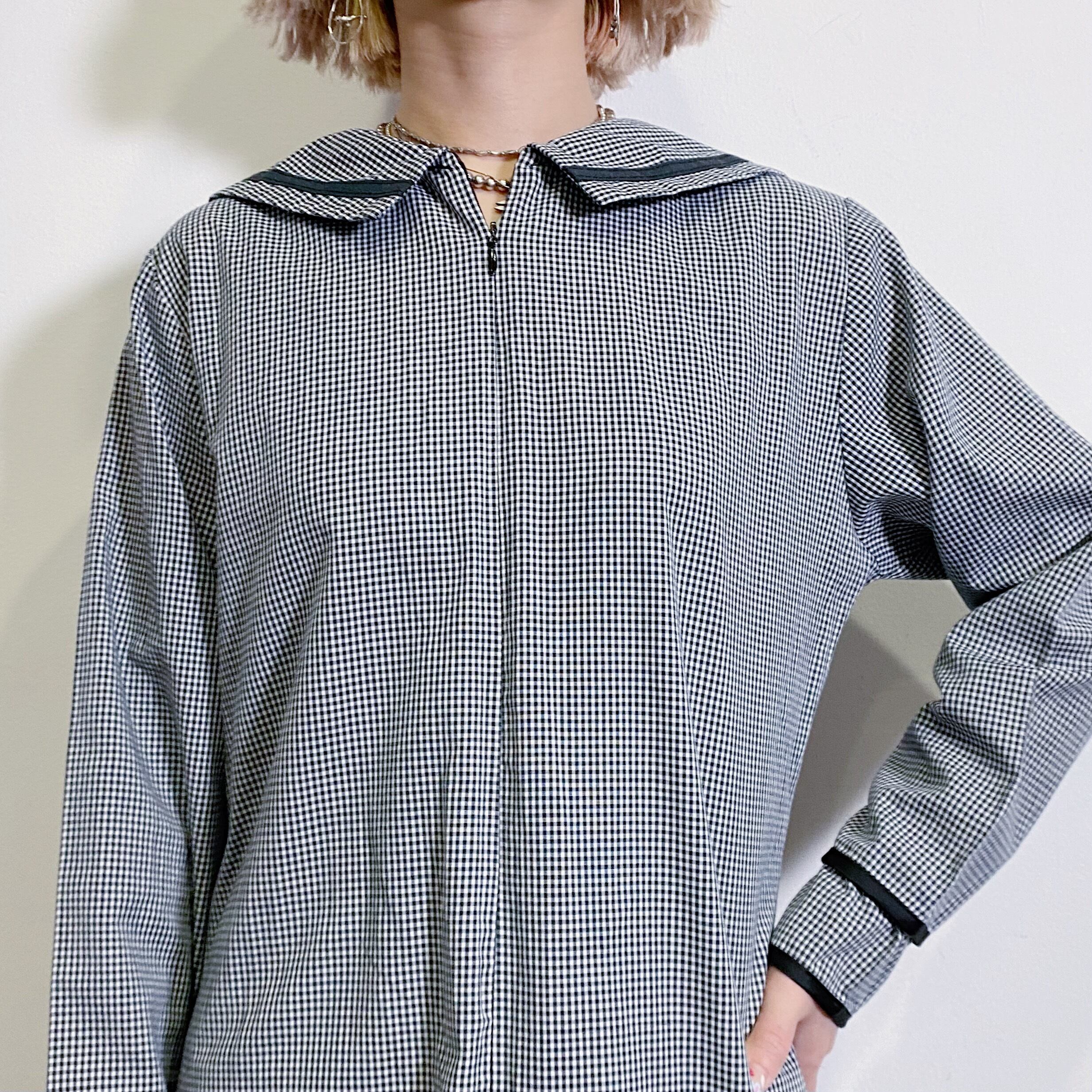 ギンガムチェックにセーラーカラーが可愛い、80年代のワンピースです。