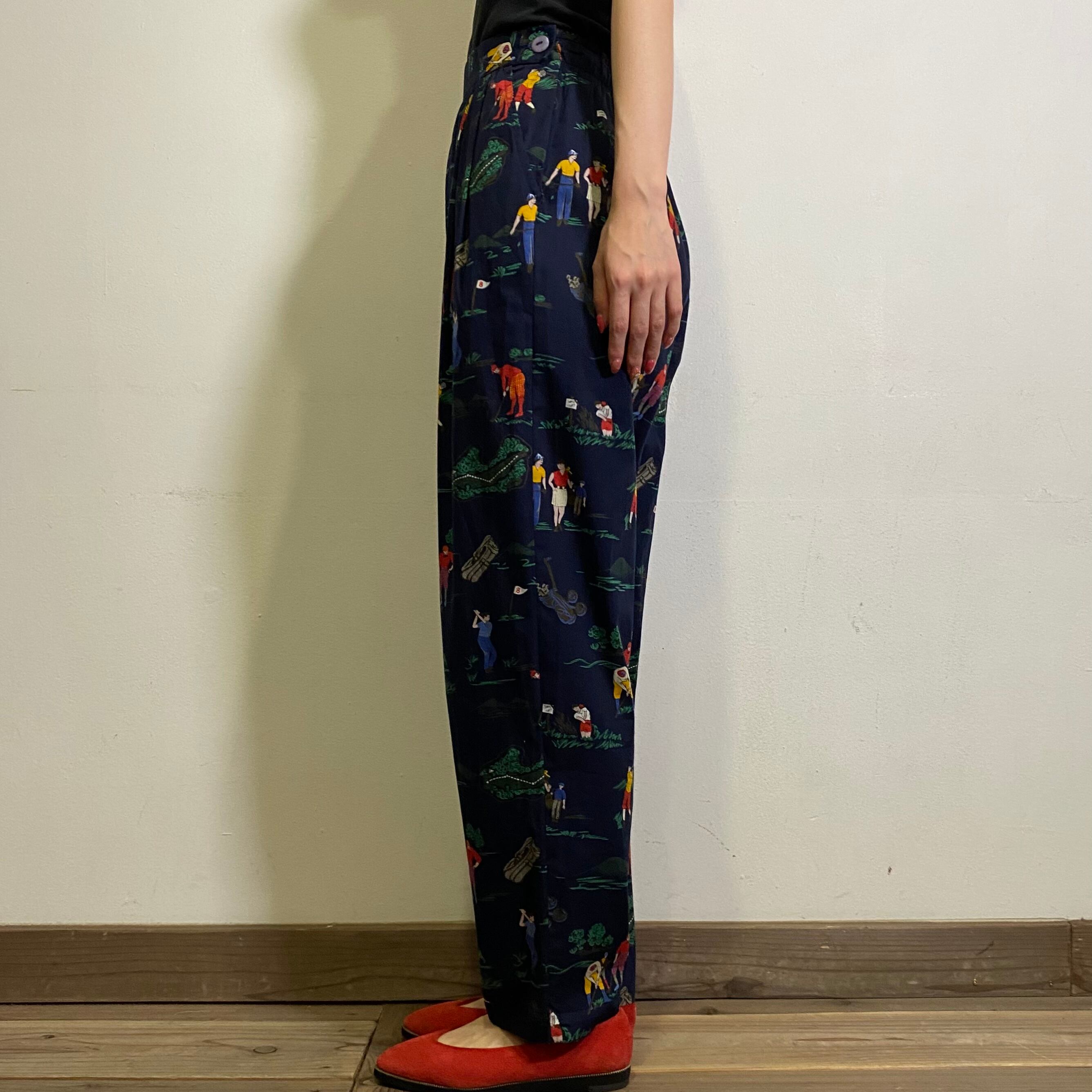 ゴルフをしている人々のプリントがシュールで可愛い、80年代のパンツです。