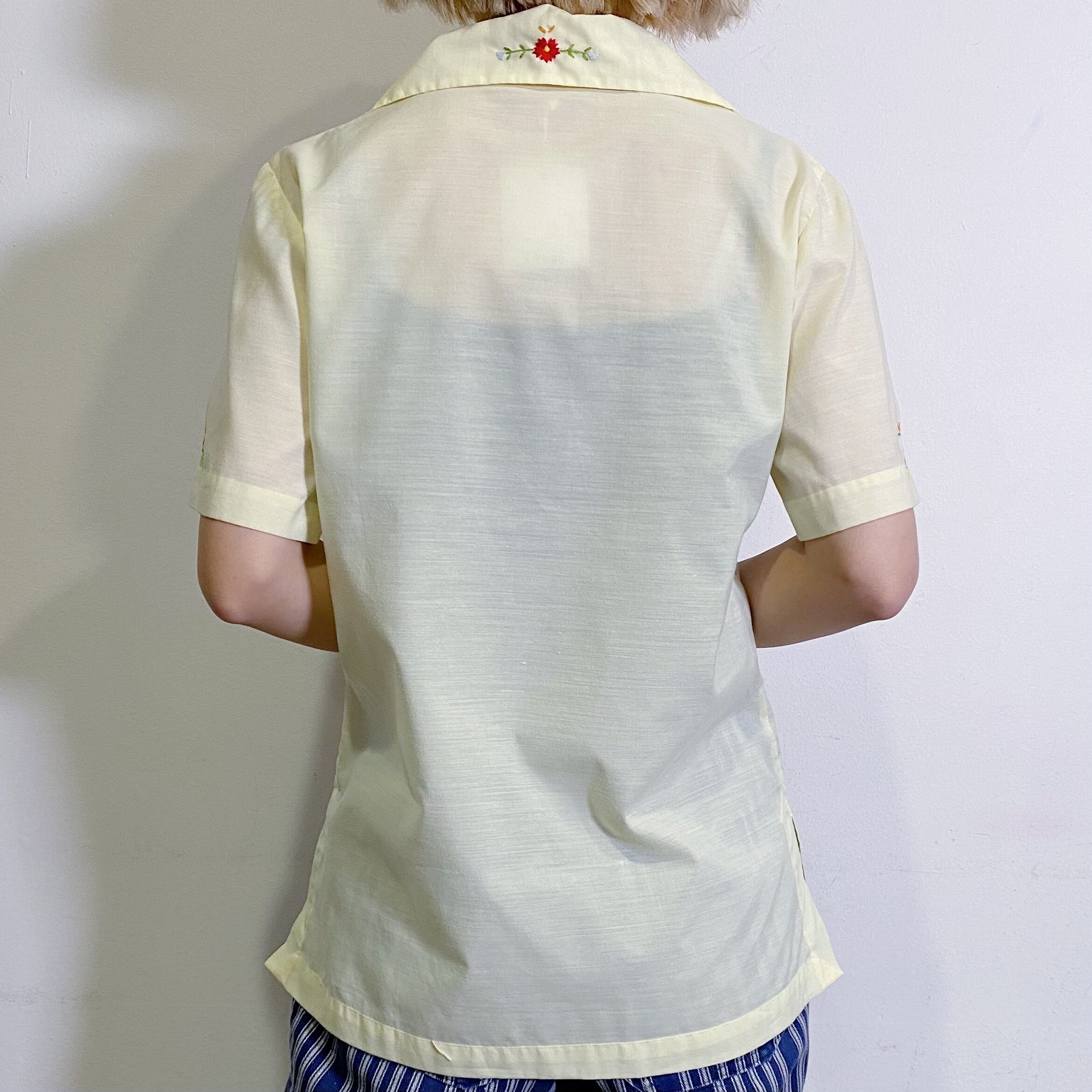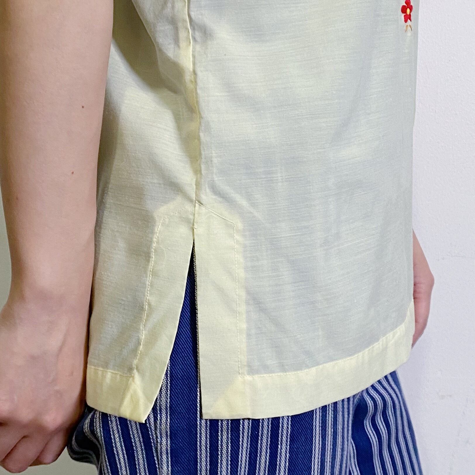 淡いイエローベースにカラフルなお花の刺繍が可愛い、70年代の半袖トップスです。