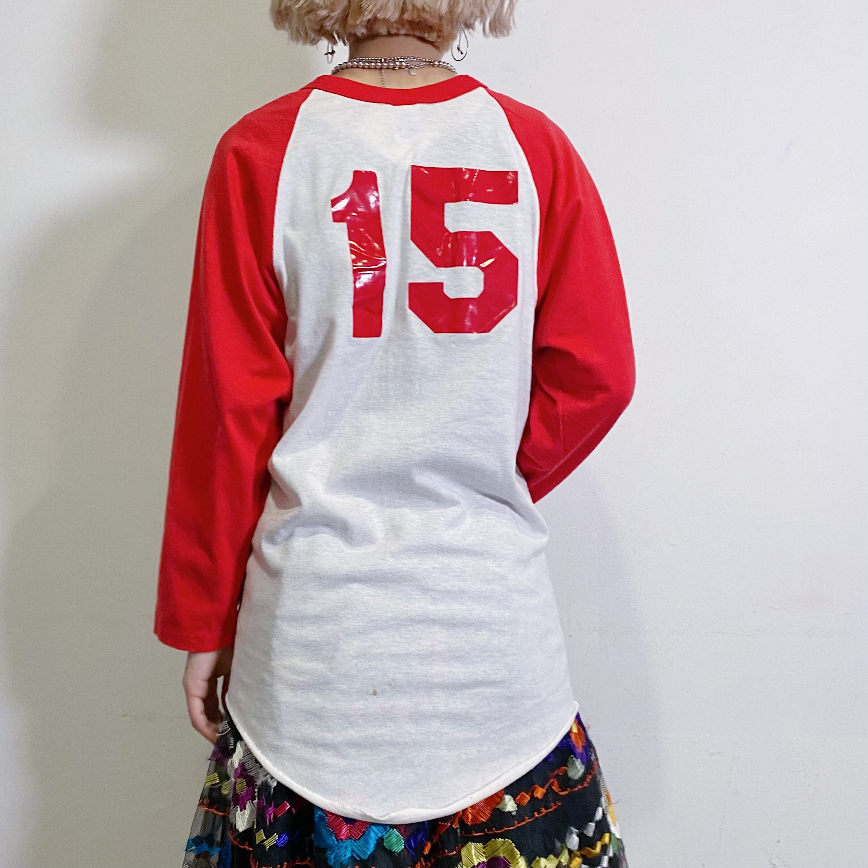 赤×白の組み合わせが可愛い、80年代のベースボールTシャツです。