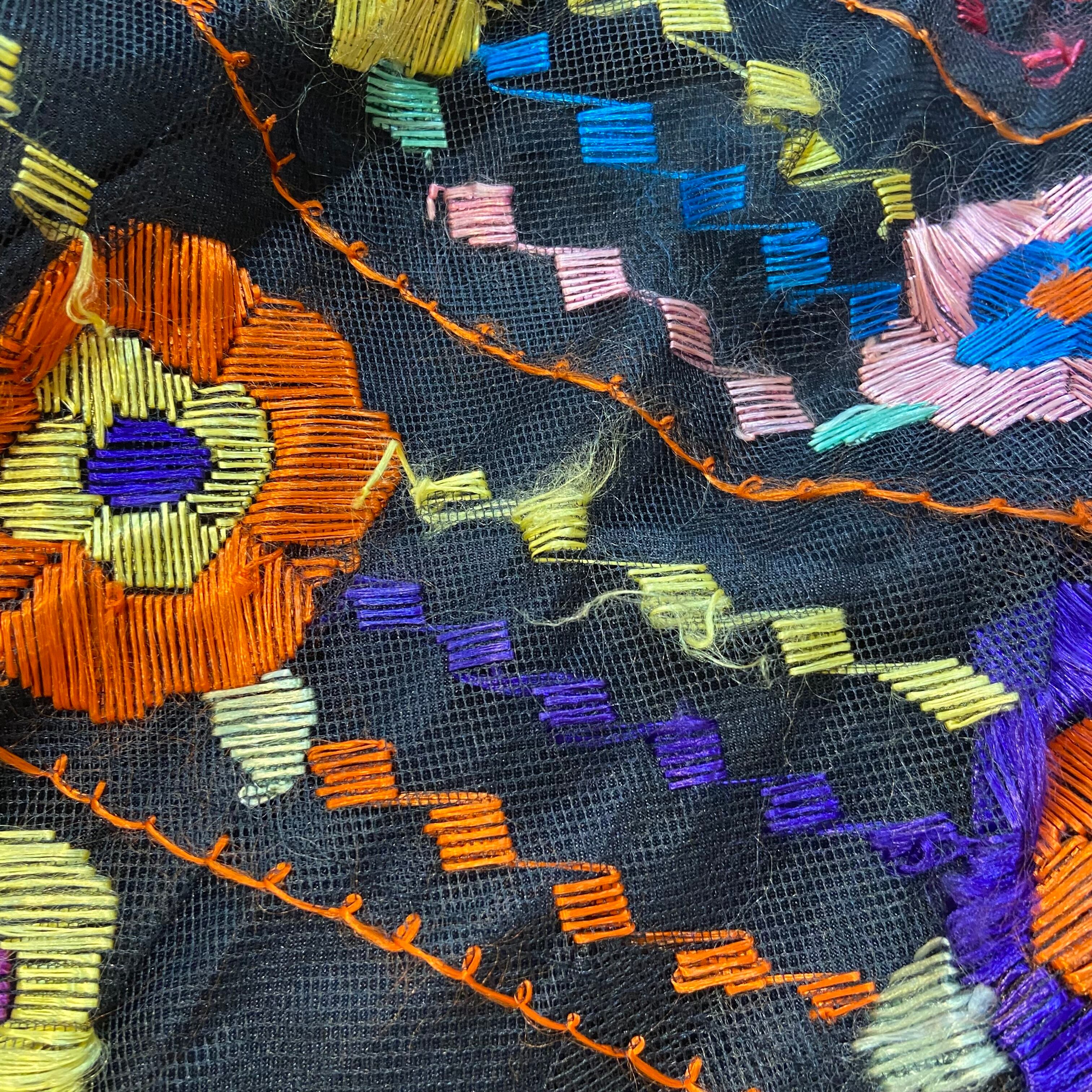 黒地にカラフルで光沢感のある刺繍は、いい意味でメキシコらしくざっくりとしておりとっても華やか。