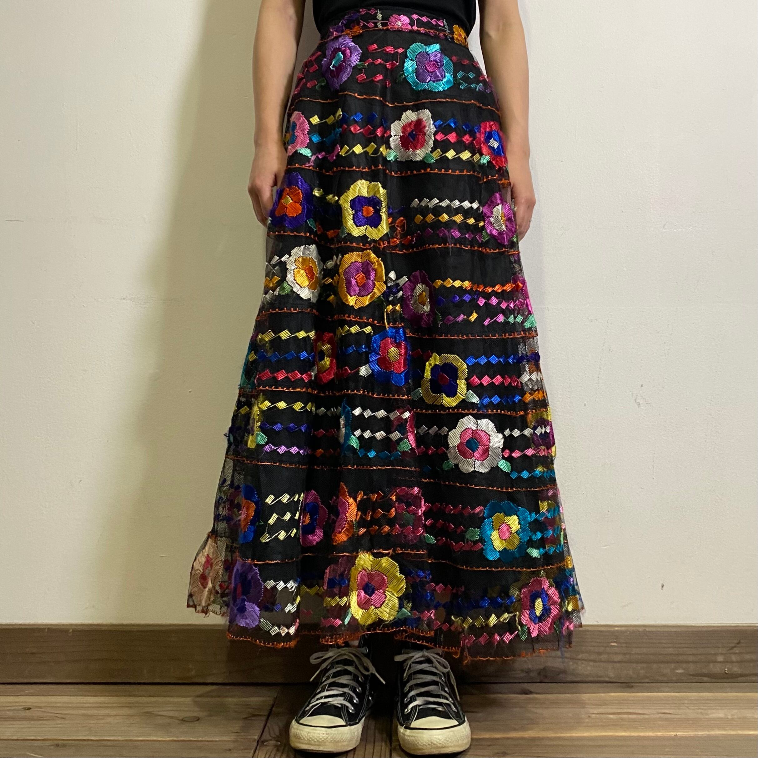 びっしりと施されたお花の手刺繍が可愛い、メキシコの伝統的なチュールスカートです。
