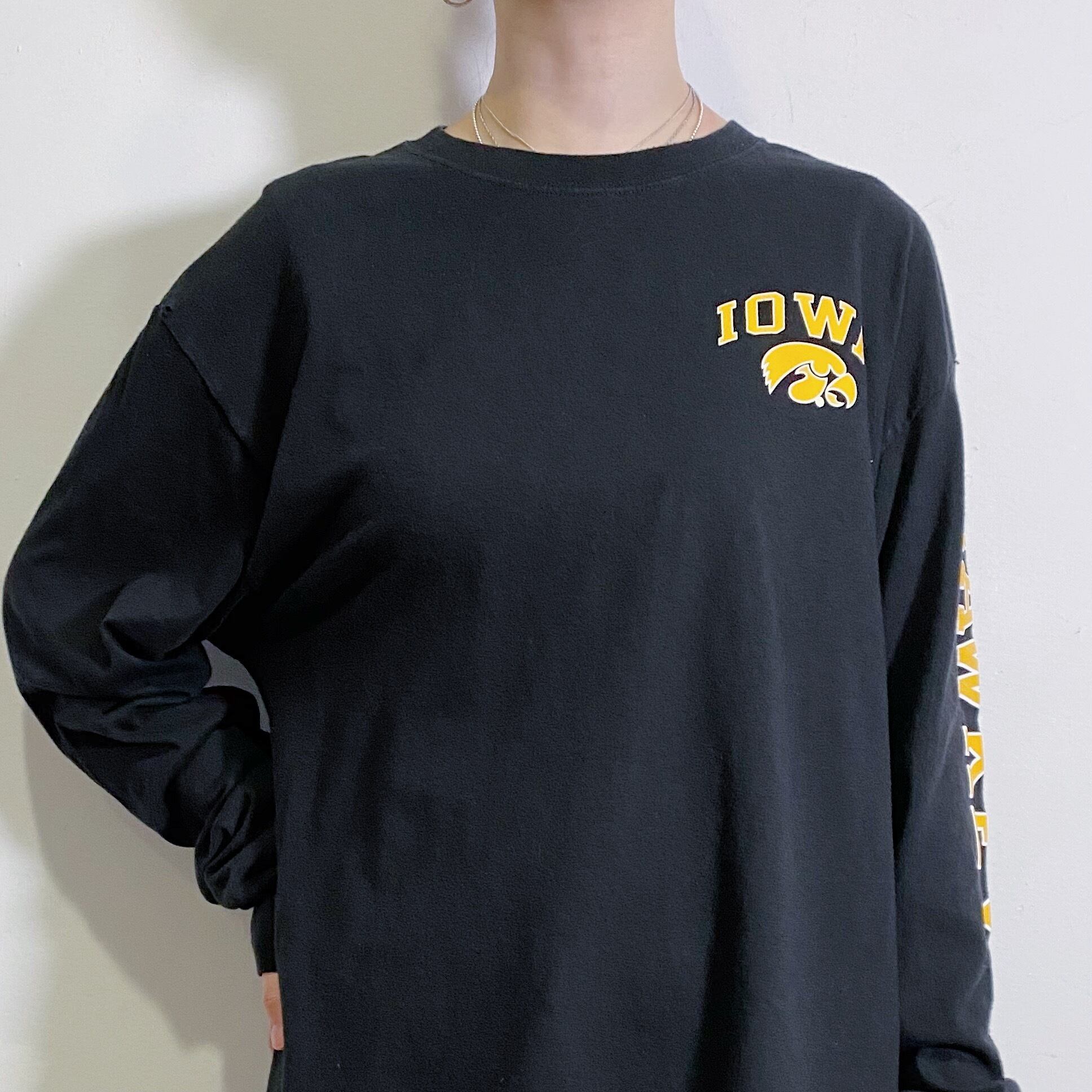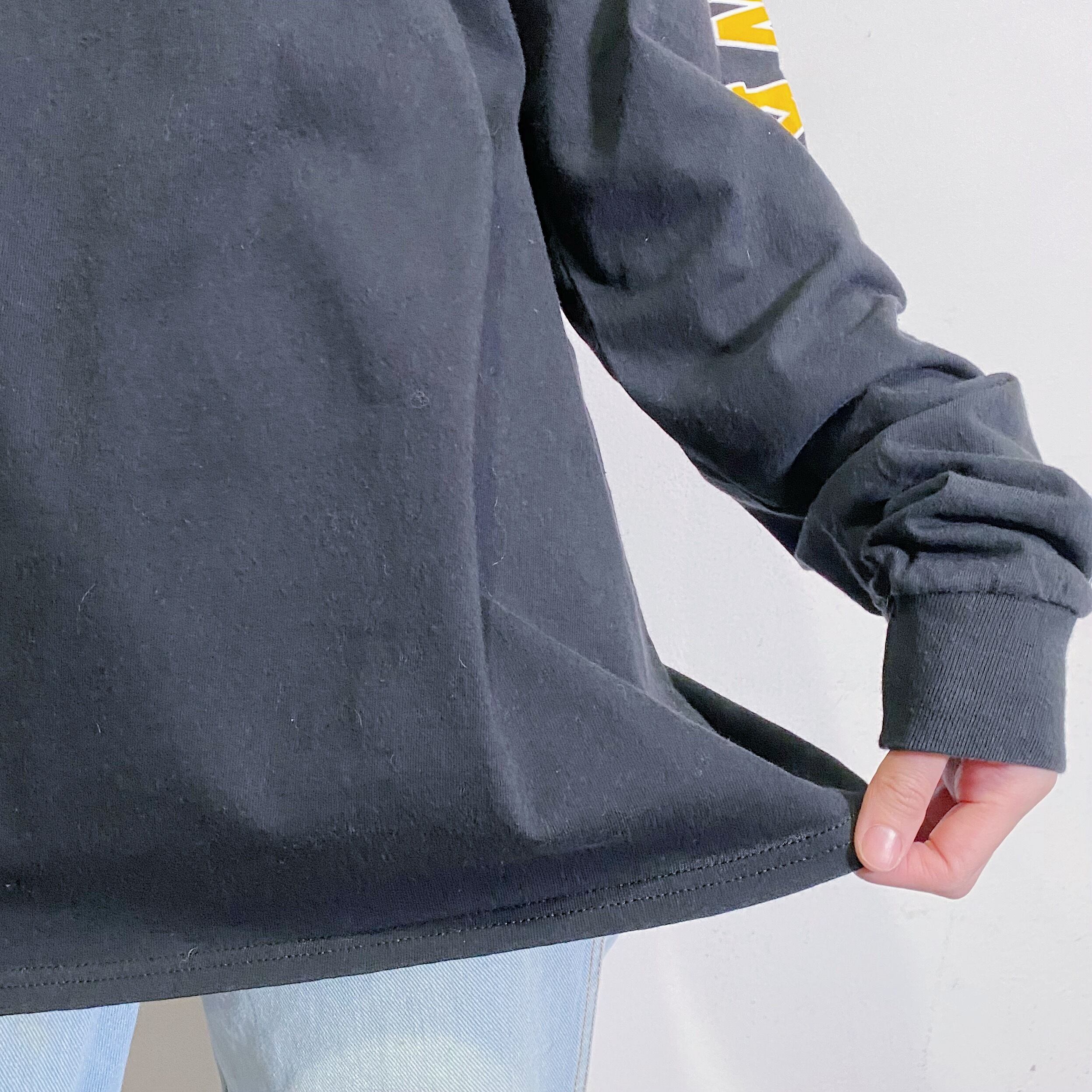ブラックベースにイエローのプリントがアクセントになった、championのロンTです。
