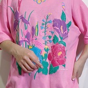 お花と蝶々のぷくっと立体的なプリントがキュートな、90年代のTシャツです。