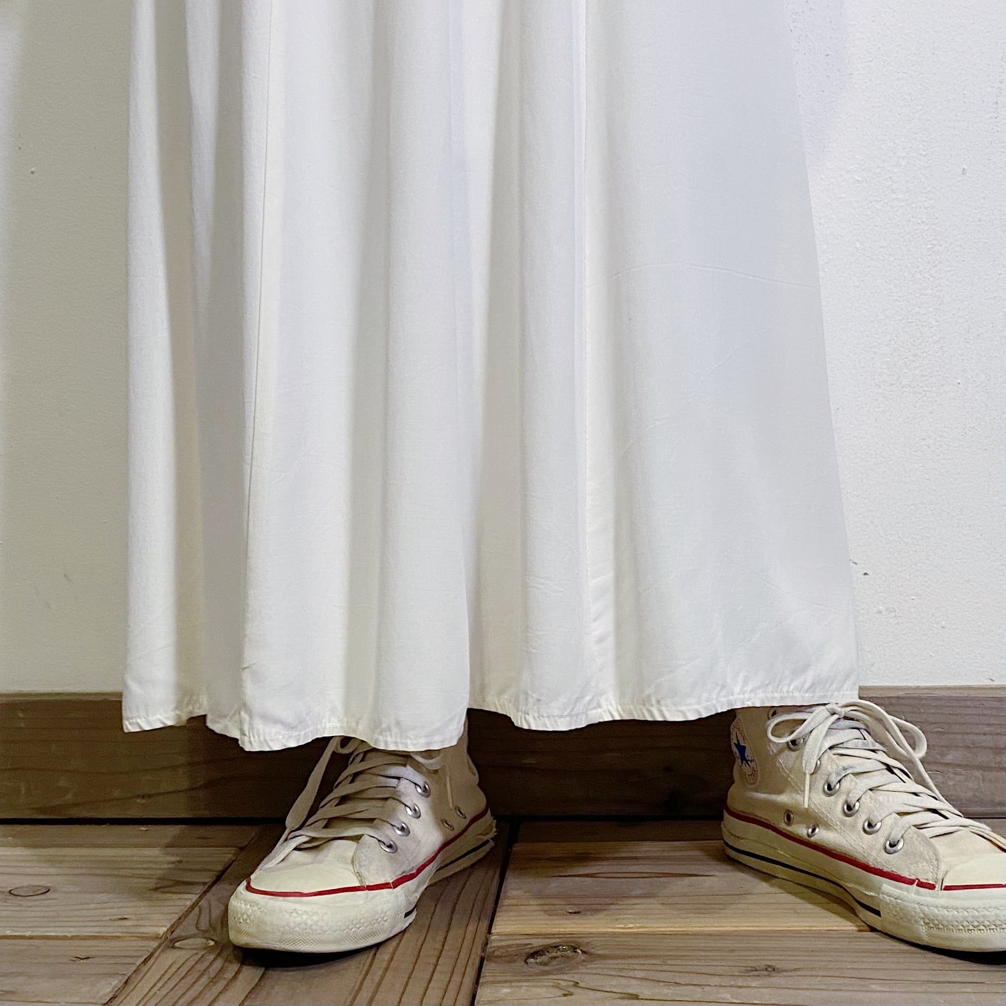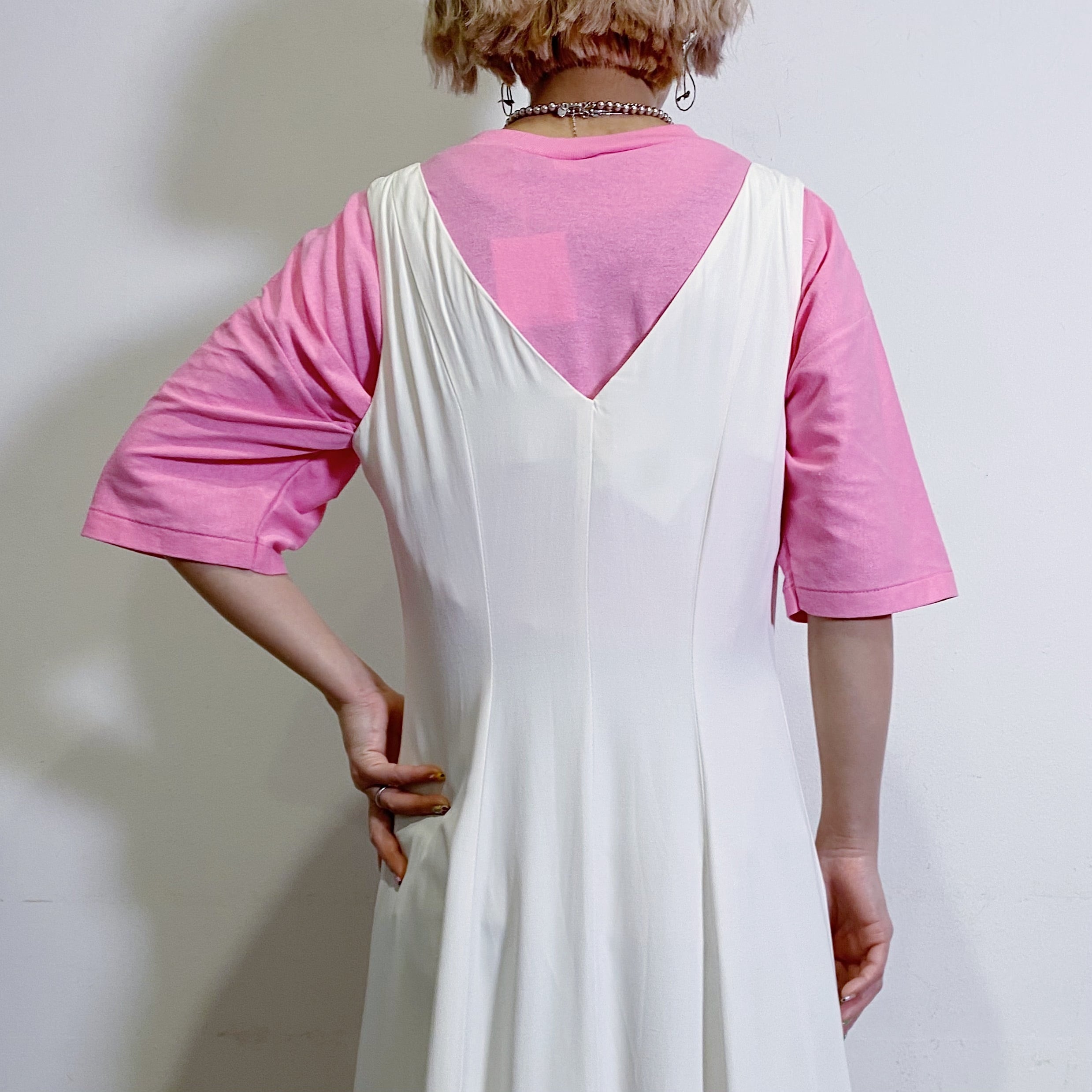 無地のホワイトカラーで使い勝手がいい、80年代のノースリーブワンピースです。