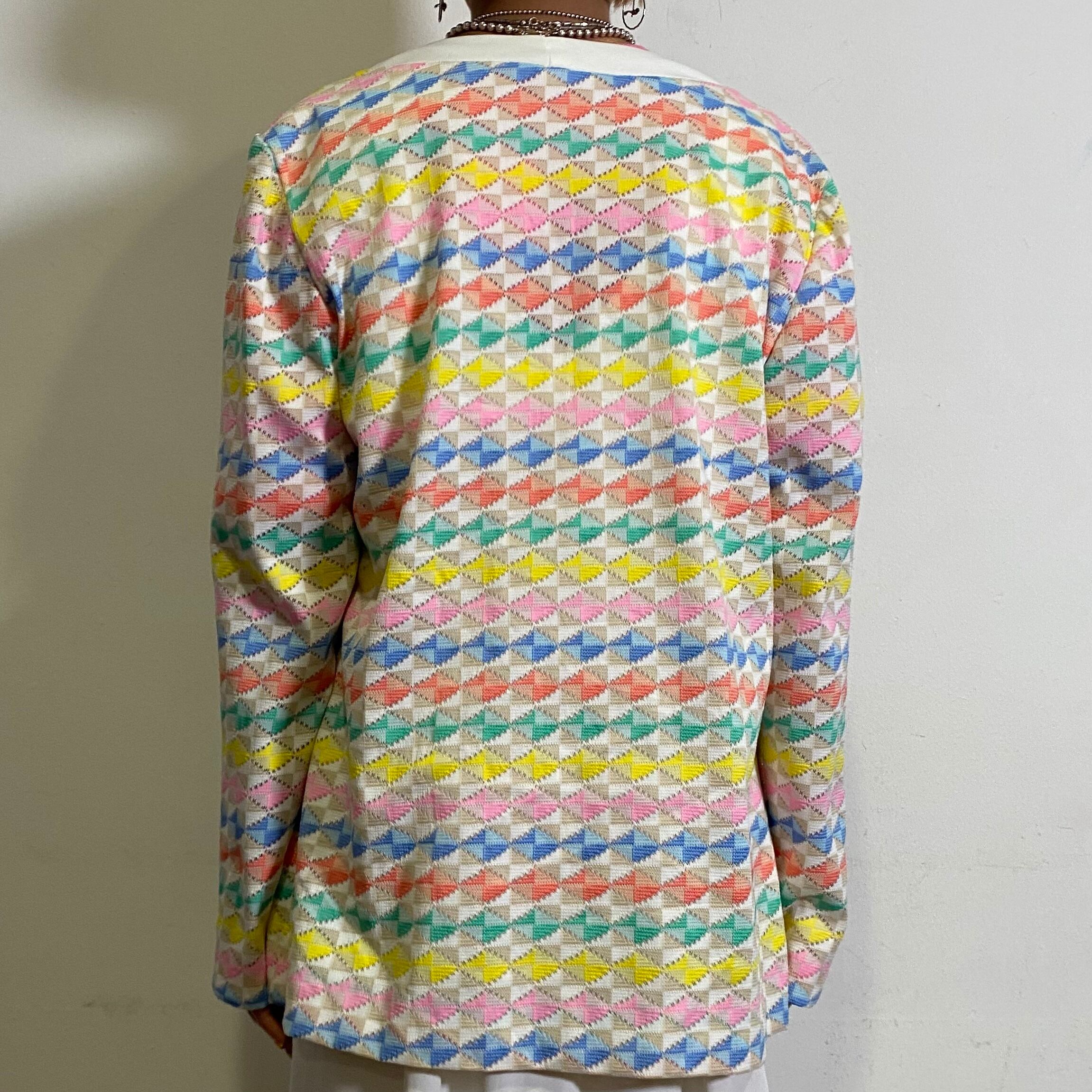 パステルのレインボーカラーが可愛い、70年代のカーディガンです。