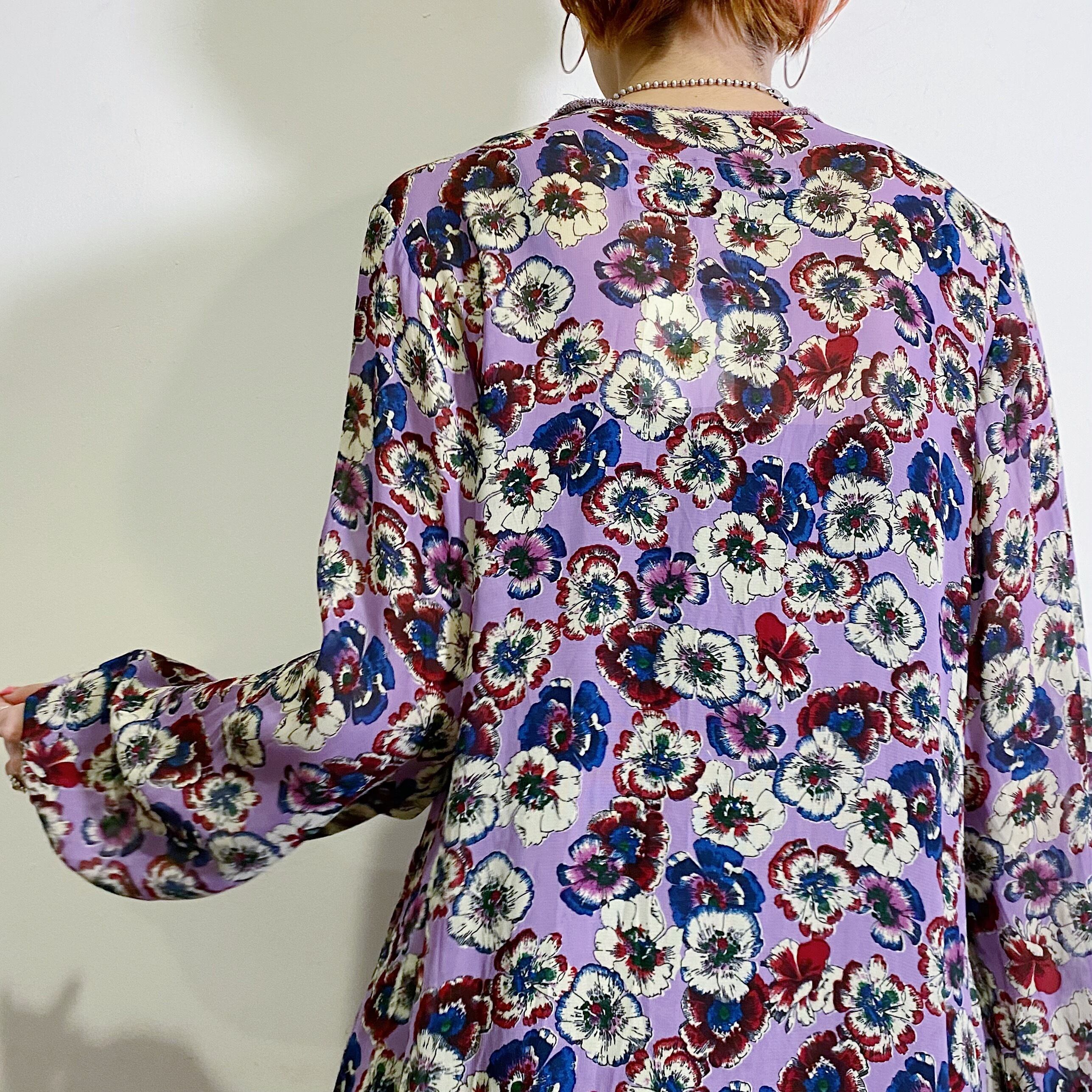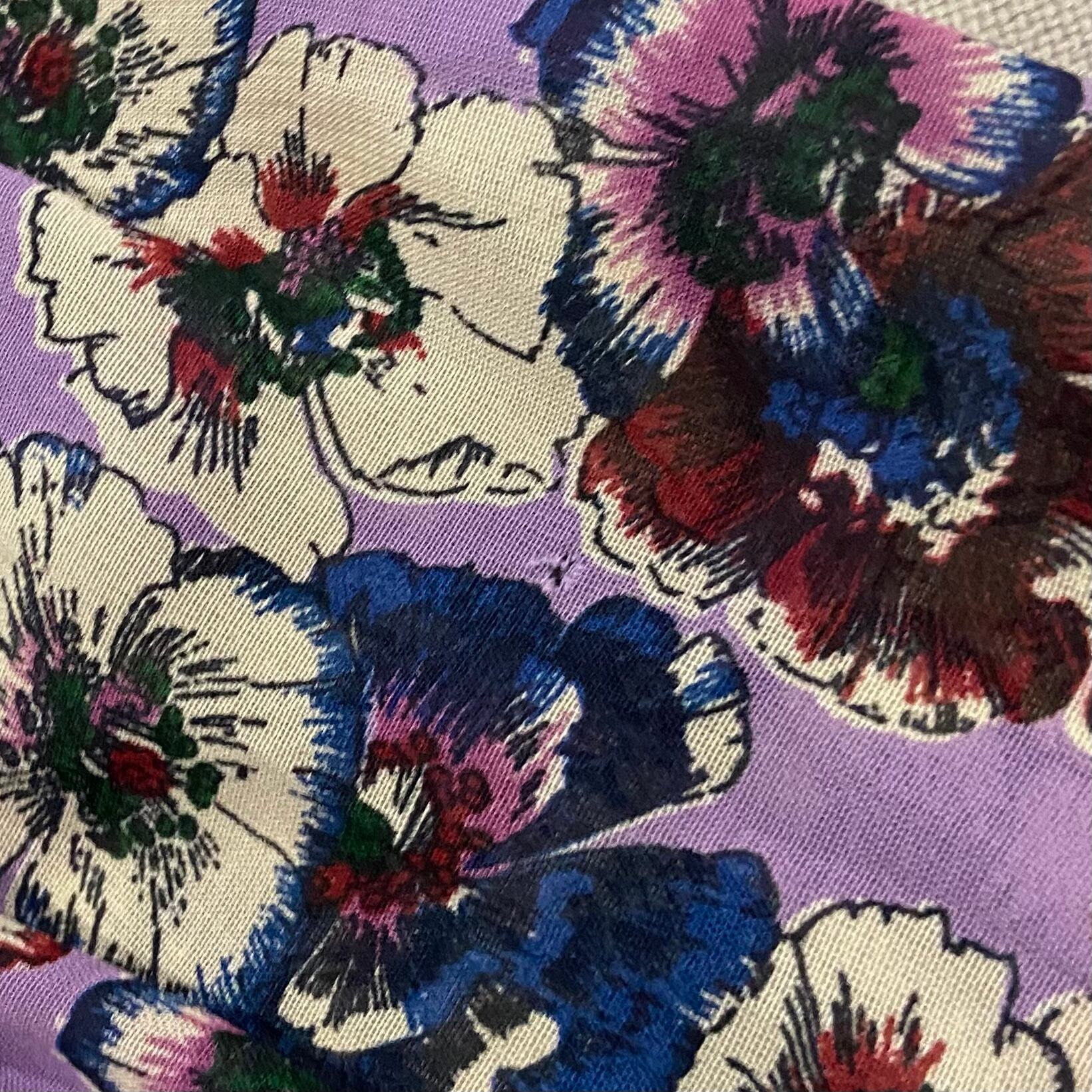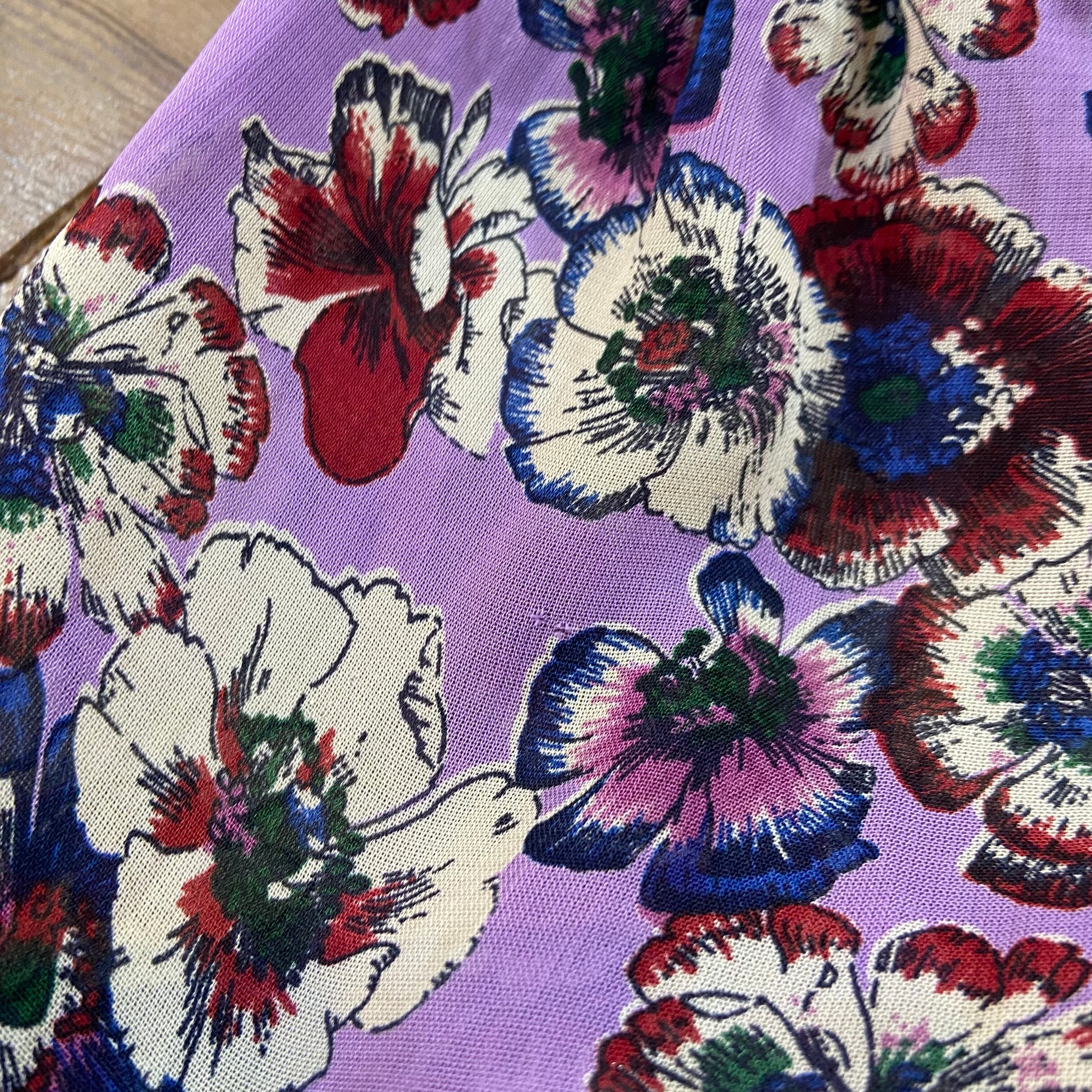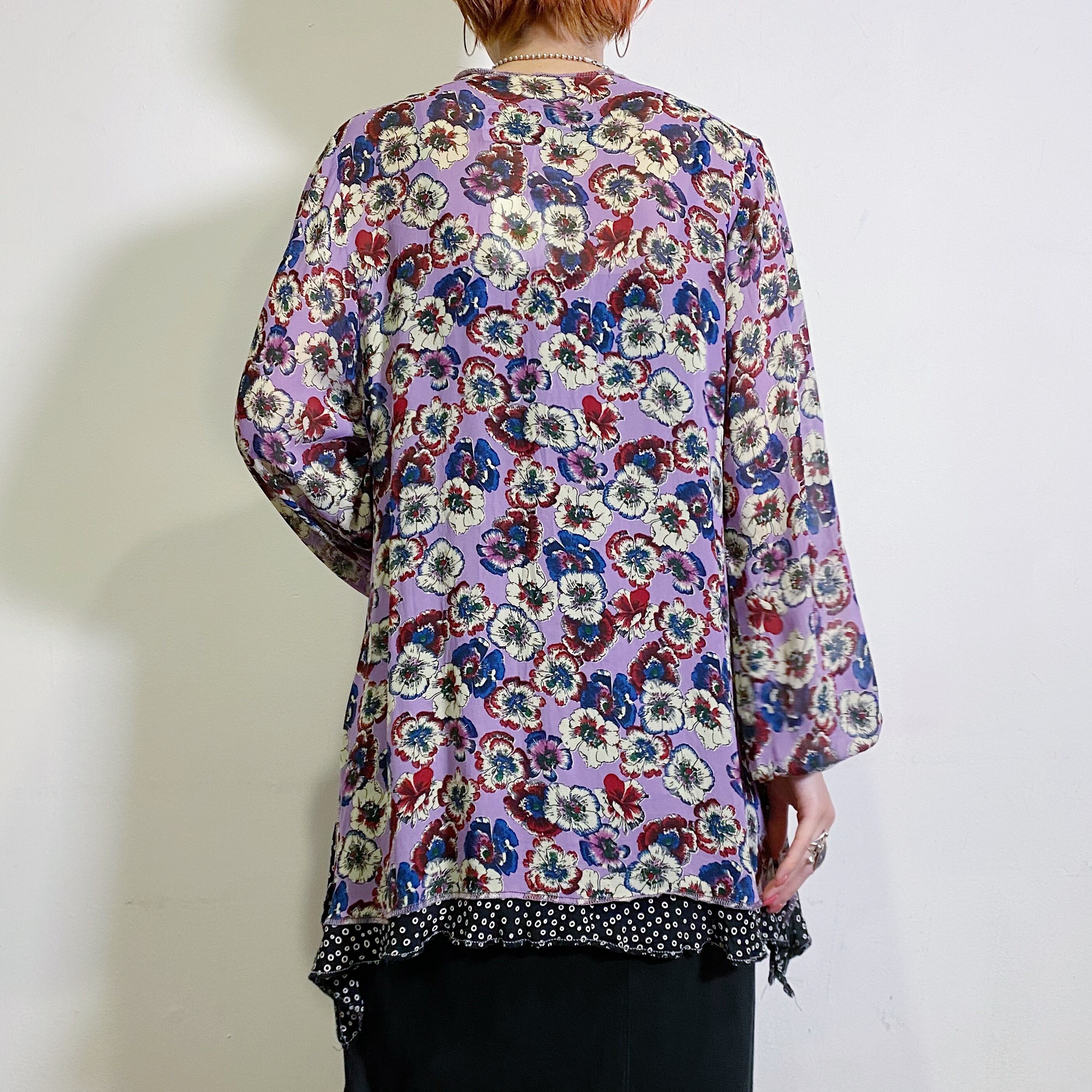 パンジーのようなお花柄とドットの2種類の生地を使ったデザインが可愛い、80年代のブラウスです。
