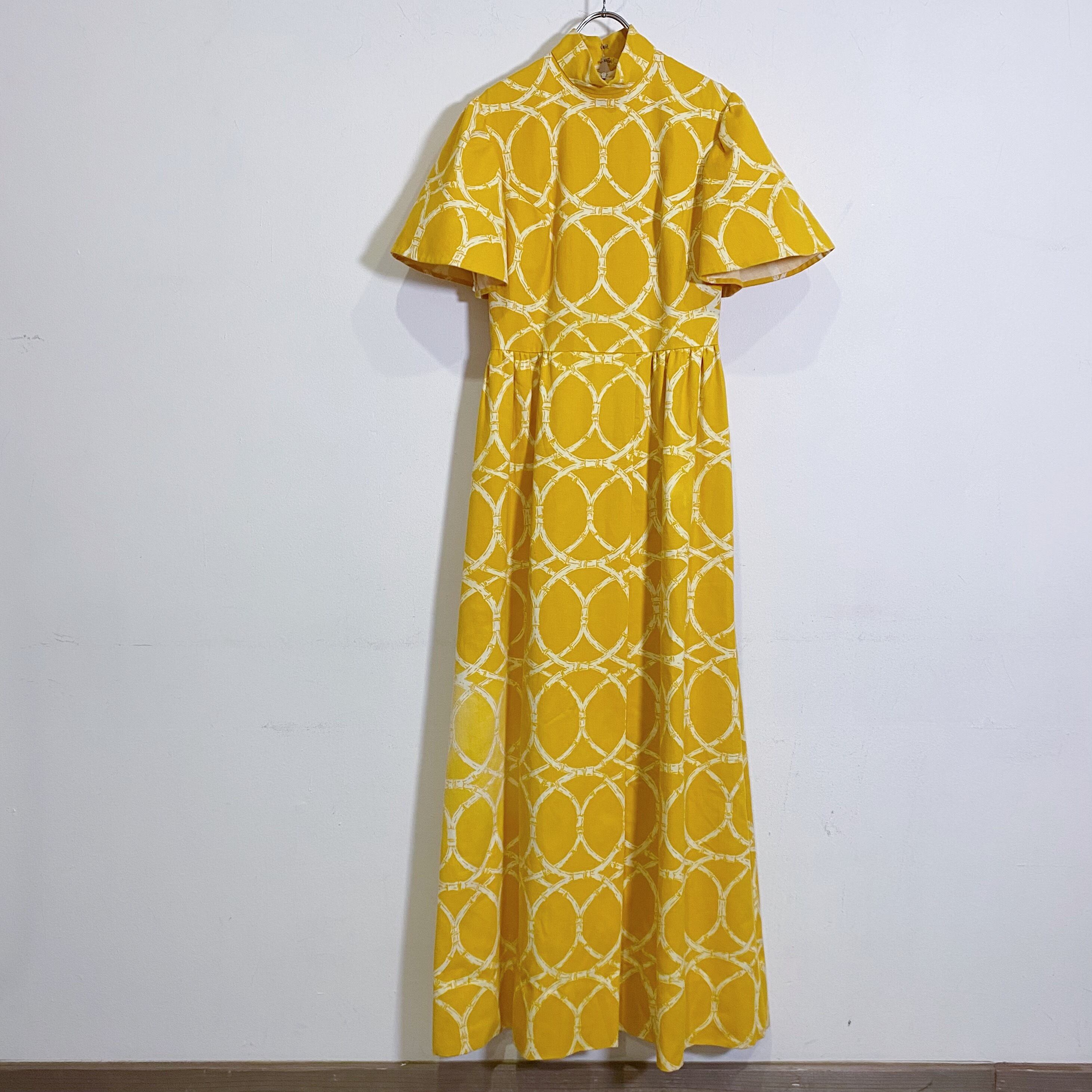 60s banboo pattern yellow long dress