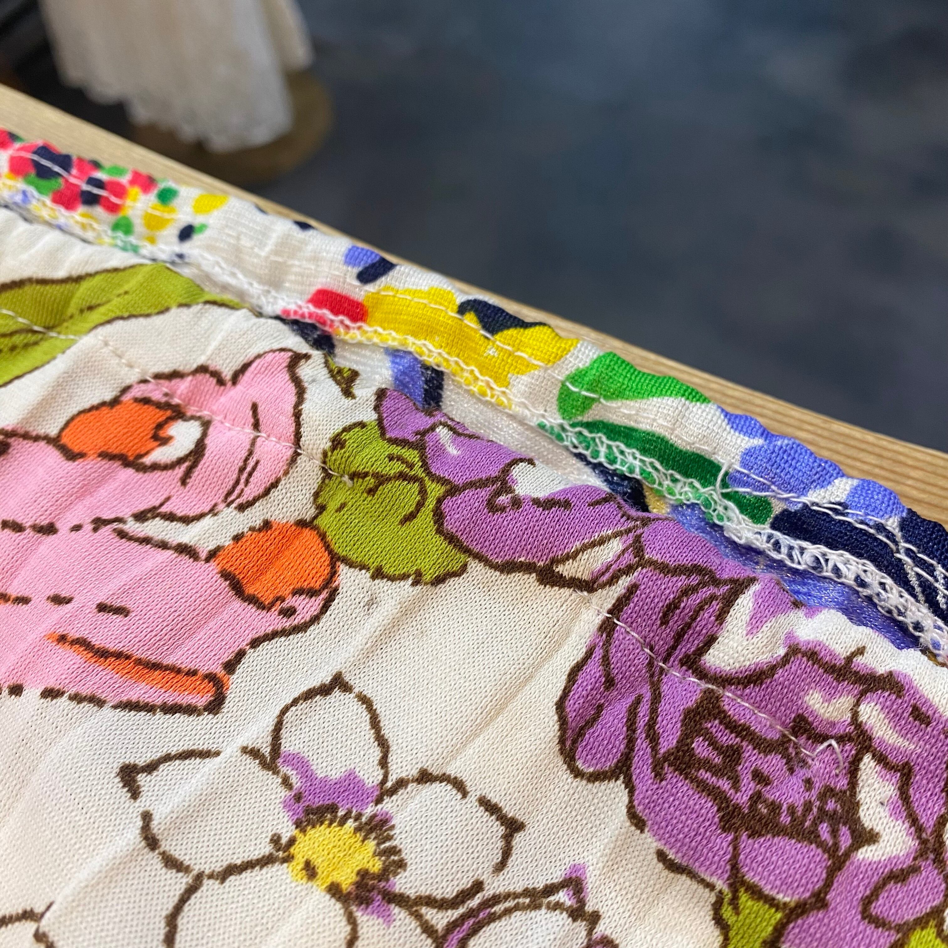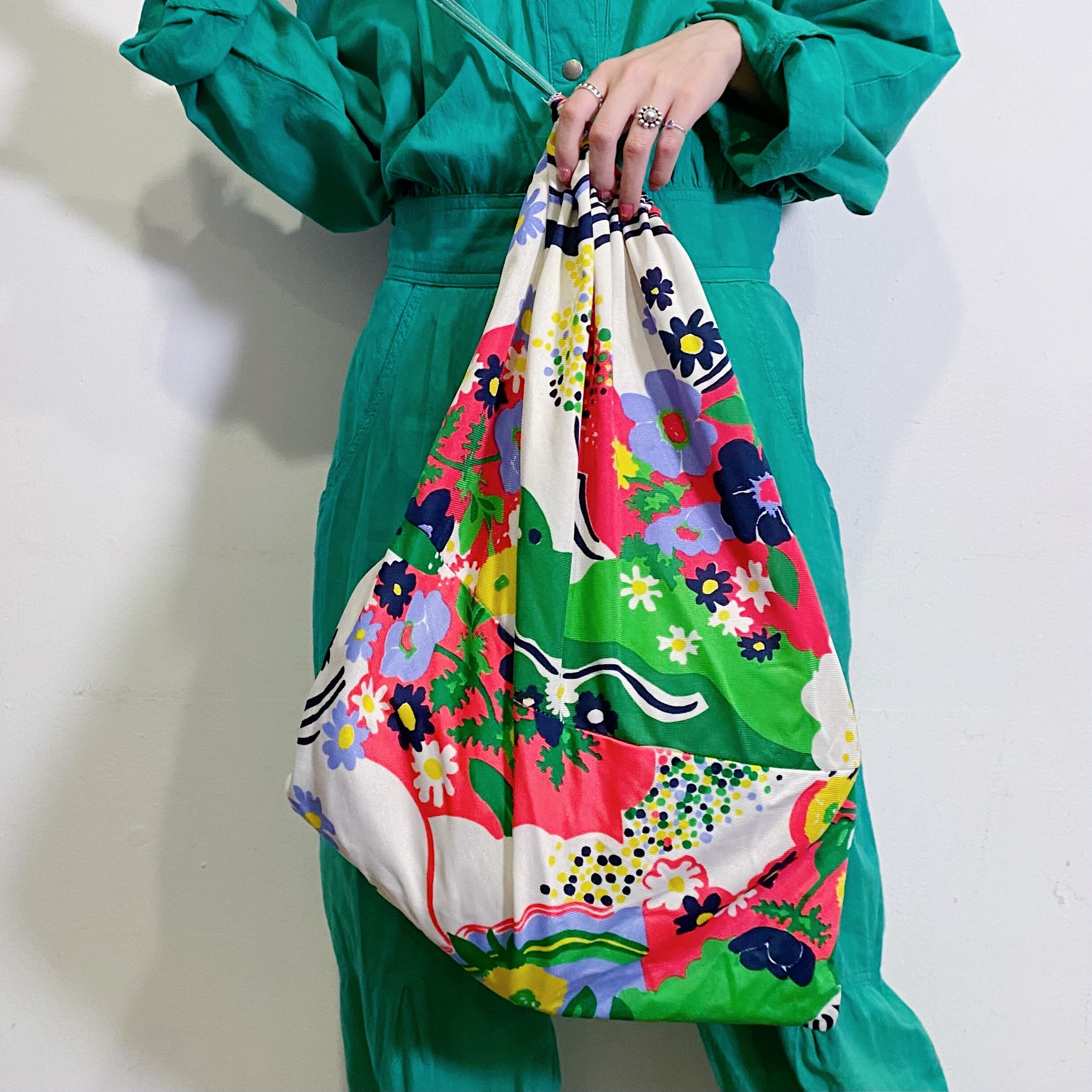 70年代の花柄ファブリックがパッチワークされた巾着です。