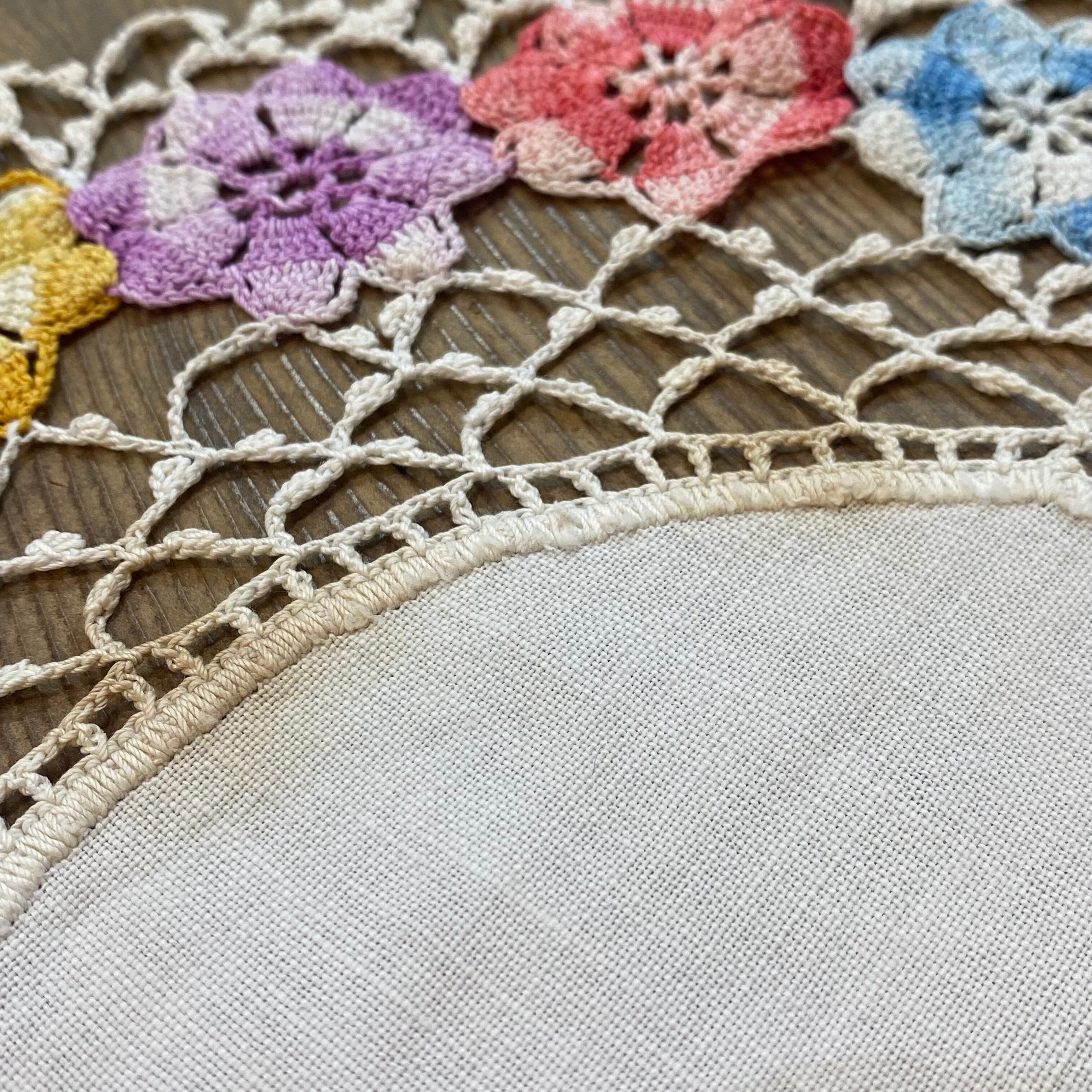 グラデーションカラーの手刺繡のお花が可愛い、40年代のファブリックです。
