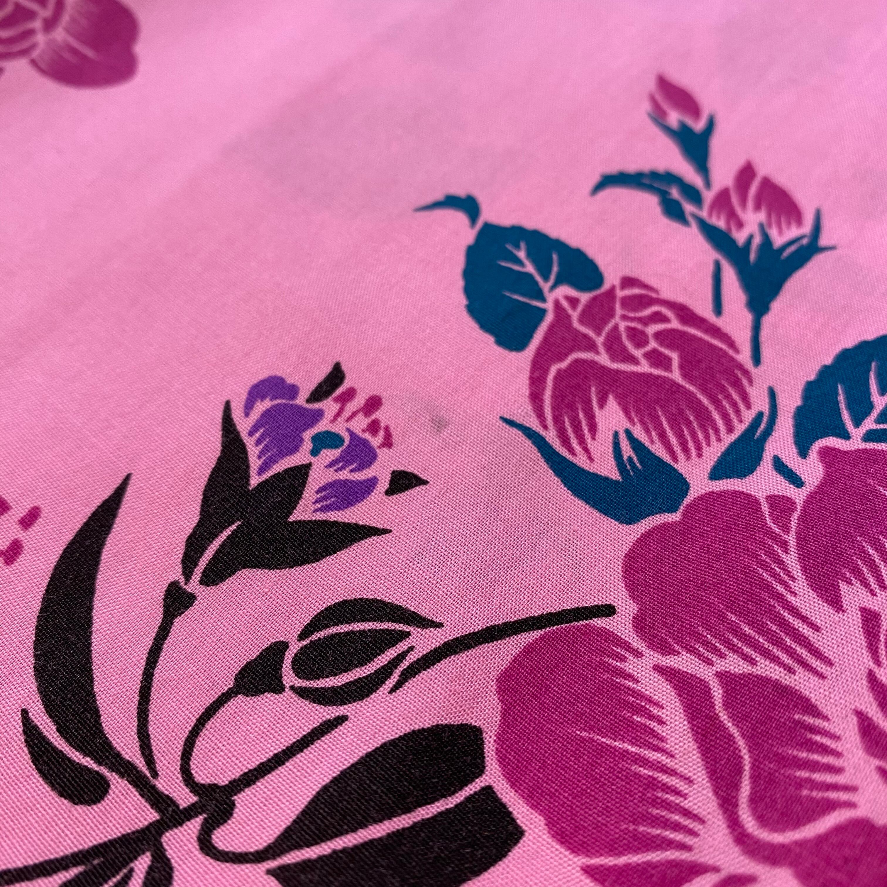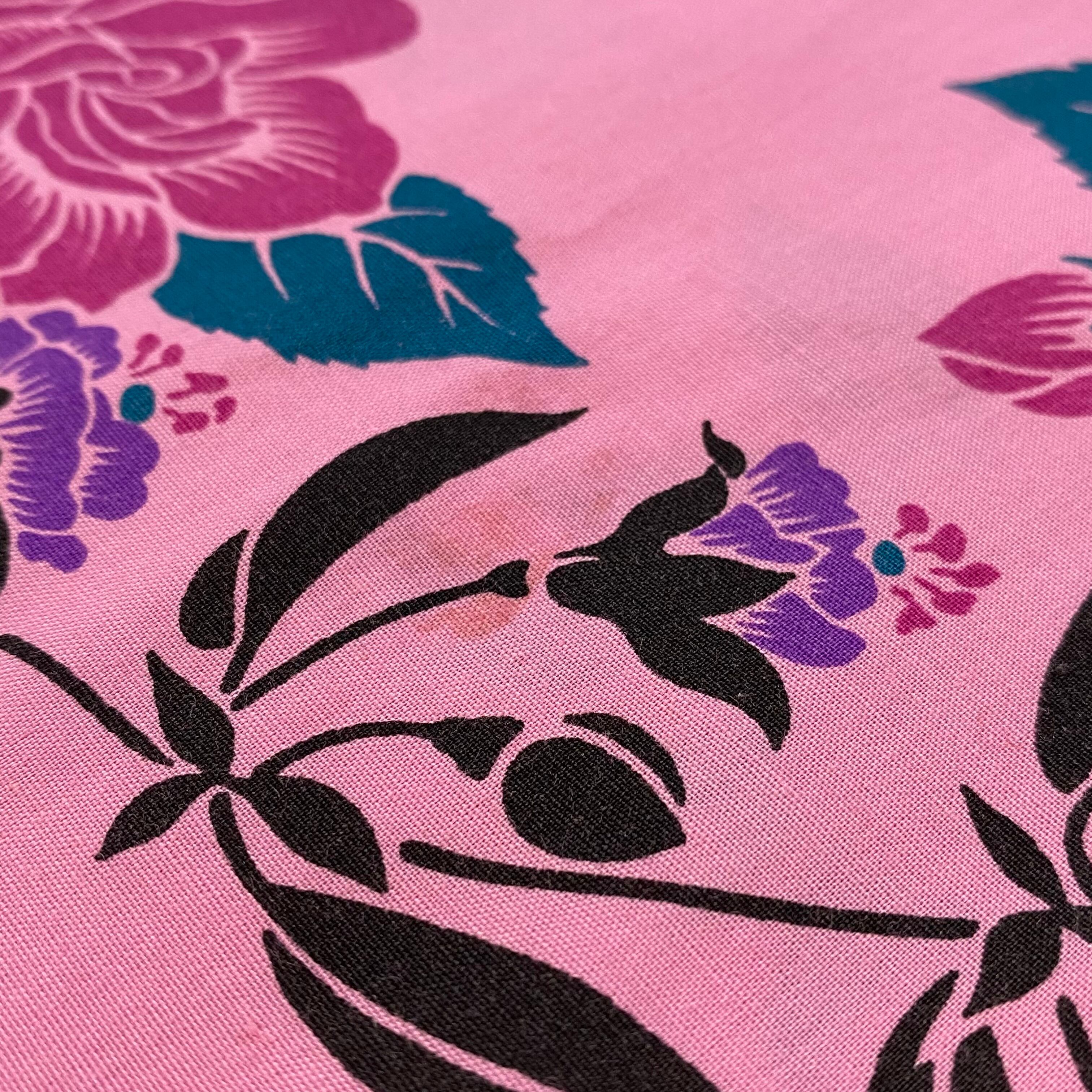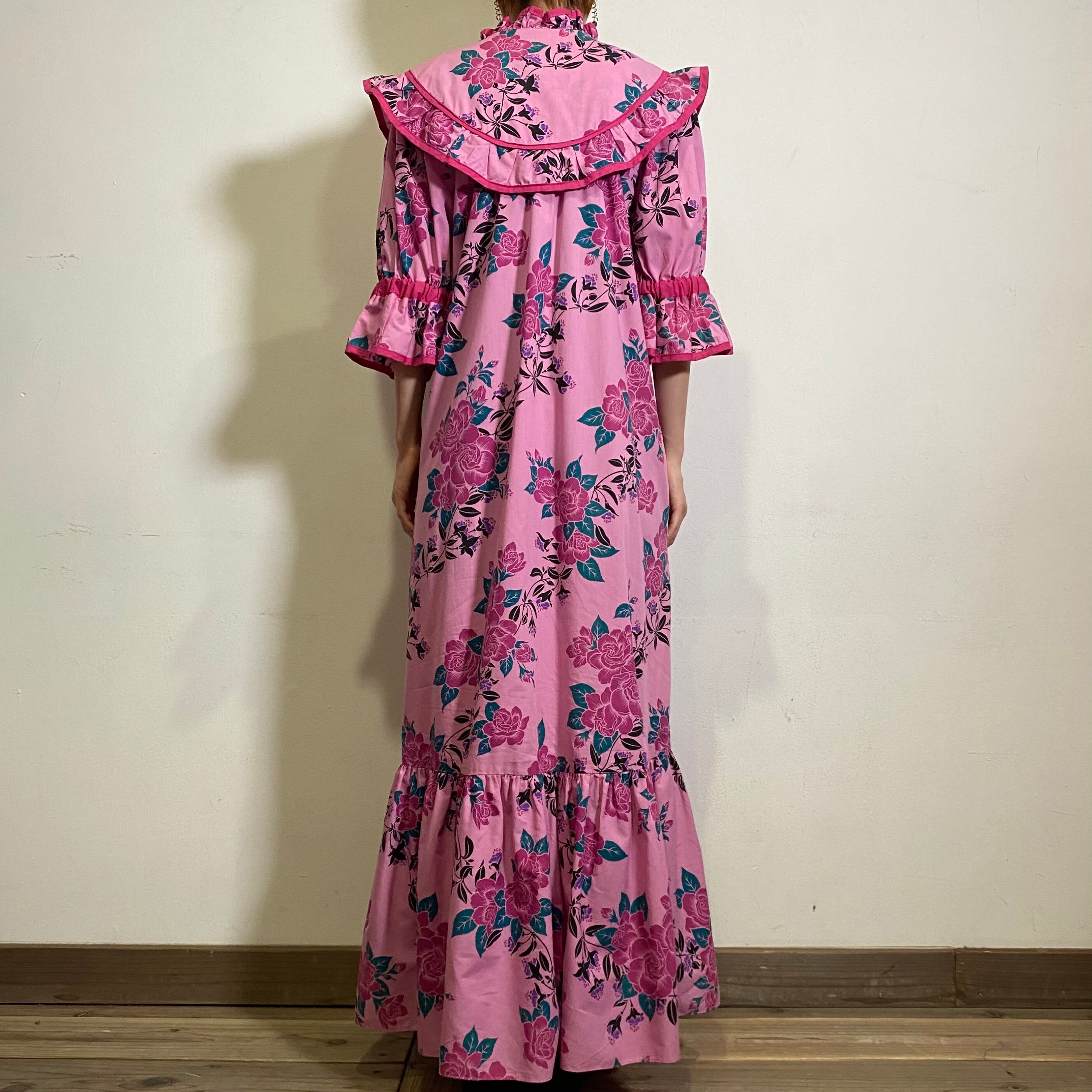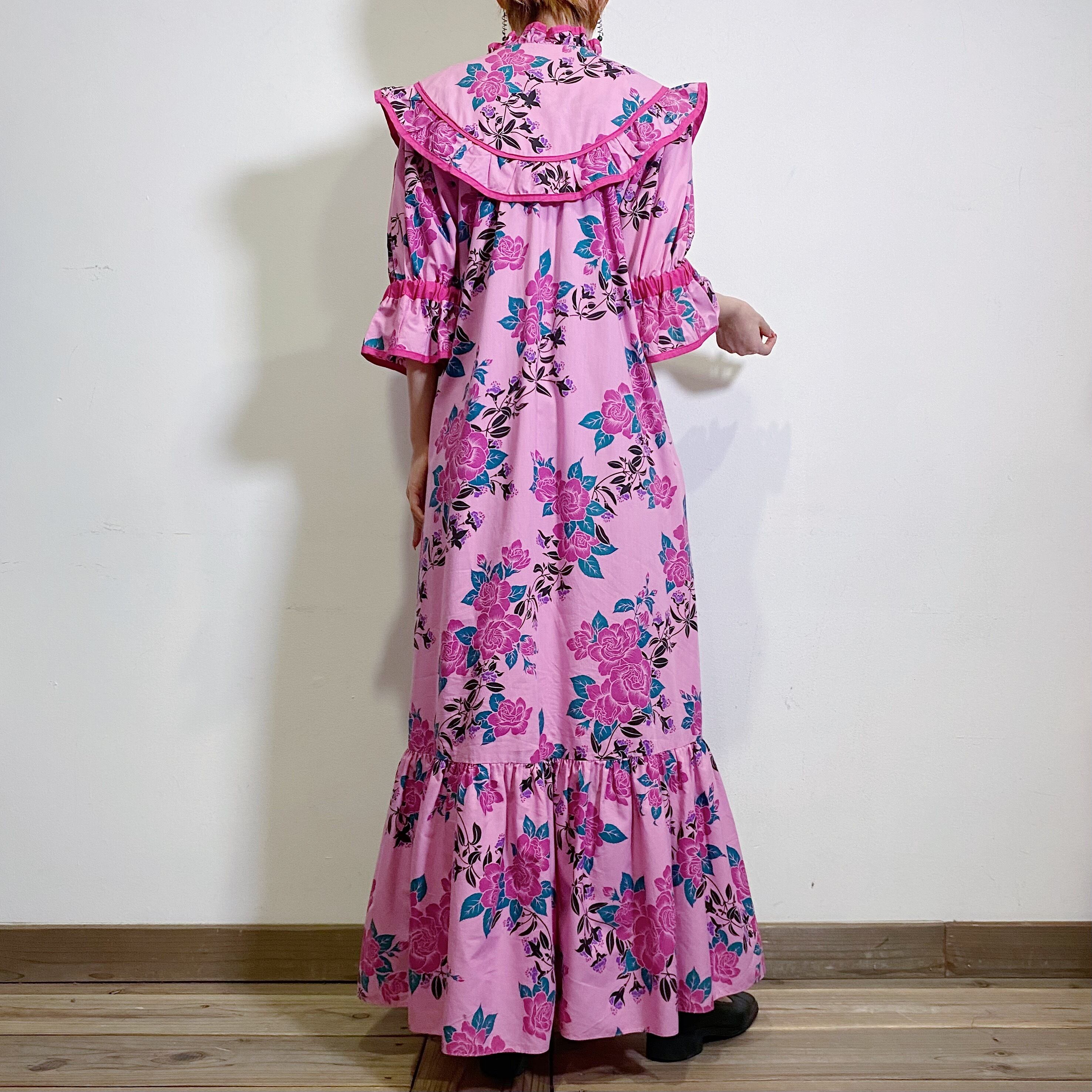 ピンクべースの花柄が可愛い、70~80年代のワンピースです。