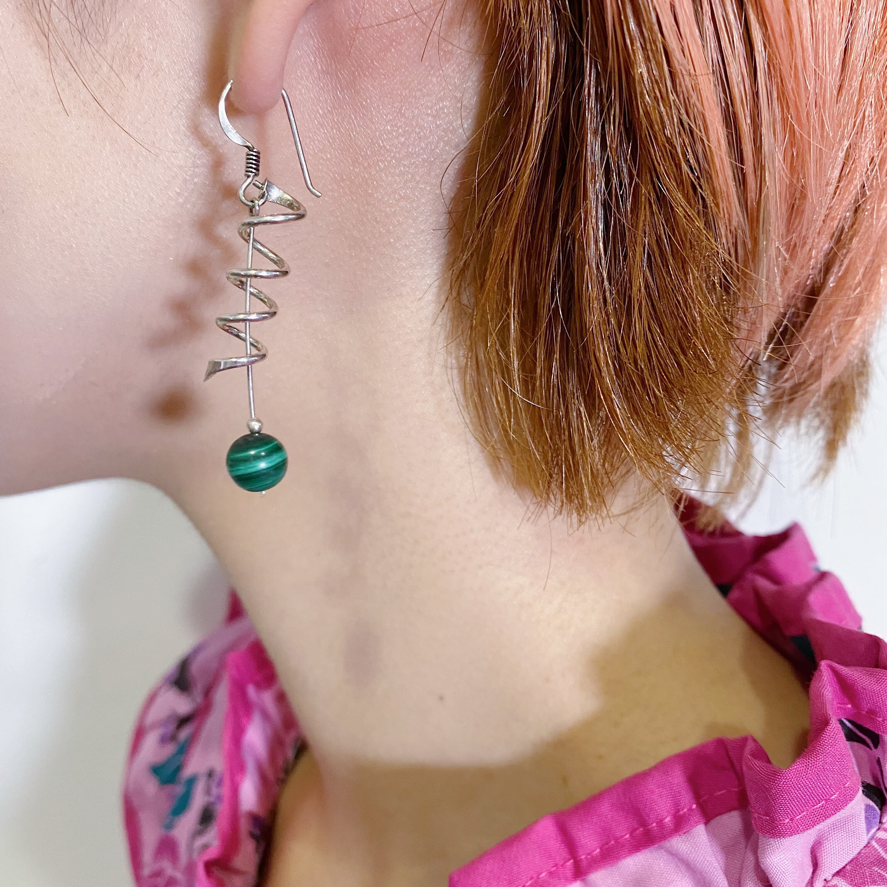 螺旋状の925シルバーにグリーンのビーズが可愛いピアスです。