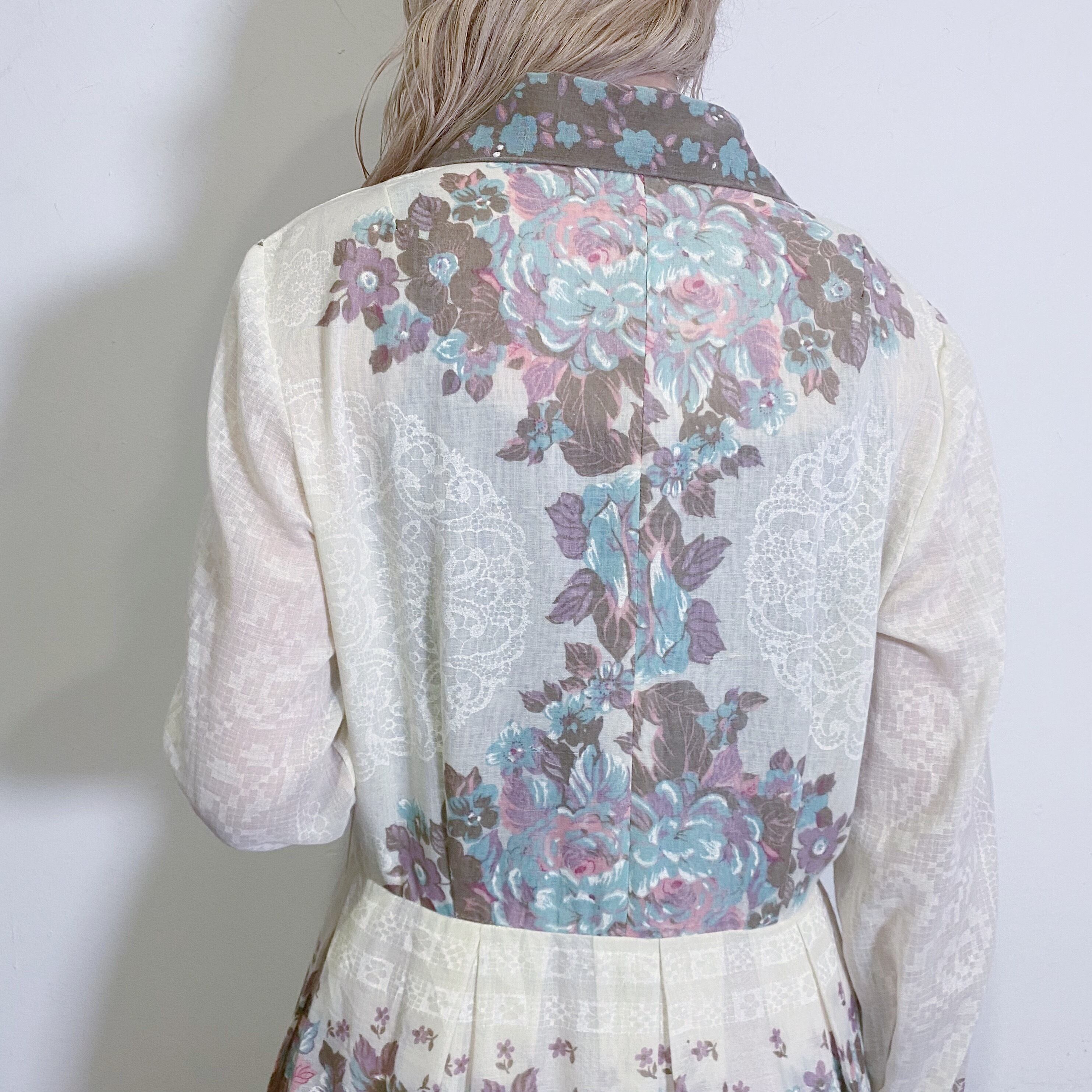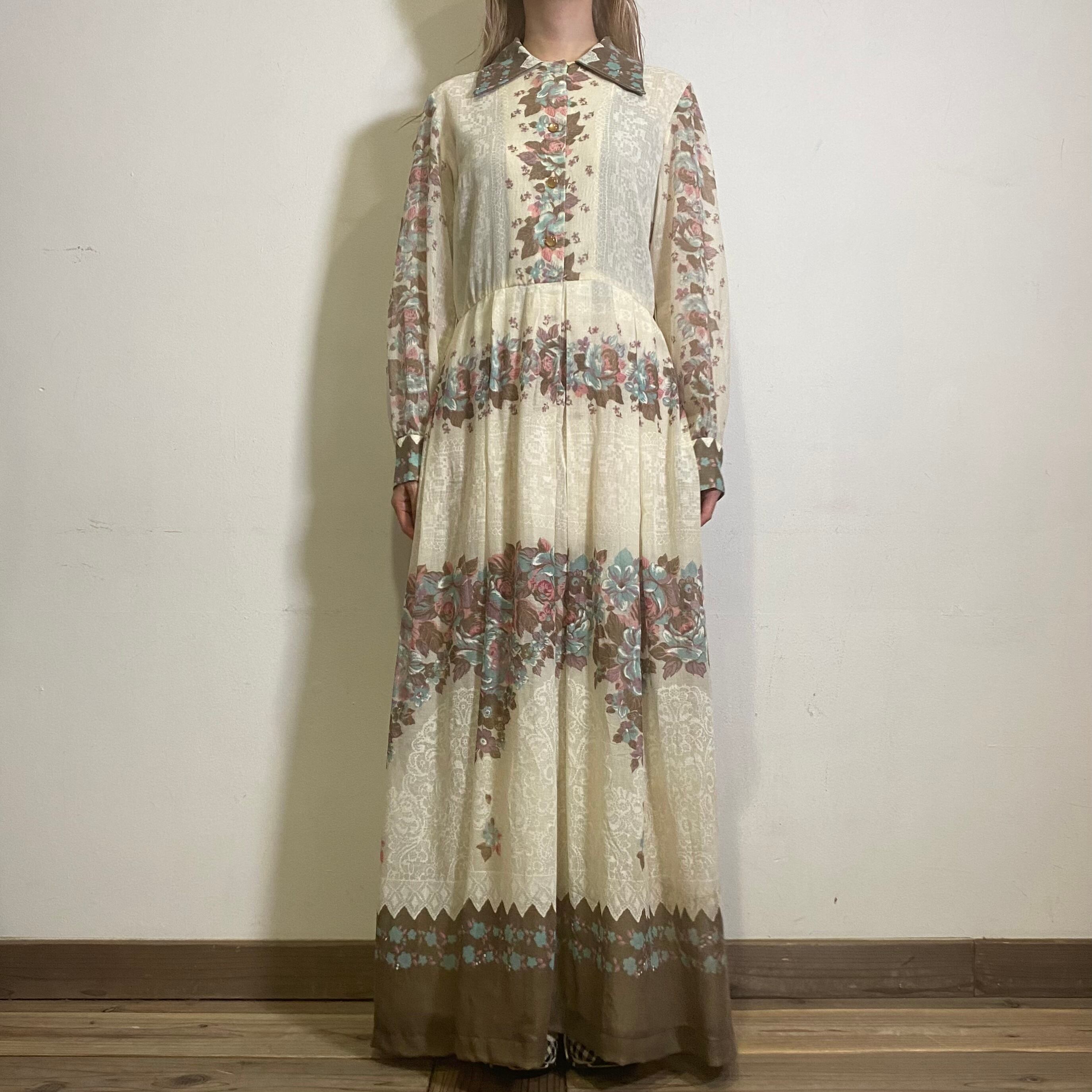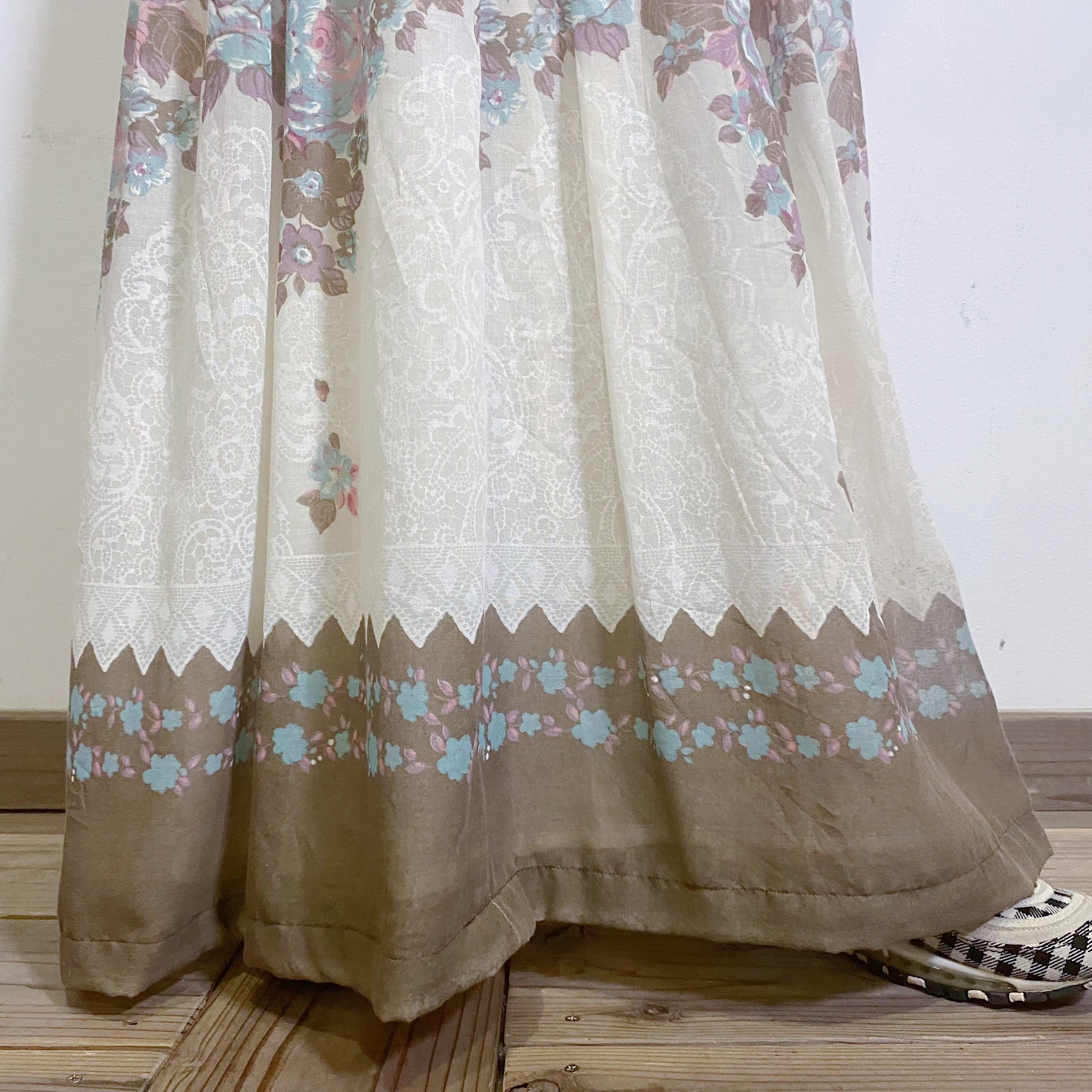白×茶の組み合わせが可愛い、70年代の花柄ワンピースです。