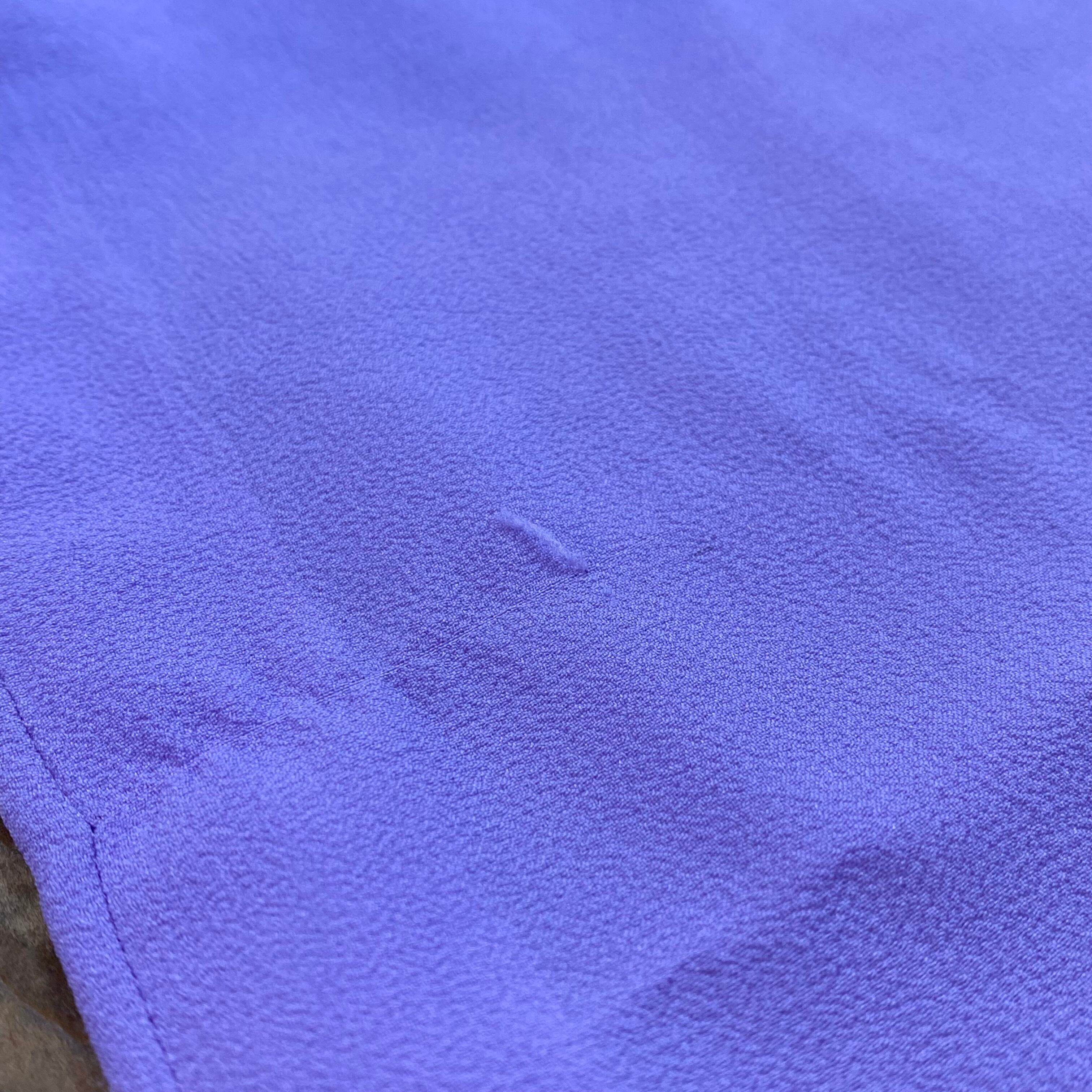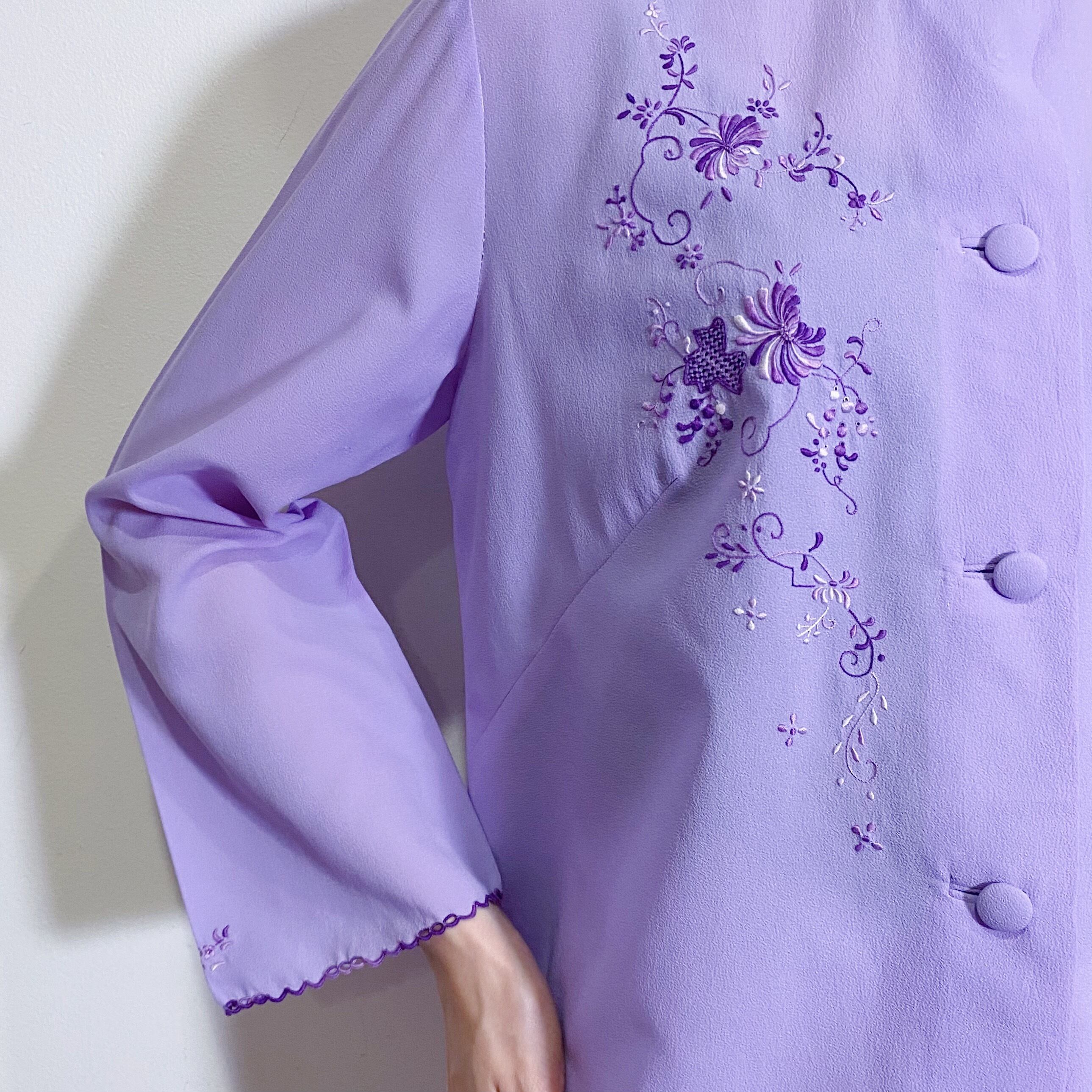 淡いパープルカラーに同系色の糸で施されたお花の刺繍が可愛い、長袖シャツです。