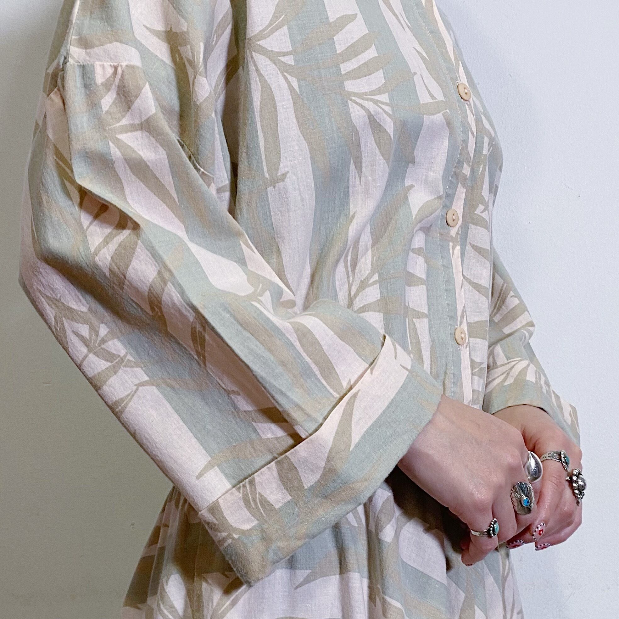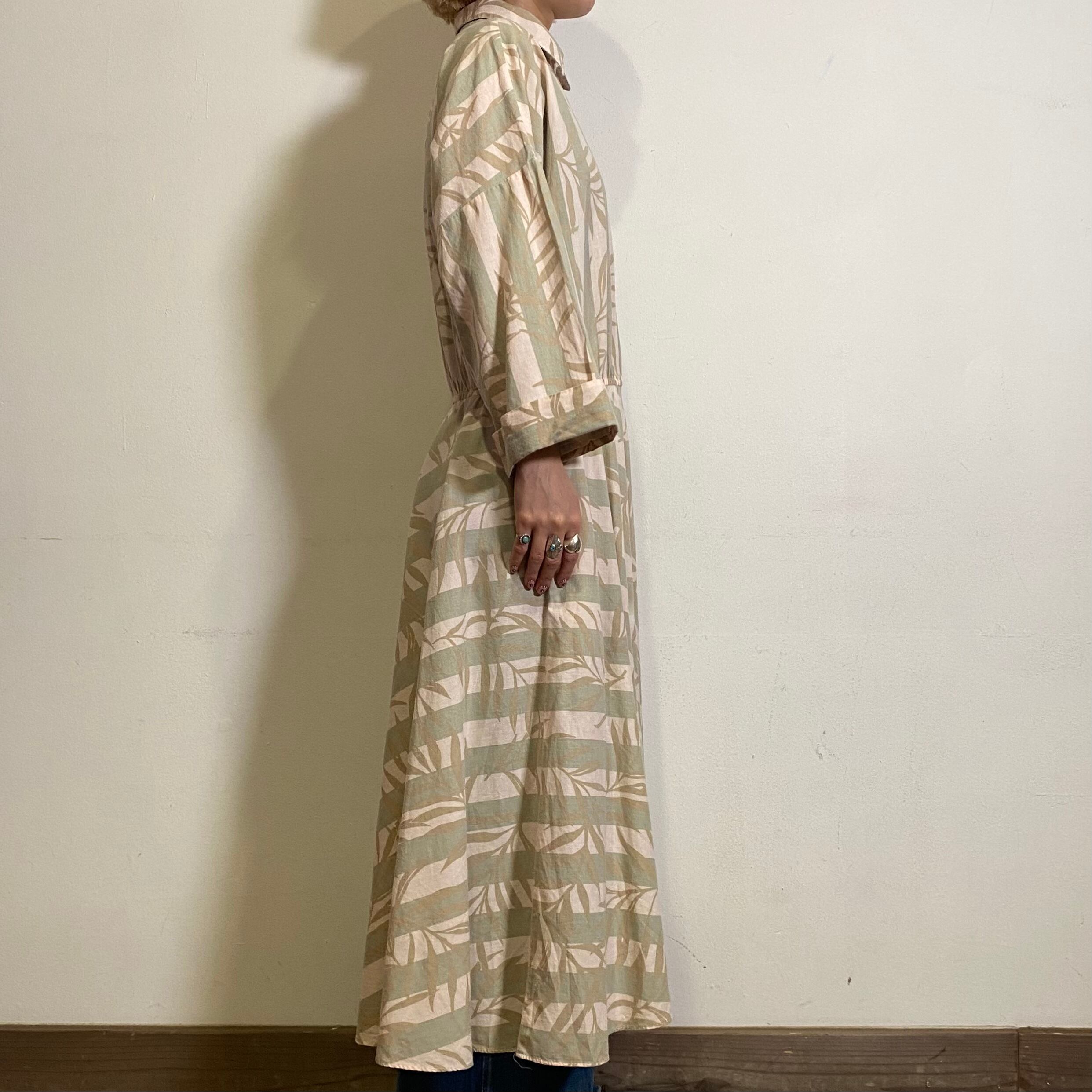 ストライプと葉っぱモチーフ柄の組み合わせが可愛い、80年代のシャツワンピースです。