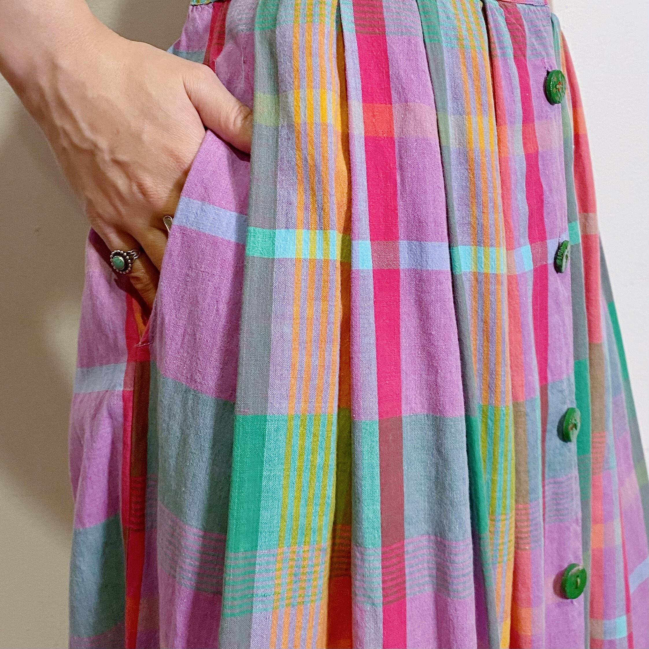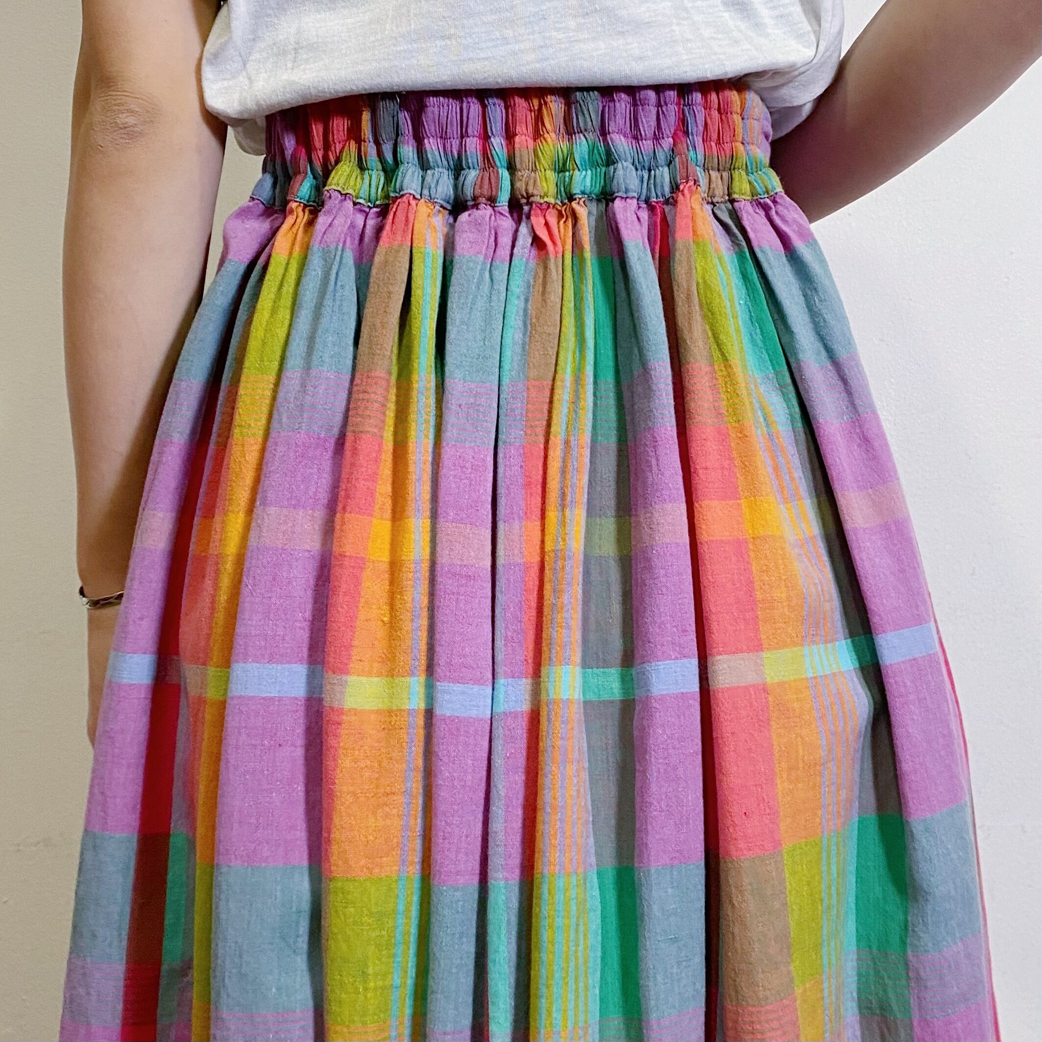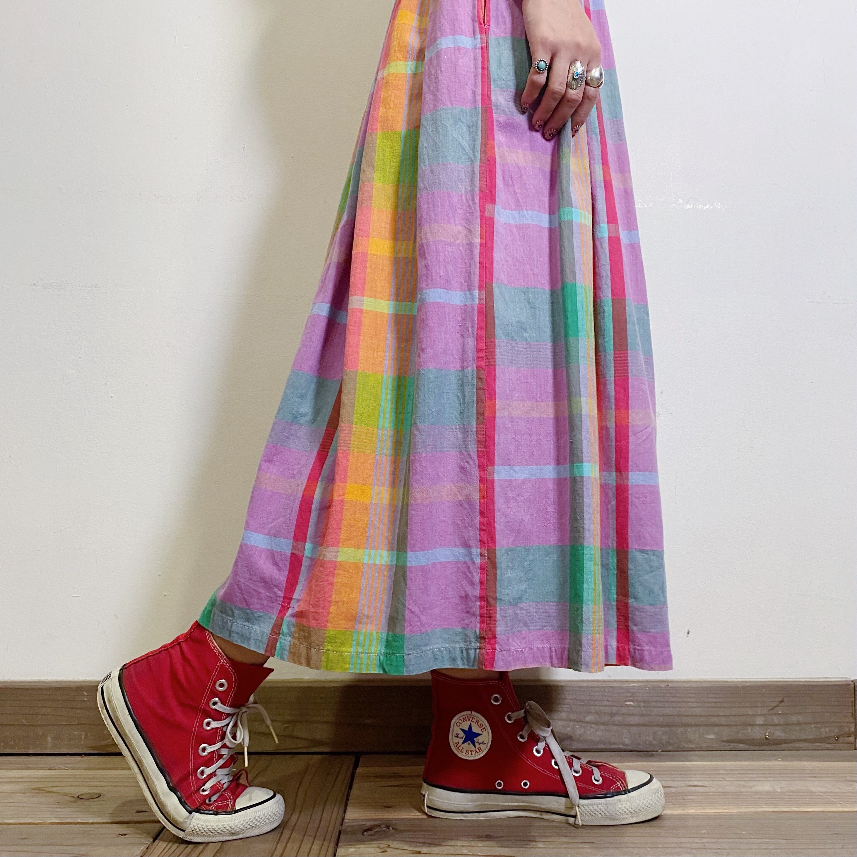 カラフルでハッピーなカラーリングが可愛い、80年代のチェックスカートです。