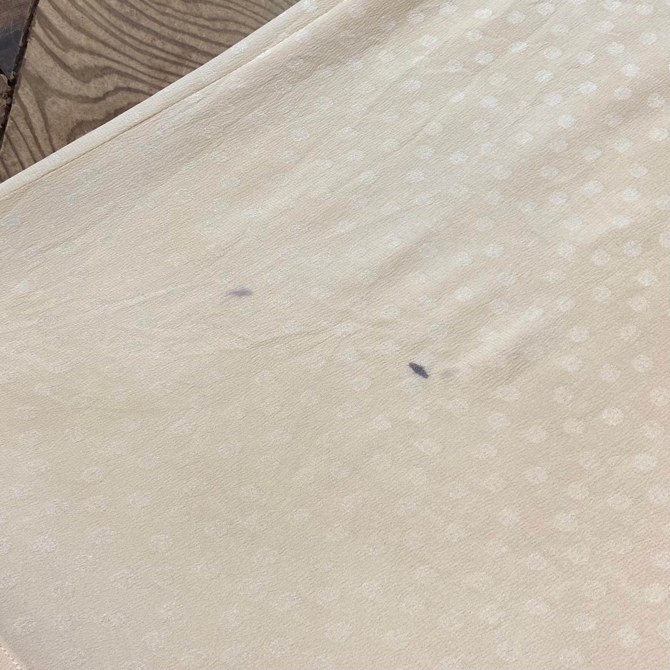 シミや汚れが見受けられますが、裾付近に当たるのであまり目立たないかと思われます。