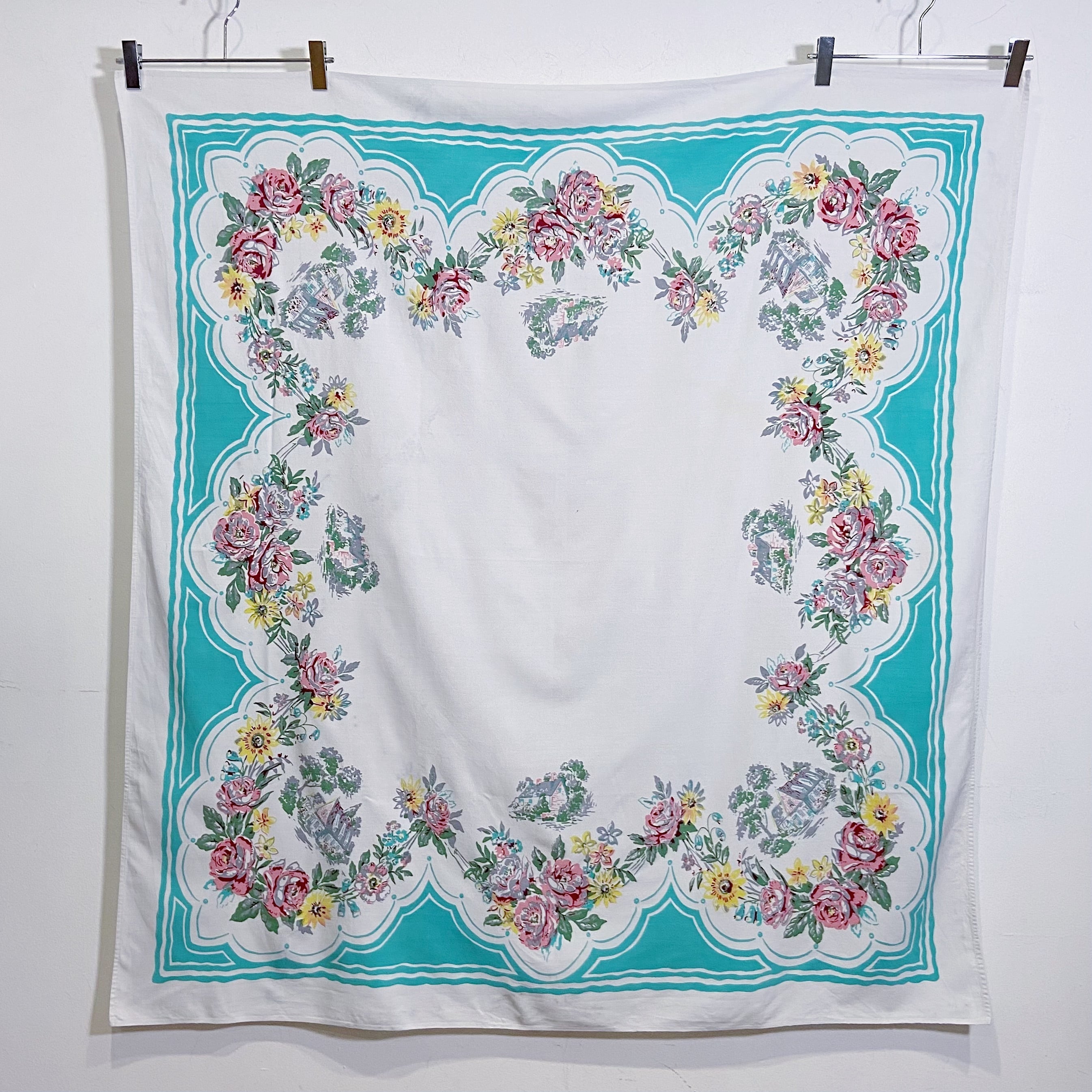 水色と白の組み合わせが可愛い、50年代の大判ファブリックです。