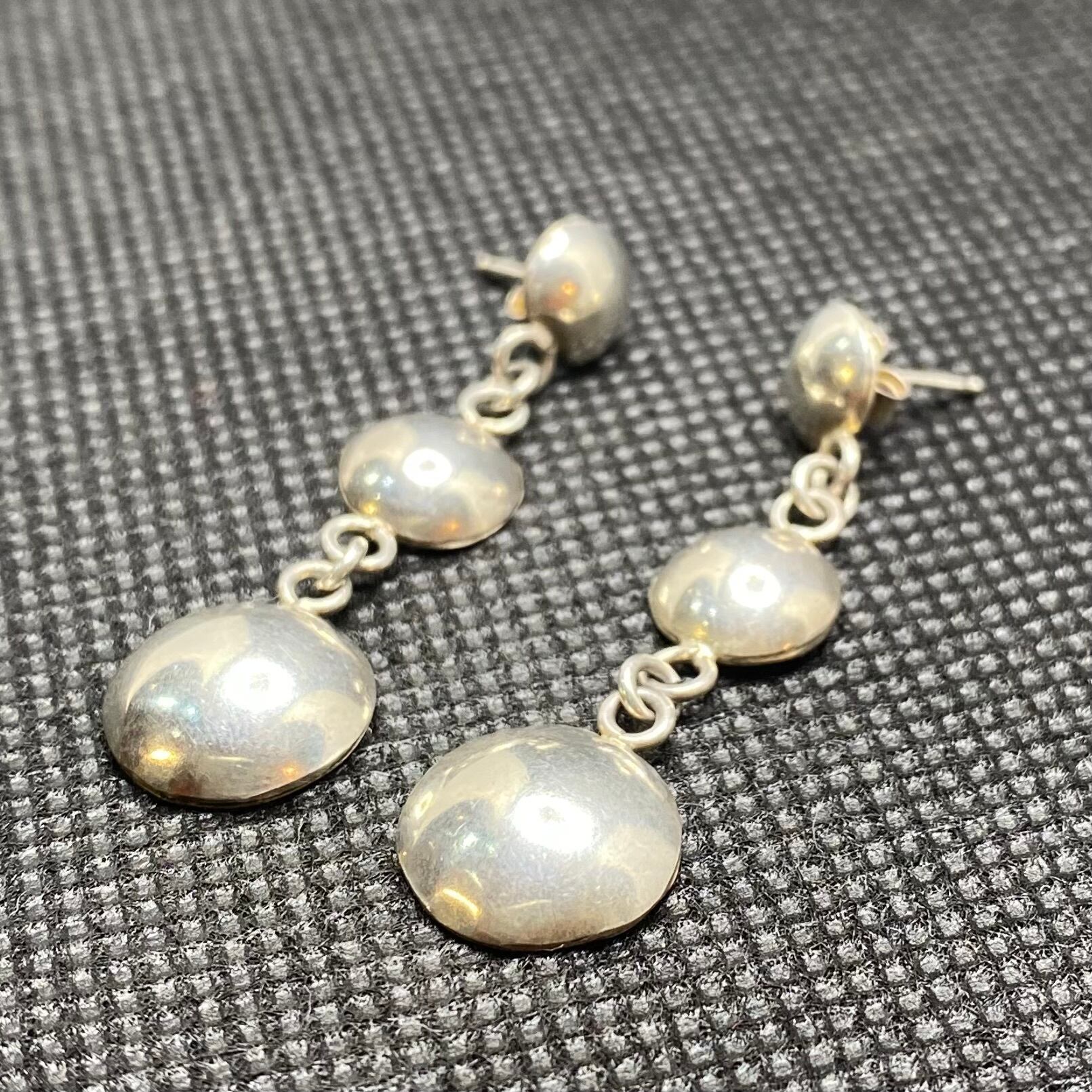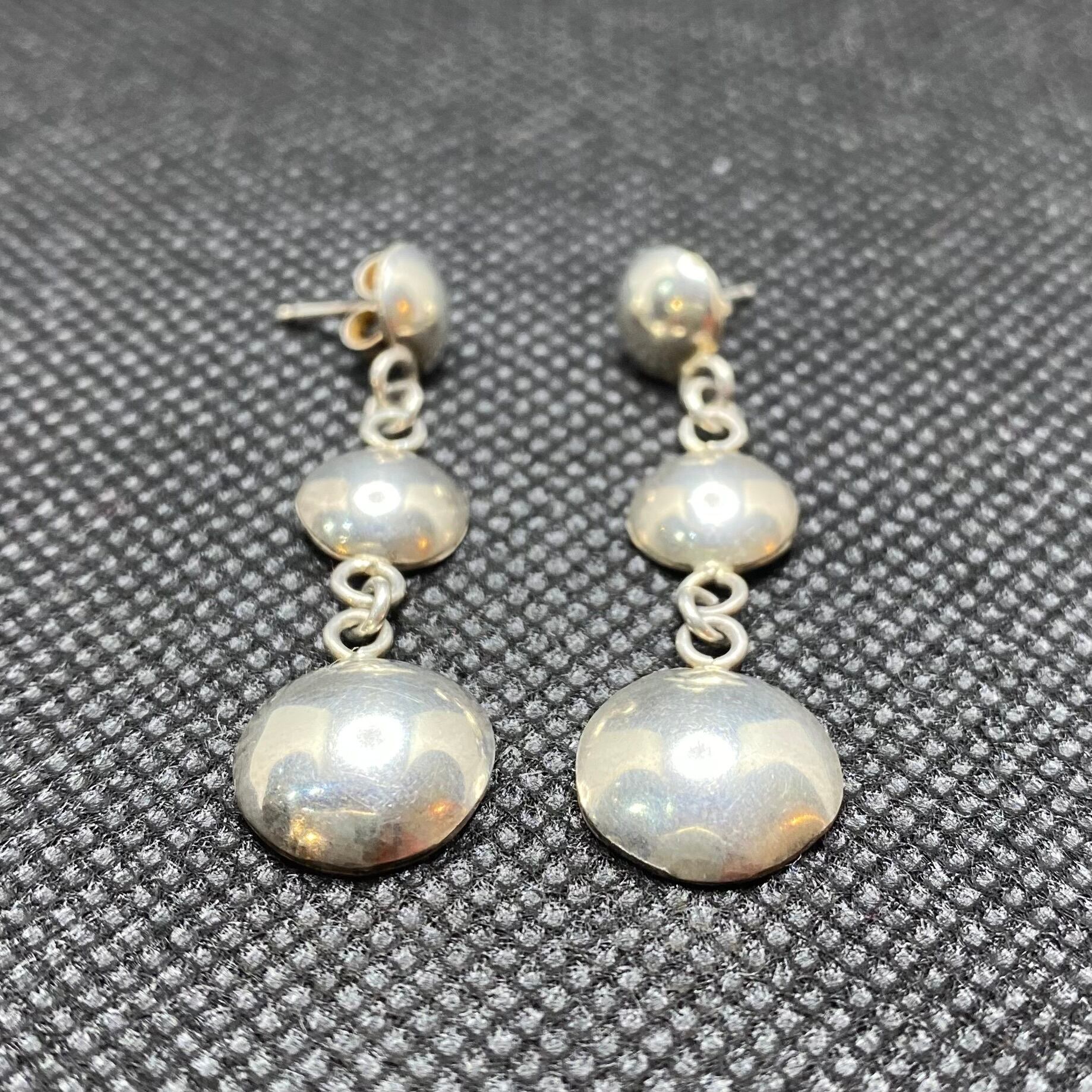 大中小と大きさの異なるボールが連なった、925シルバーのピアスです。