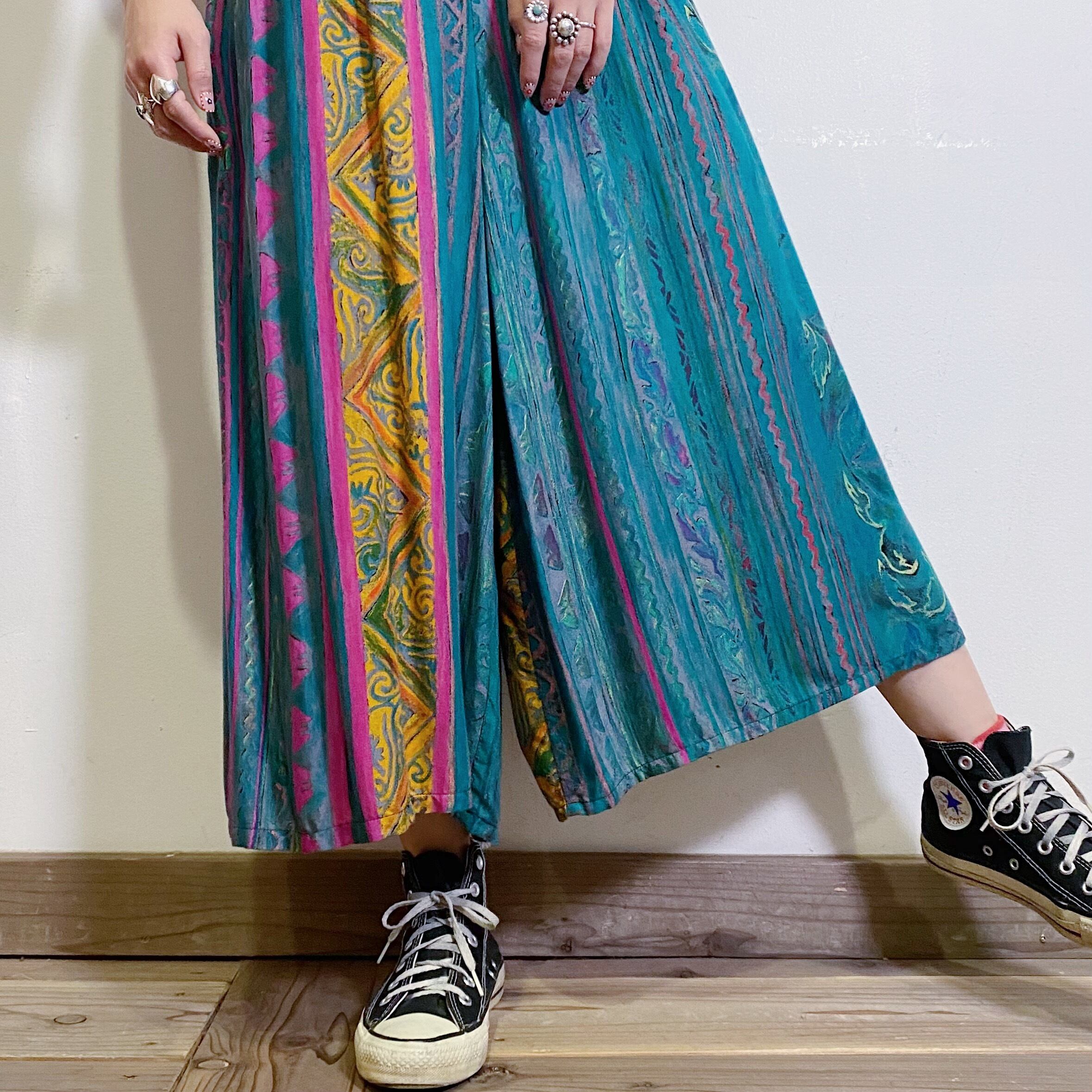 グリーンやイエロー、ピンクの組み合わせが可愛い、80年代のパンツです。