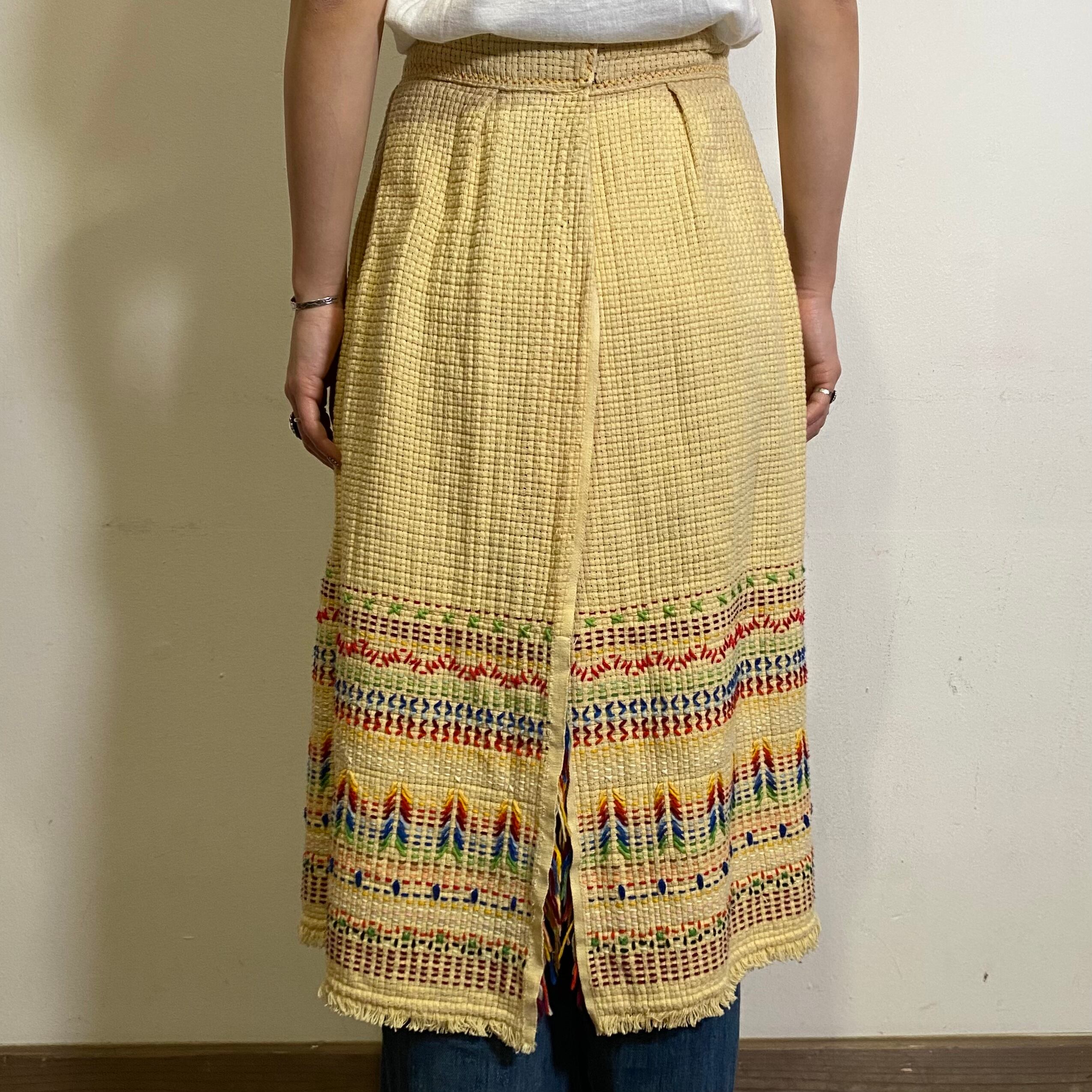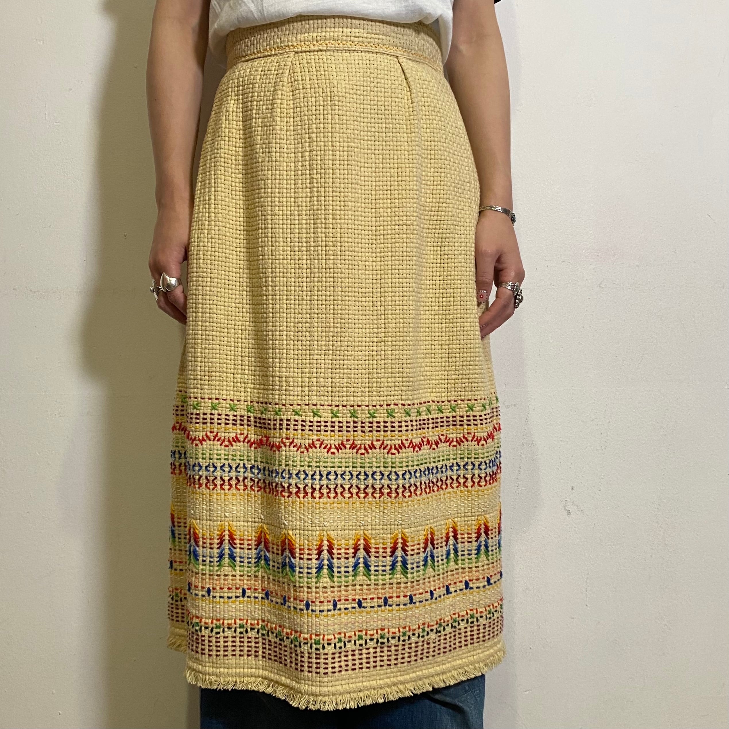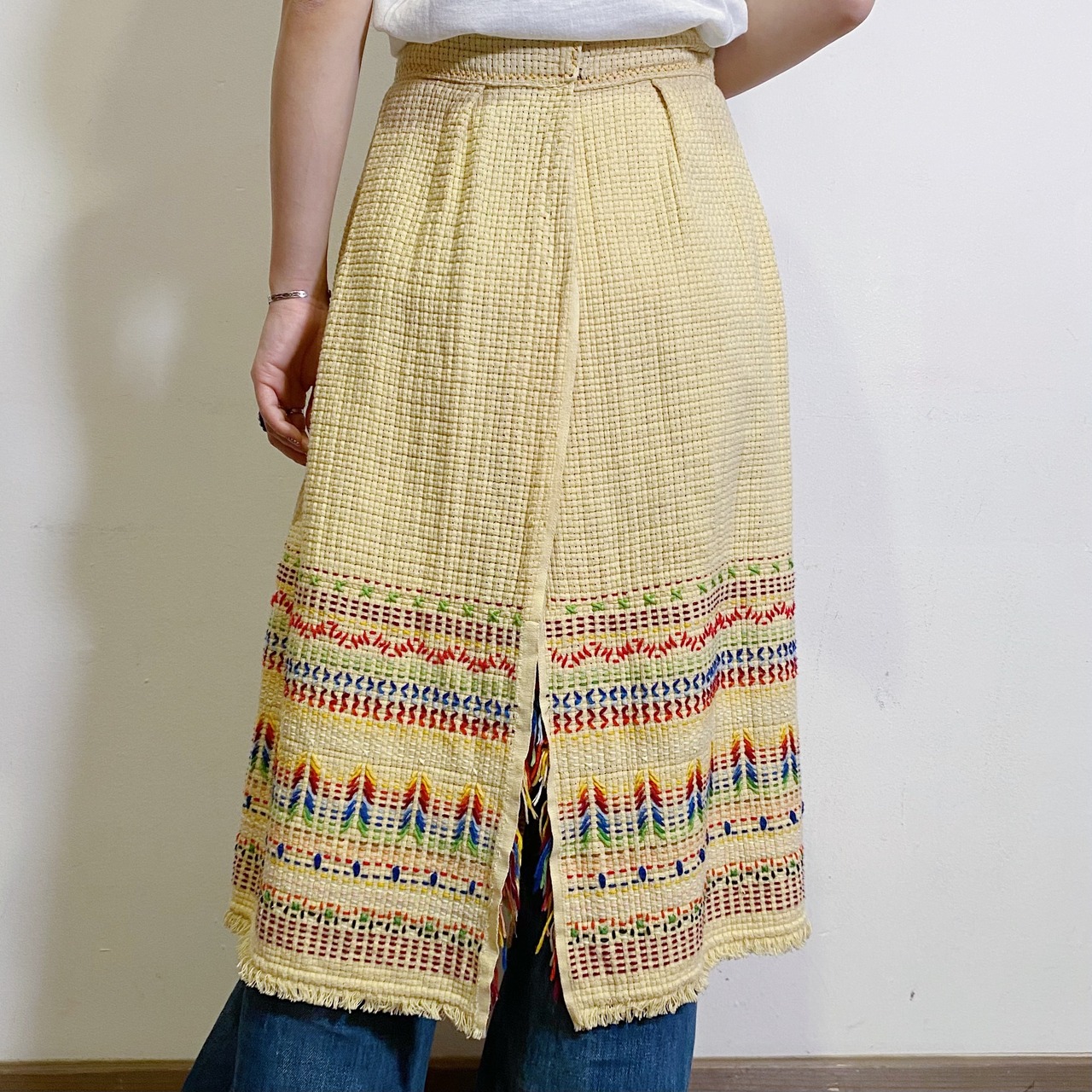 裾のカラフルなレインボーカラーの刺繍デザインが可愛い、70年代のスカートです。