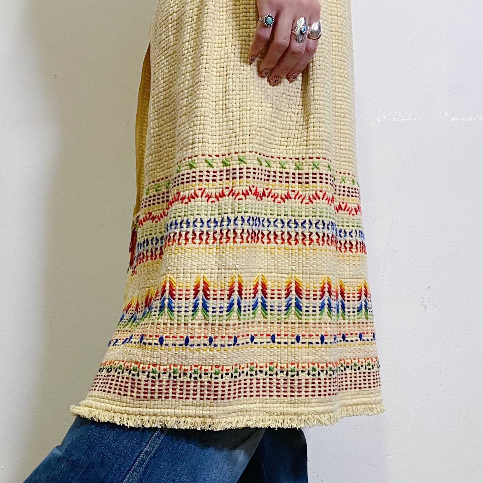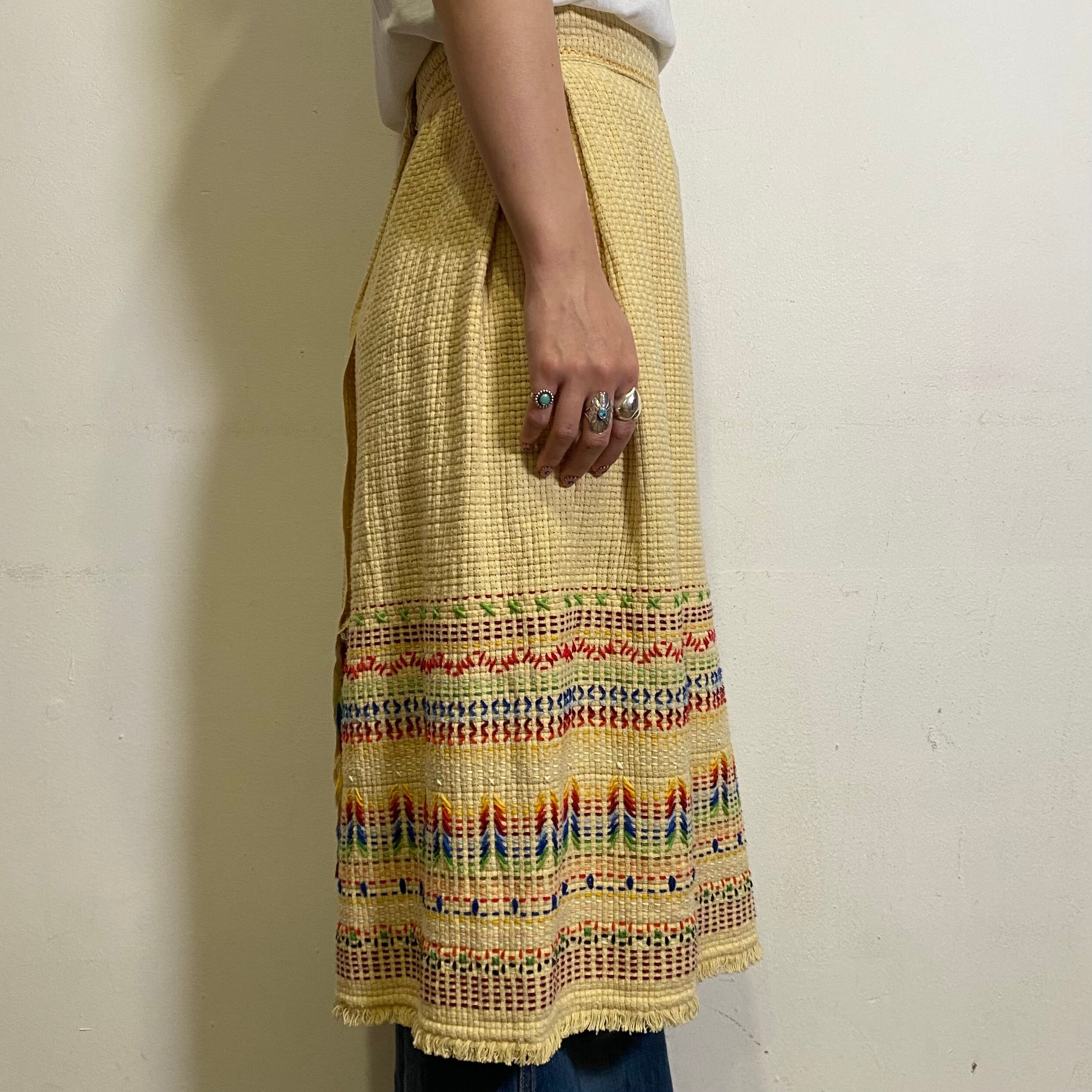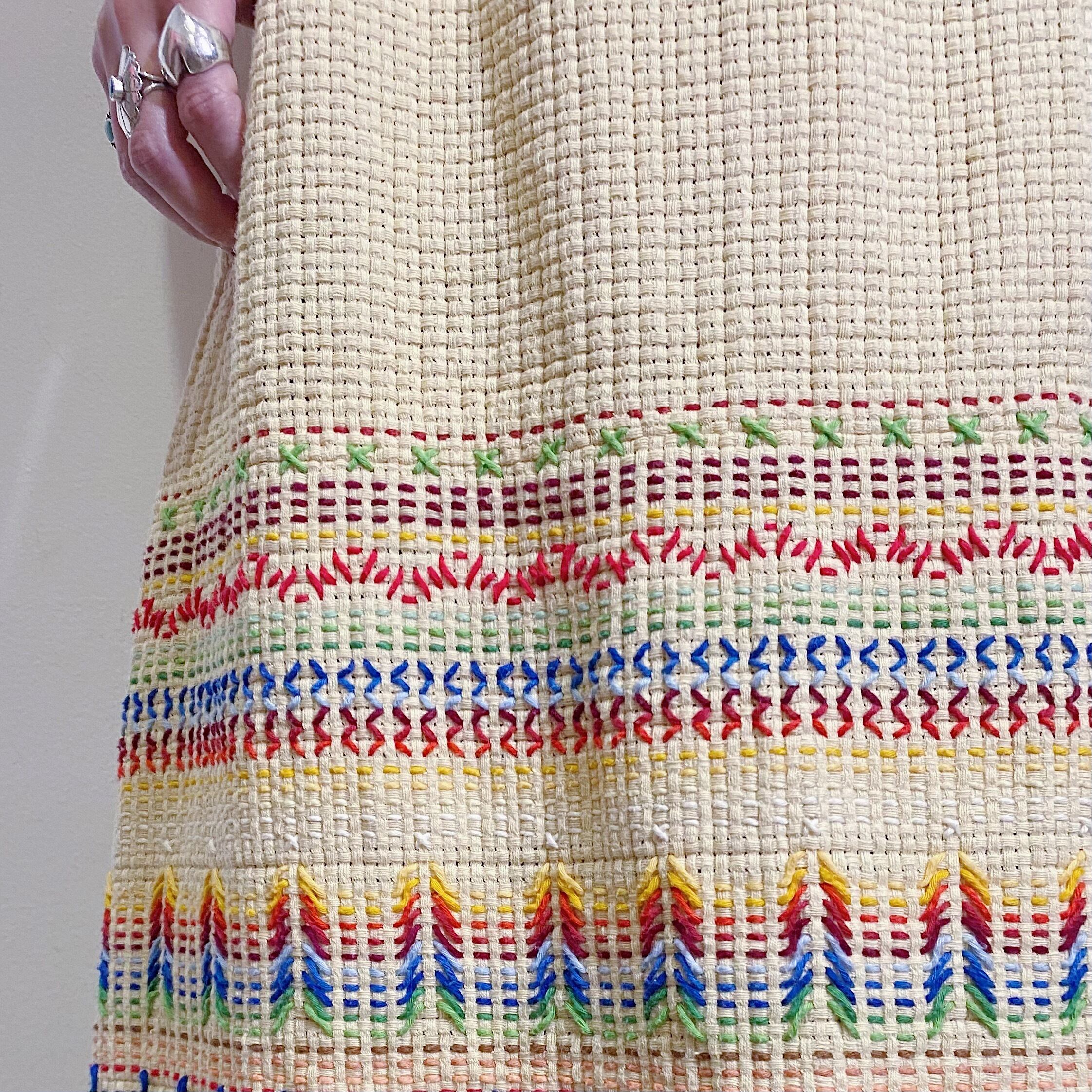 裾のカラフルなレインボーカラーの刺繍デザインが可愛い、70年代のスカートです。