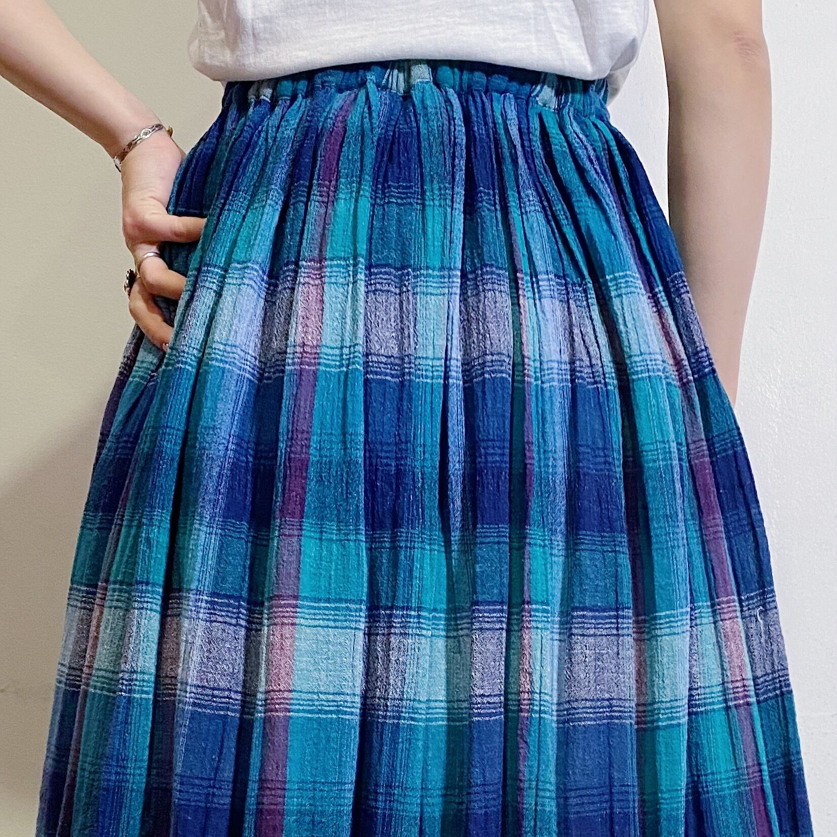 ブルーベースのチェック柄が可愛い、80年代のスカートです。