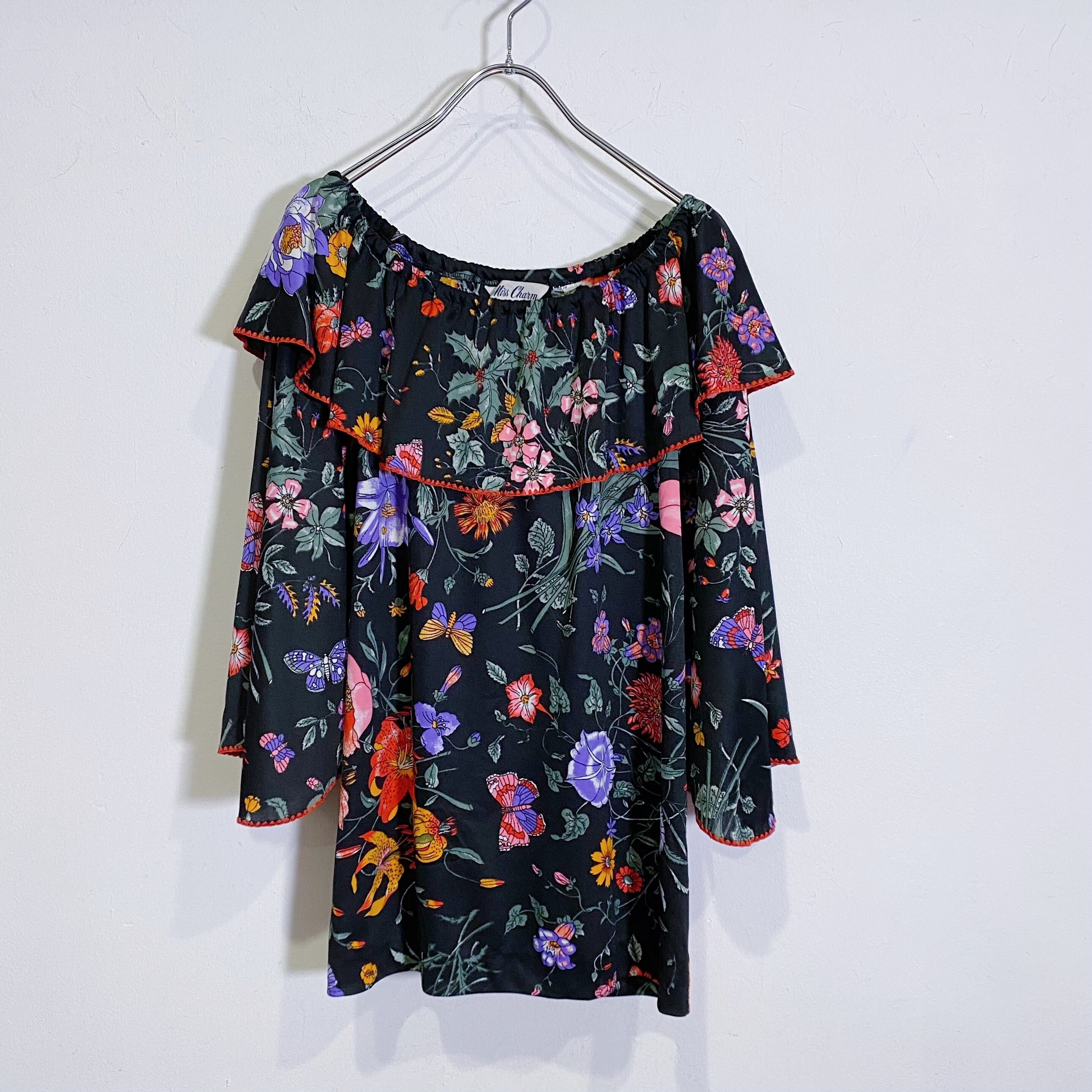 70s black oriental tunic top