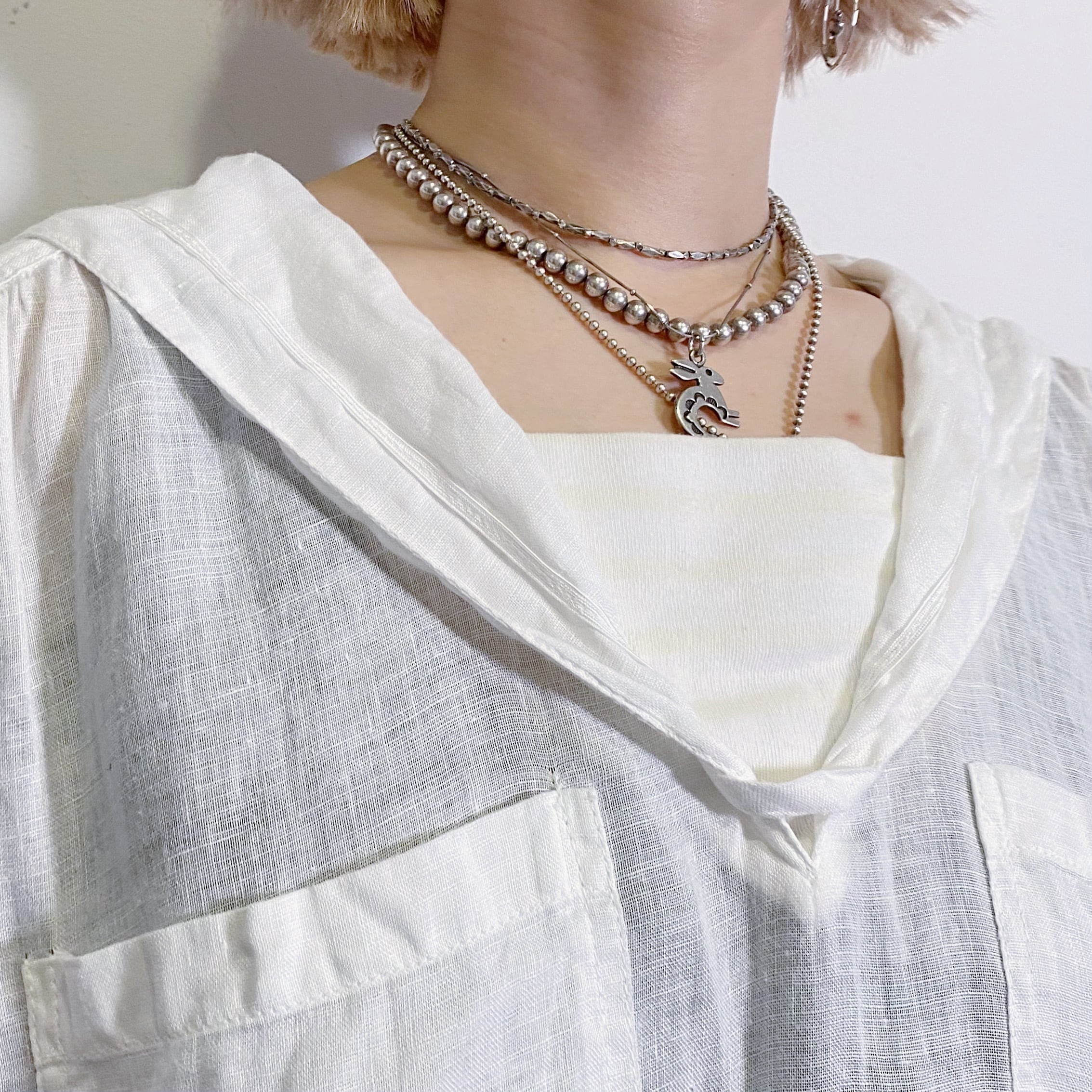 着用写真のようなノースリーブワンピースやオーバーオール、スウェットなどのインナーとして着こなすのも大変おすすめ。