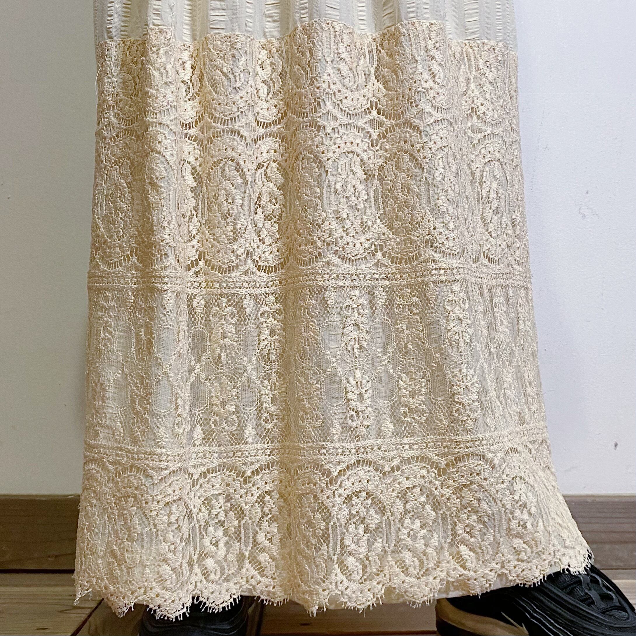 70s white lace long skirt