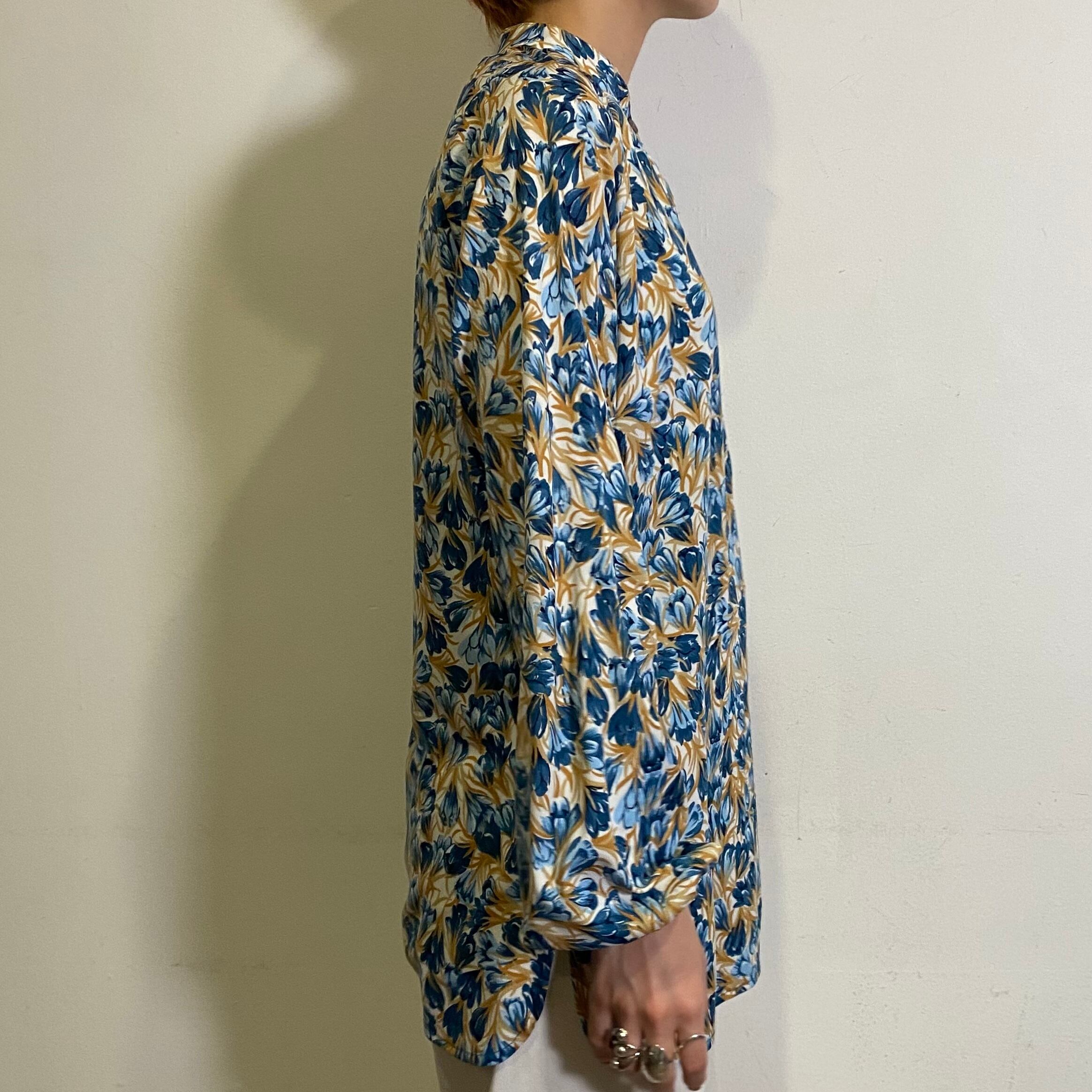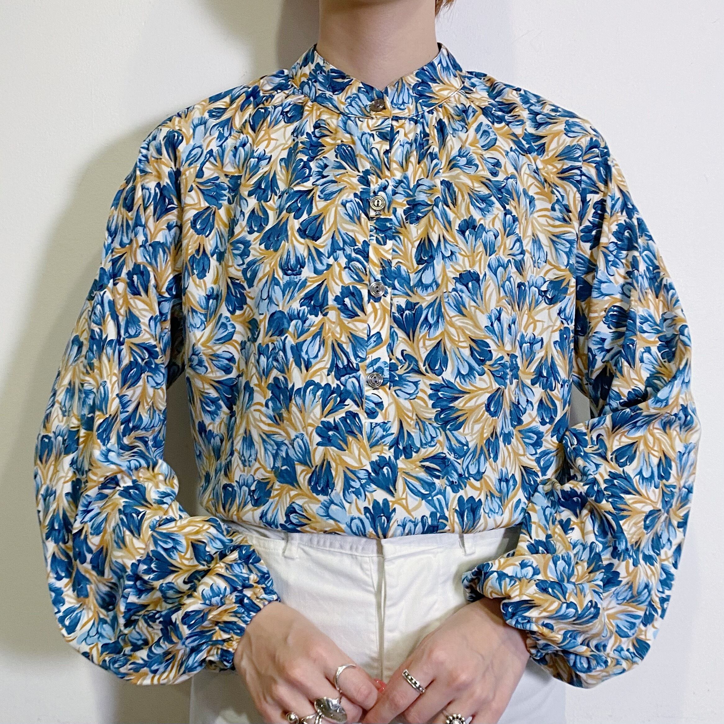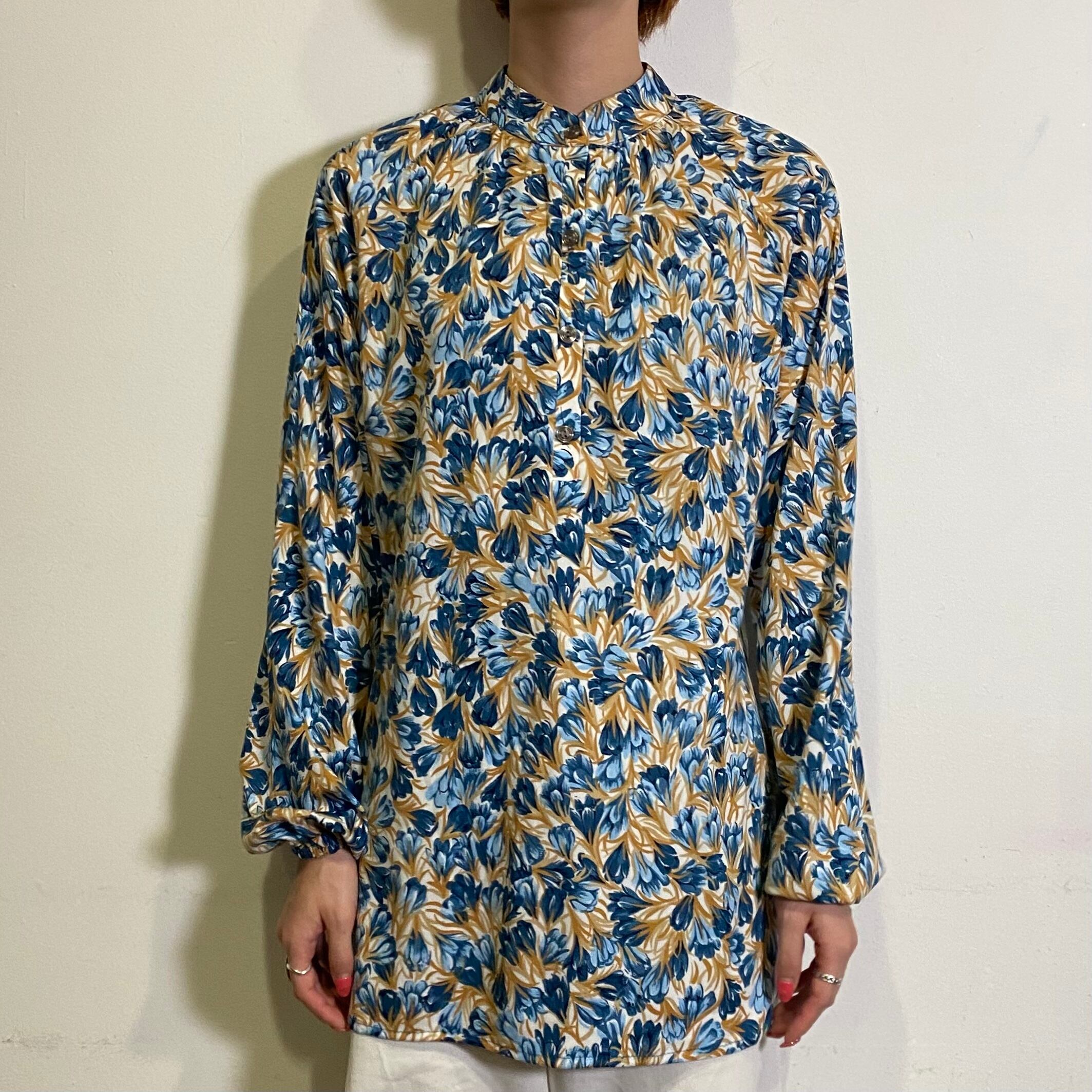 水彩画タッチの総花柄が素敵な、70年代のトップスです。