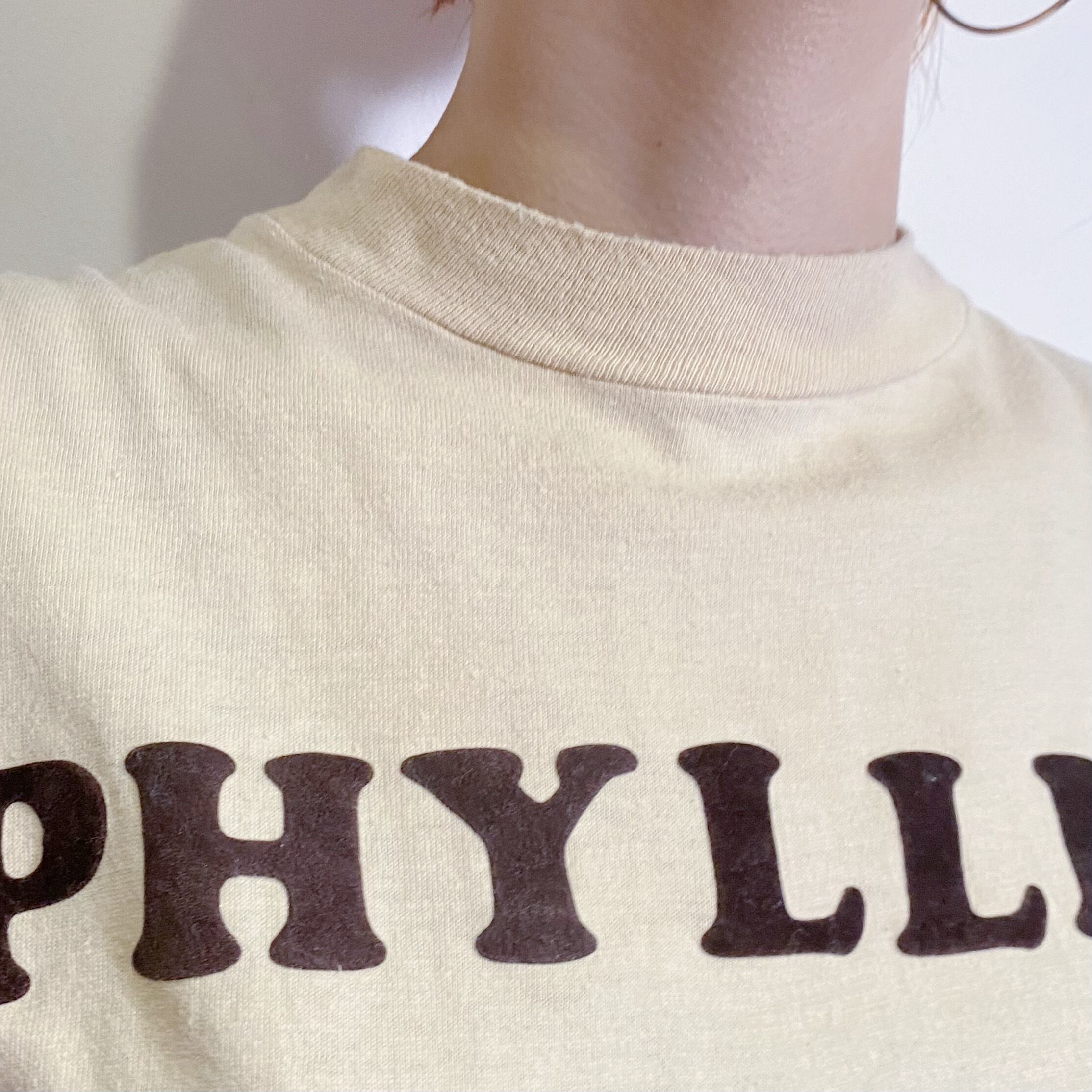 ベージュベースにブラウンのフロッキープリントが可愛い、70年代のTシャツです。