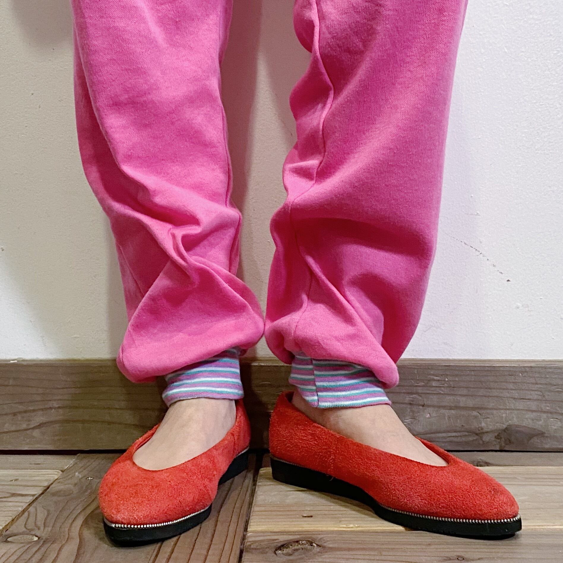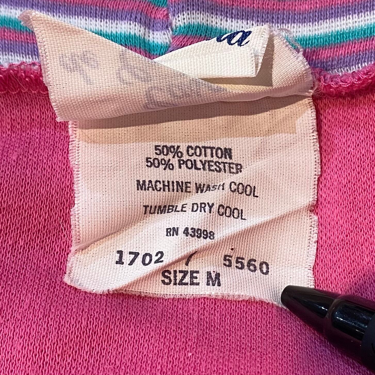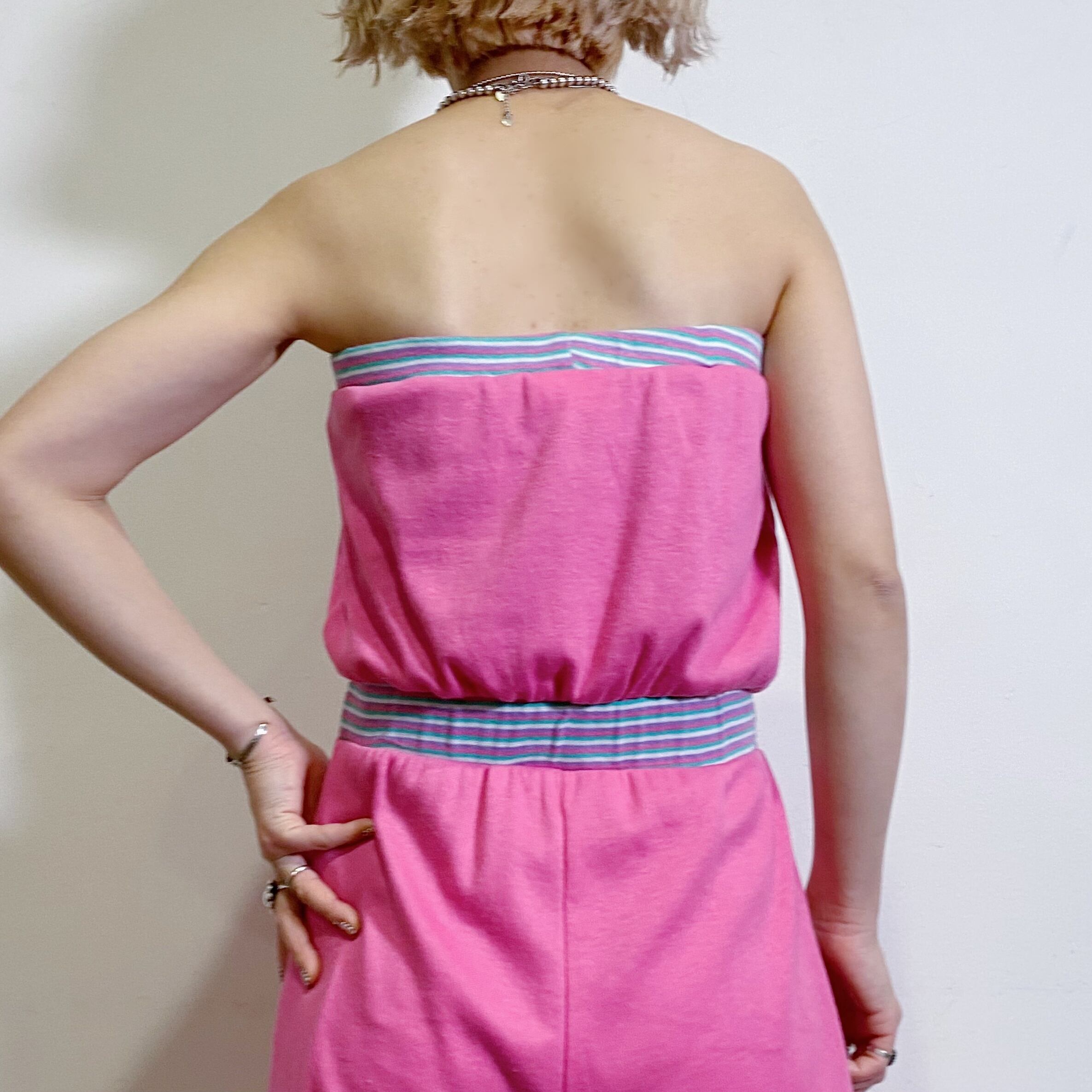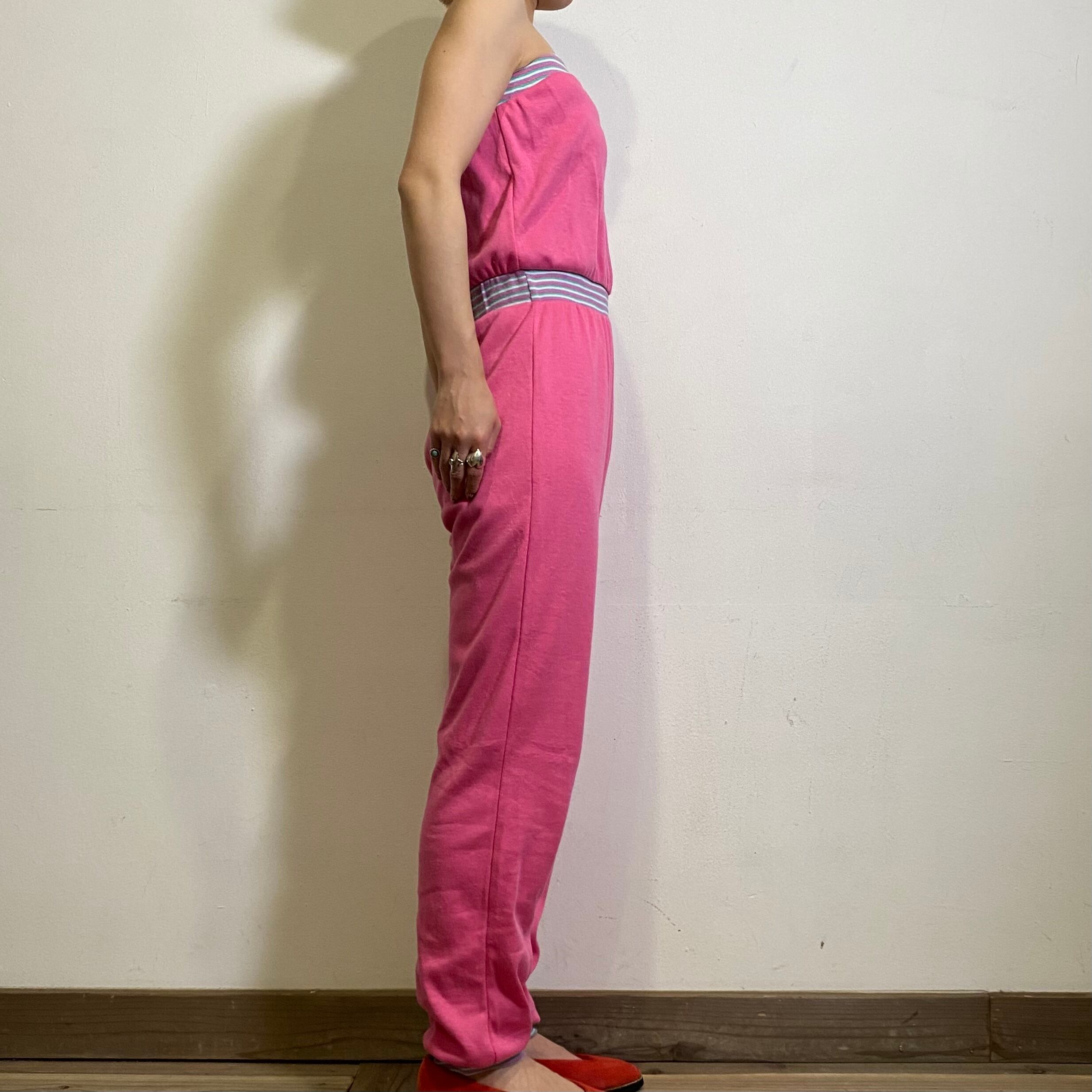 ピンクベースにボーダーの切り替えが可愛い、80年代のジャンプスーツです。