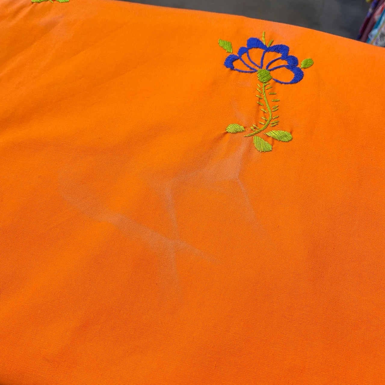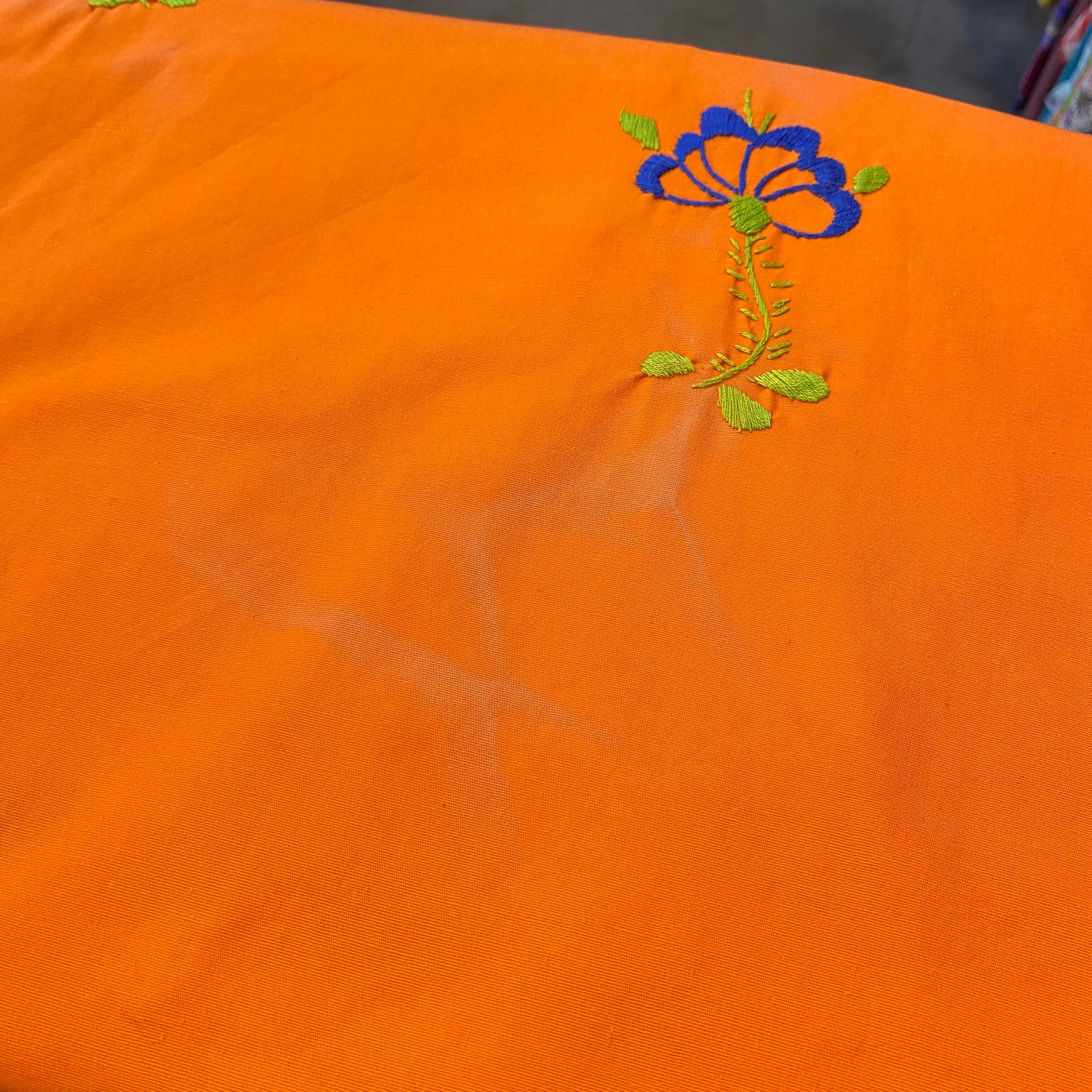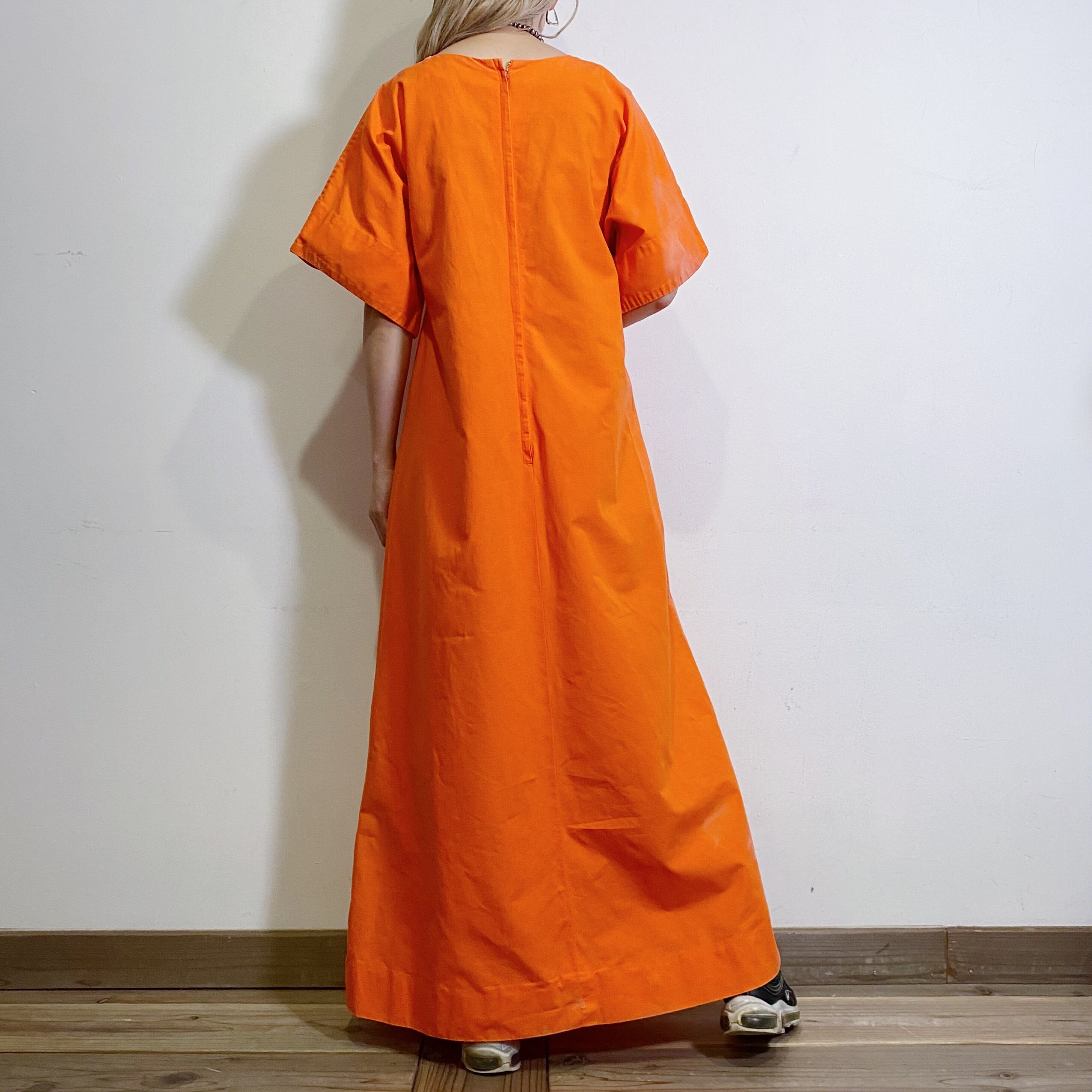 鮮やかなオレンジベースにカラフルなお花の刺繍が可愛い、60年代のワンピースです。