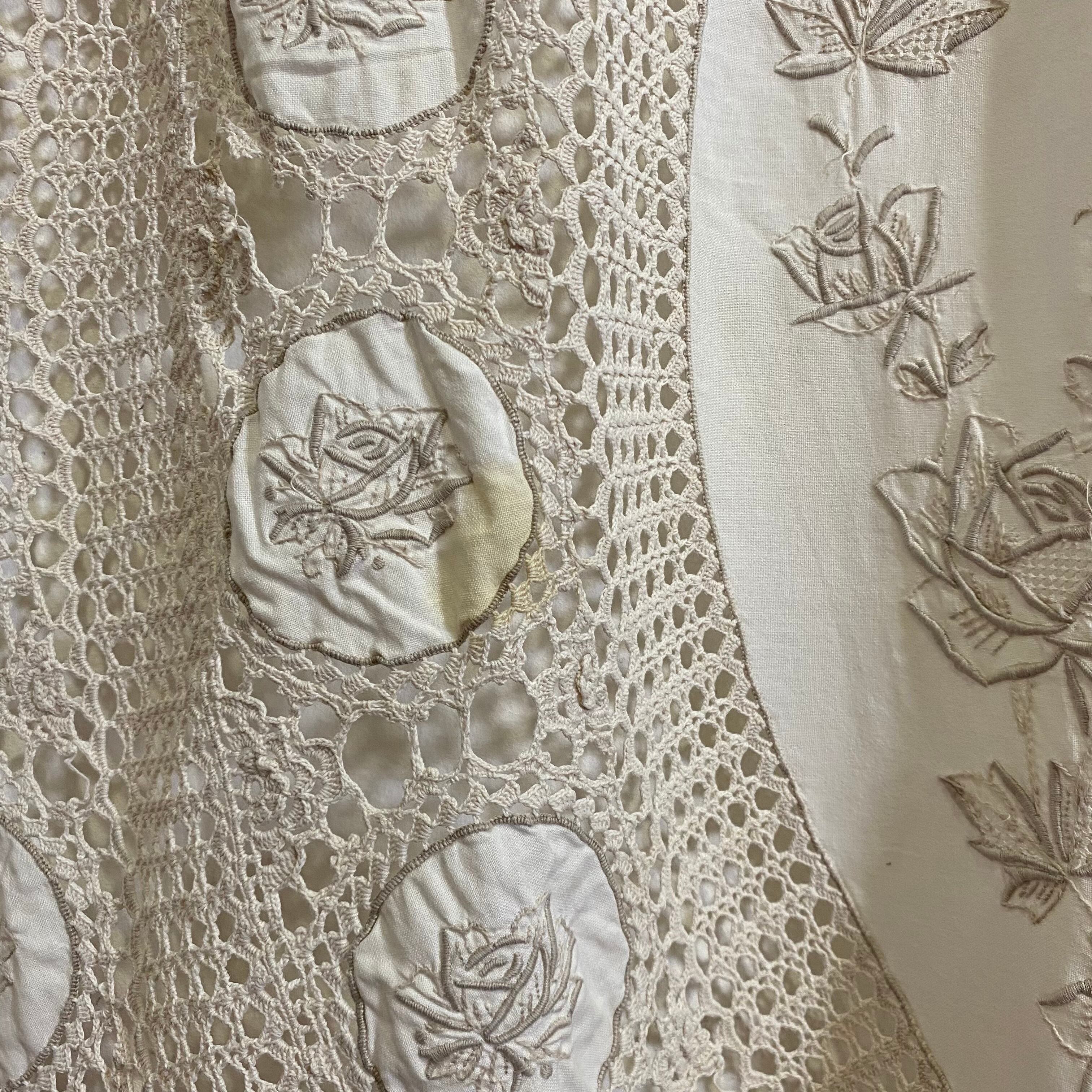 お花の刺繍とクロシェ編みが可愛い、大判ファブリックです。