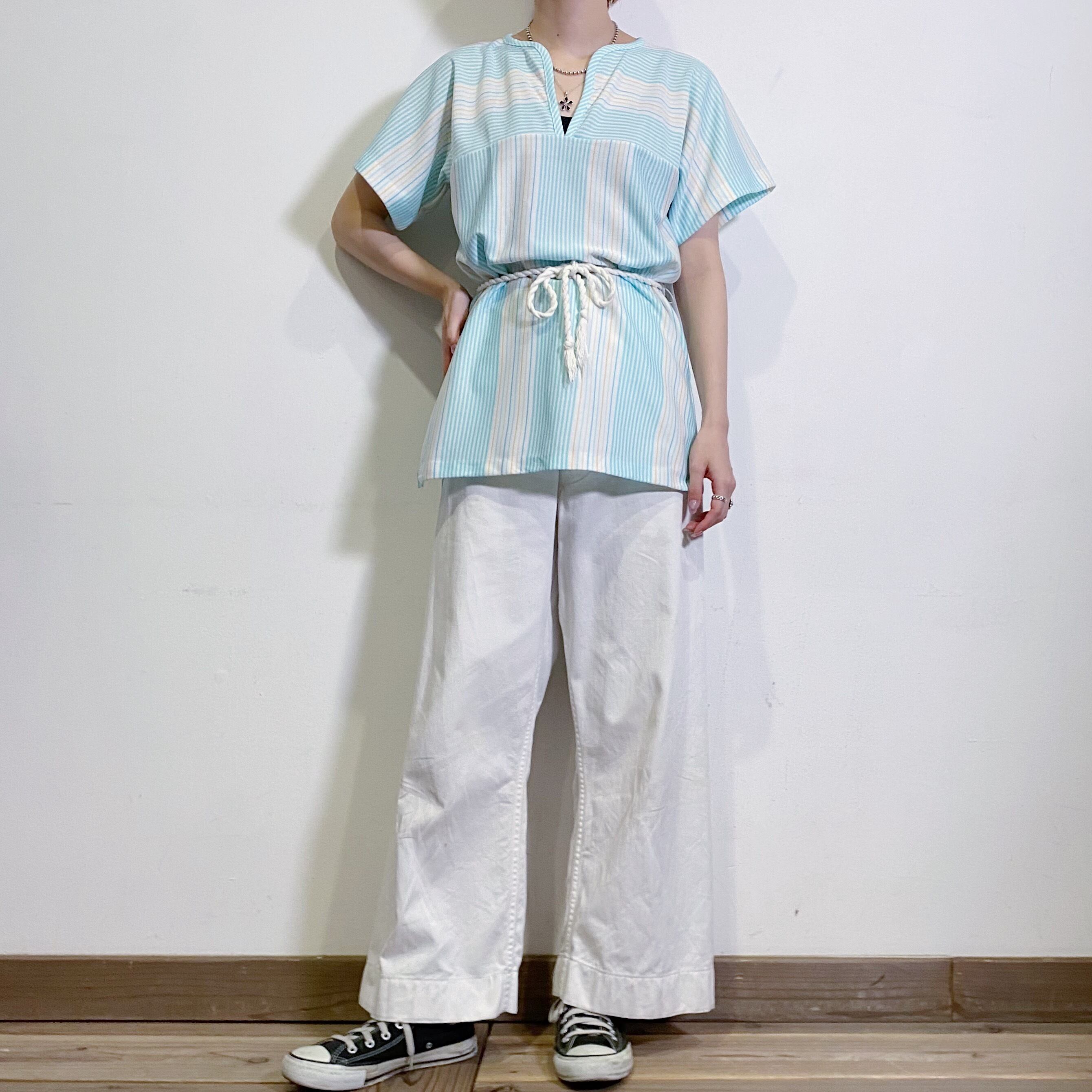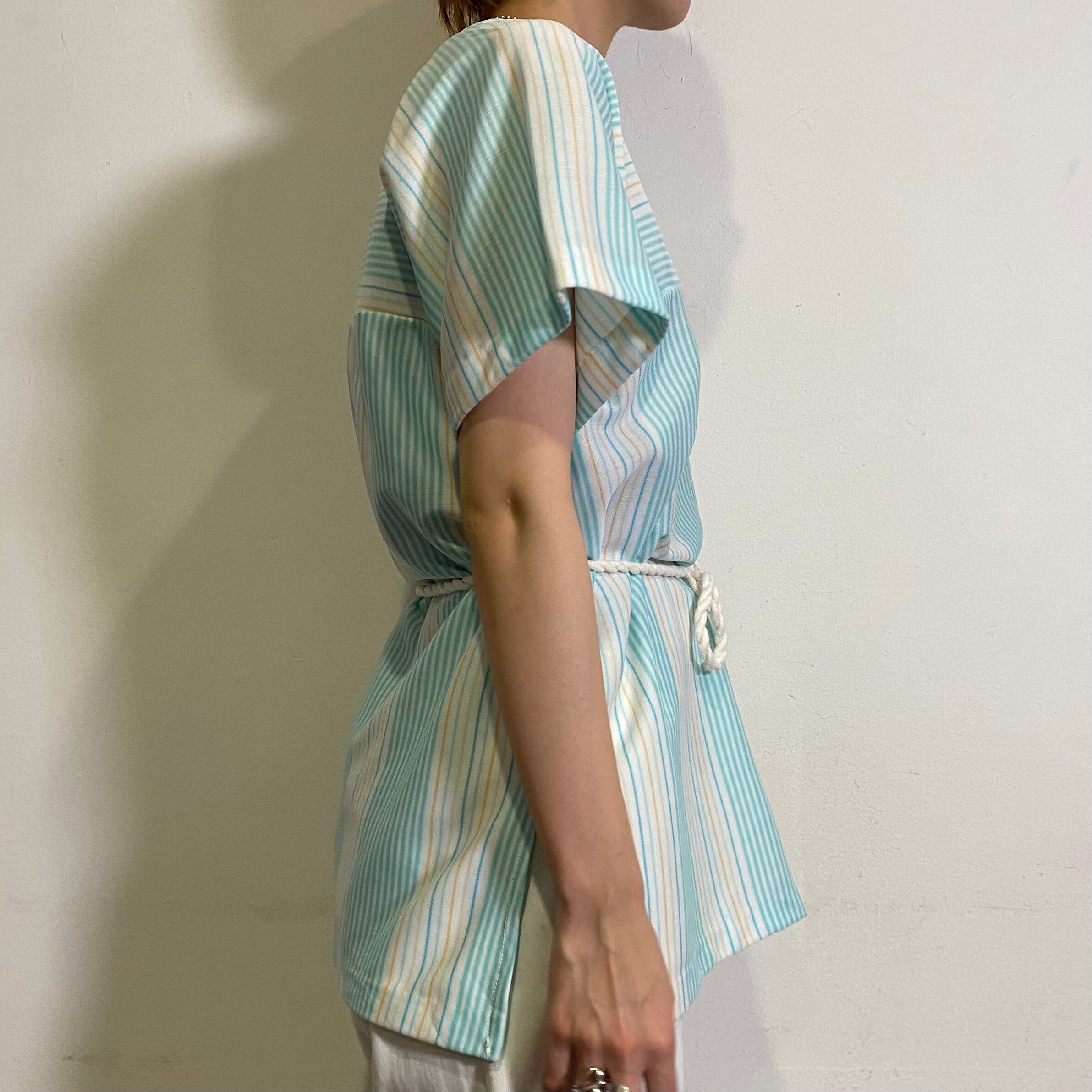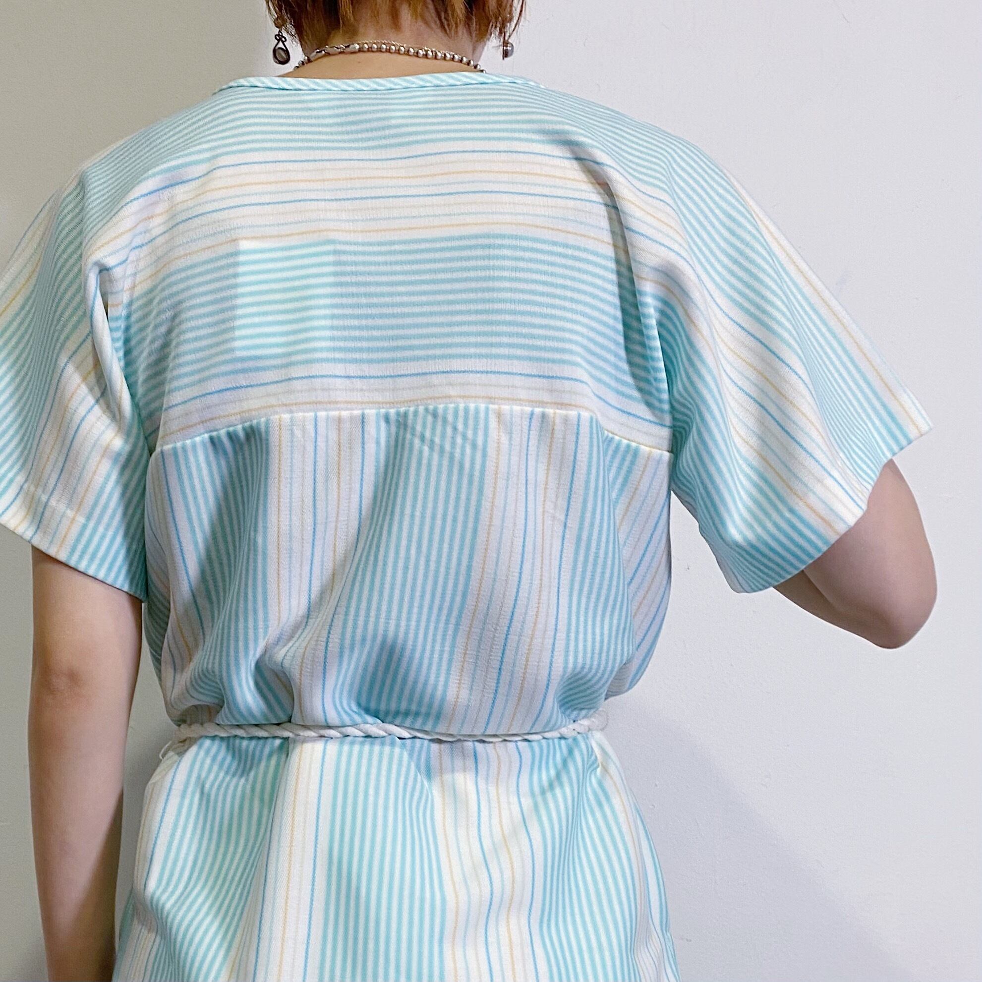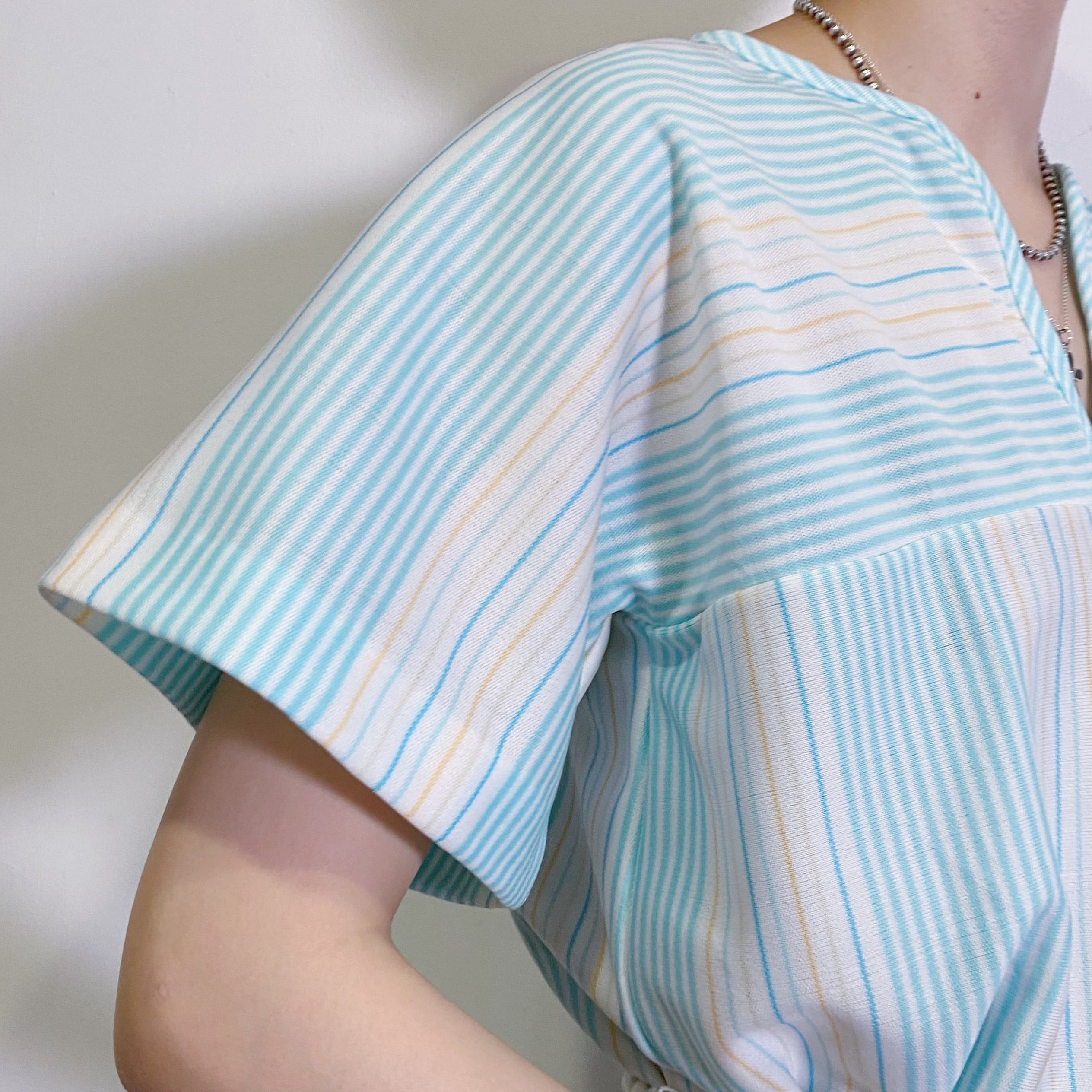 水色と白のストライプが可愛い、80年代の半袖トップスです。