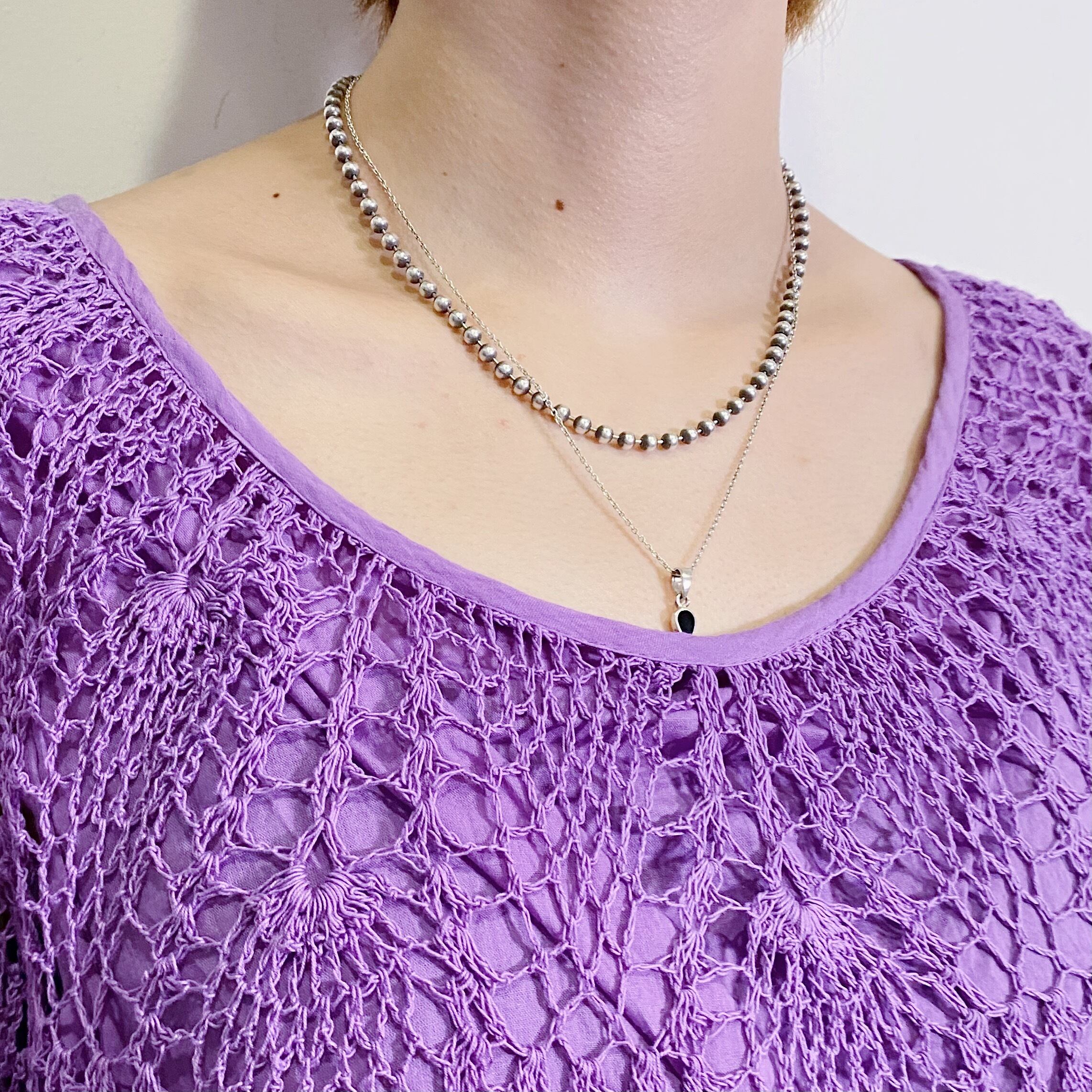 無地のパープルカラーで柄スカートや柄パンツとも相性良く着こなせますよ。