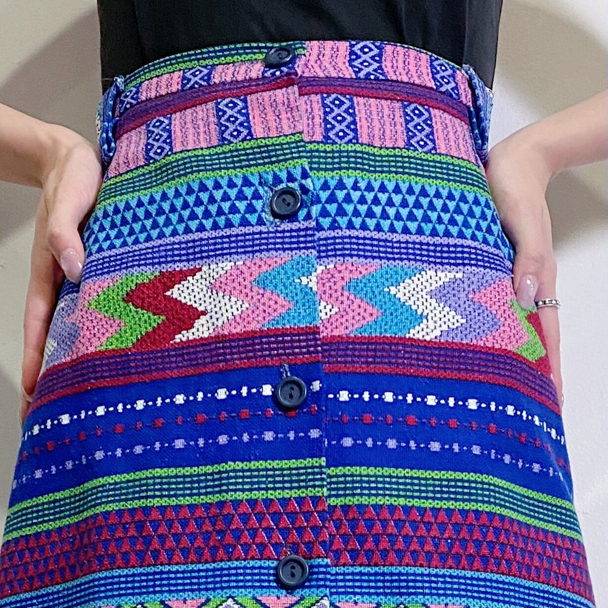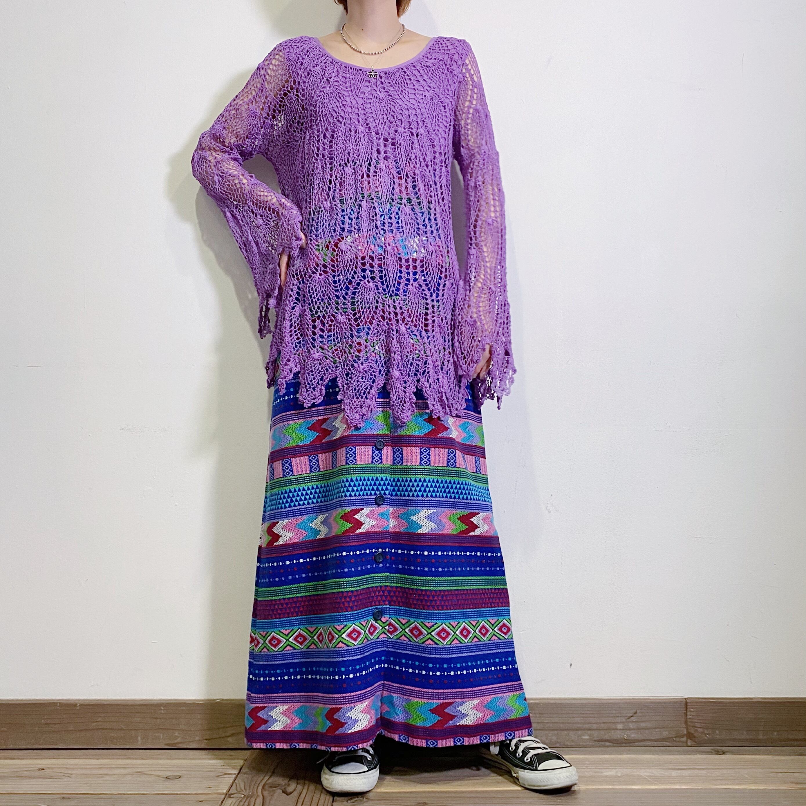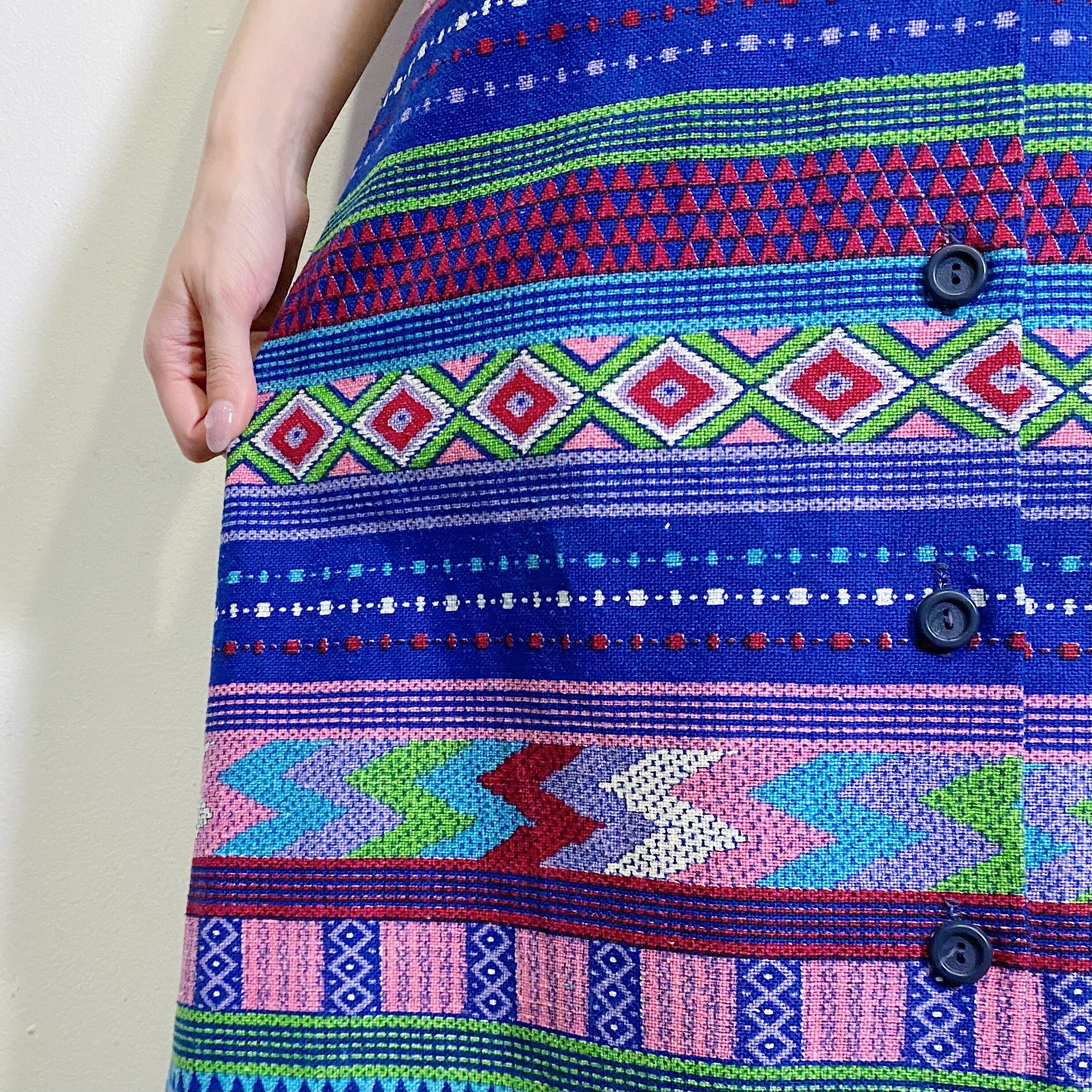 刺繍のようにも見える、様々な模様の織が素敵な70年代のロングスカートです。