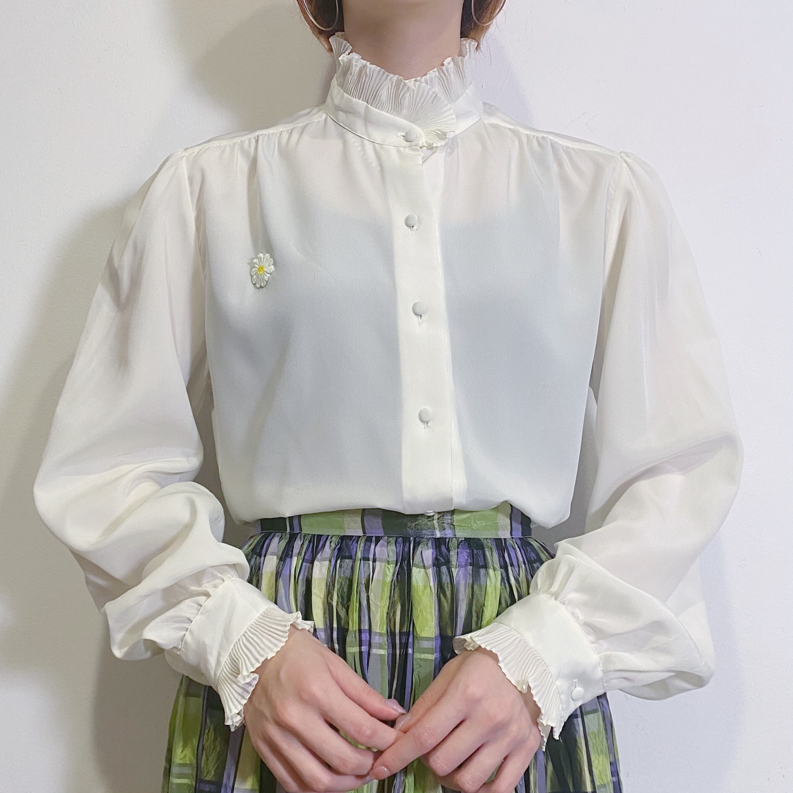 首回りと袖口のフリルが可愛い、70年代の白ブラウスです。