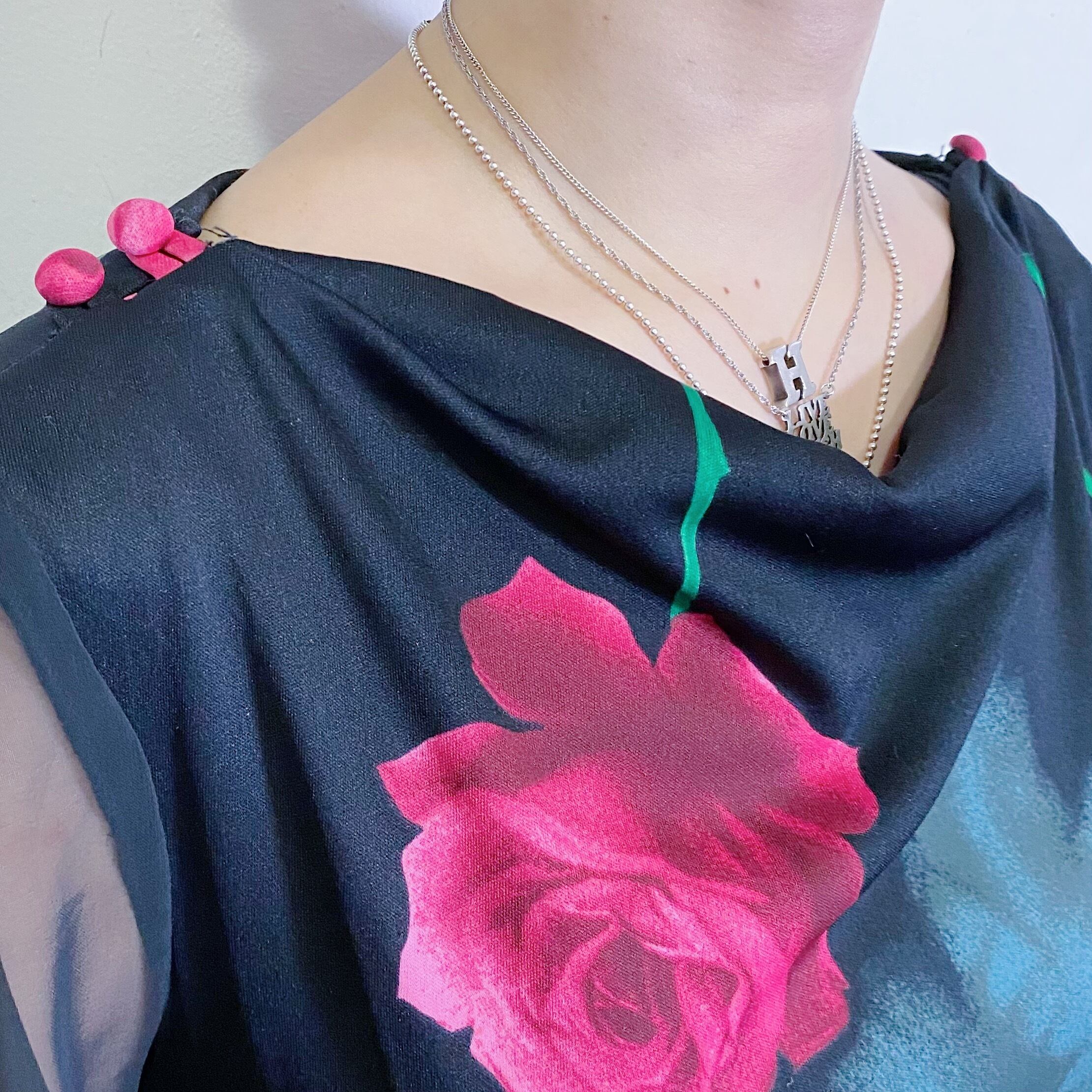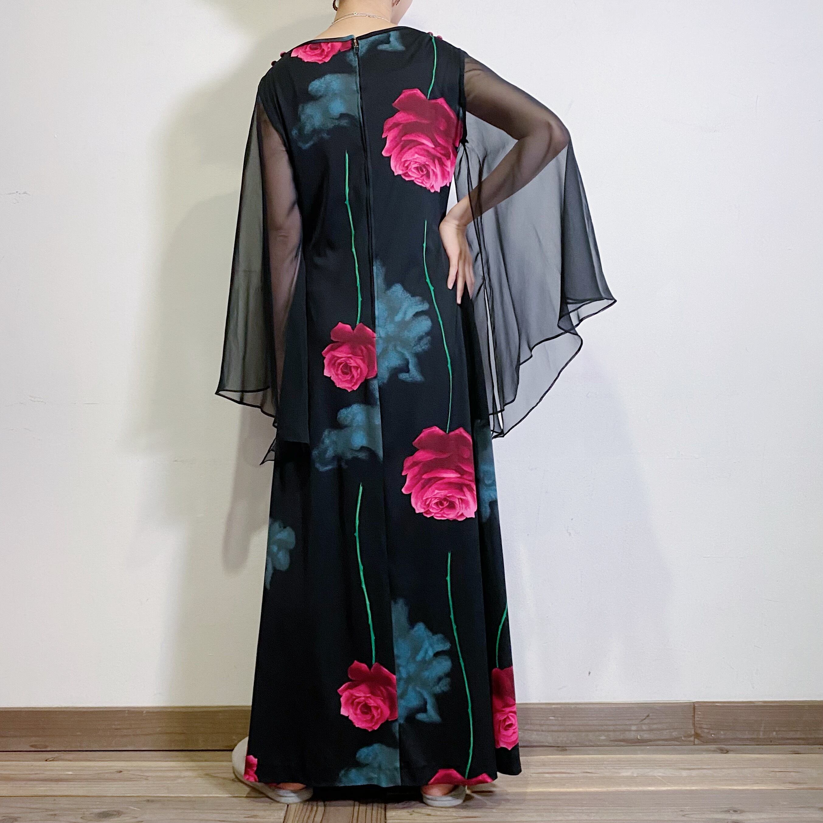 ブラックベースにバラのプリントが映える、70年代のワンピースです。