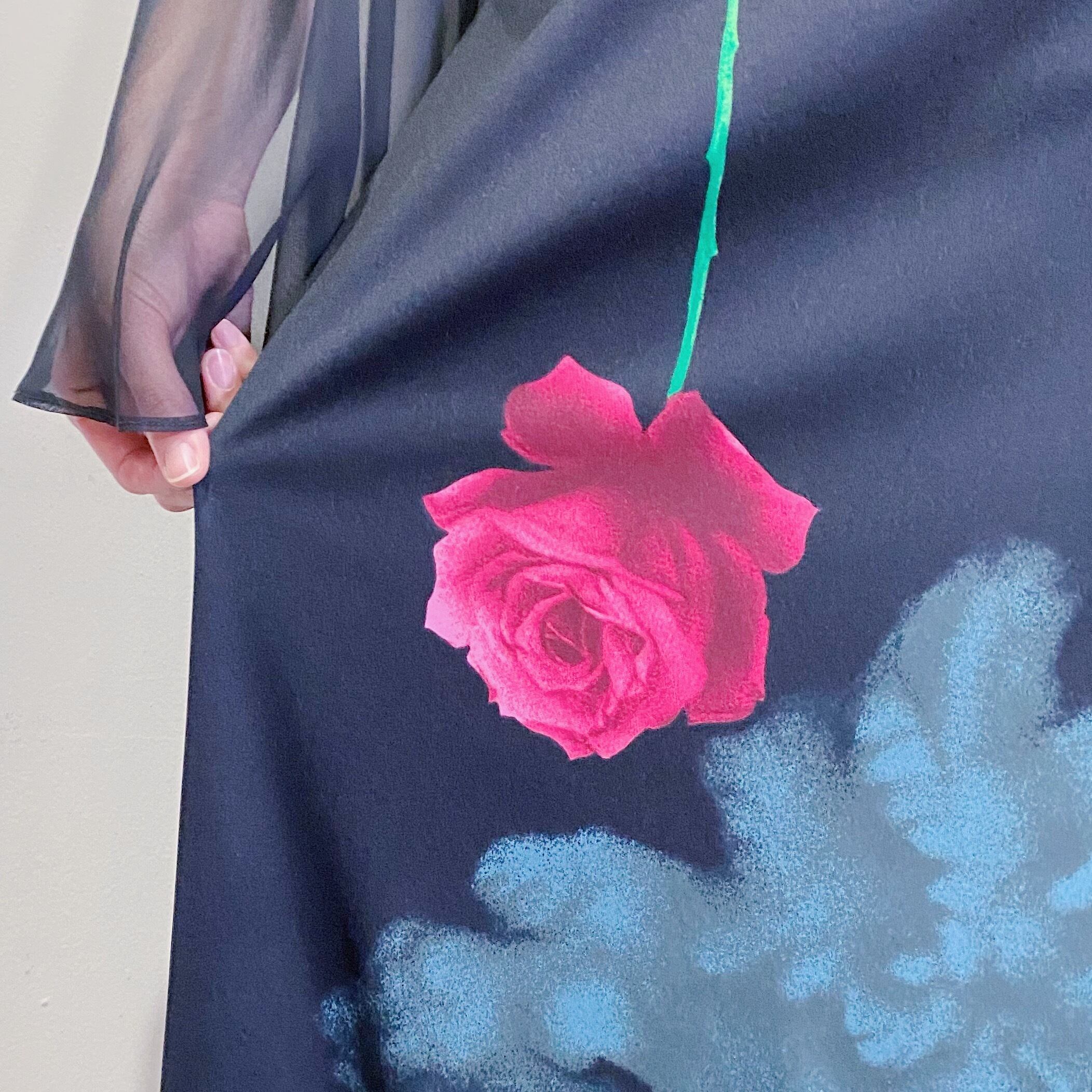 逆さまになったバラとスモークの怪しくも可愛いプリントが、唯一無二です。
