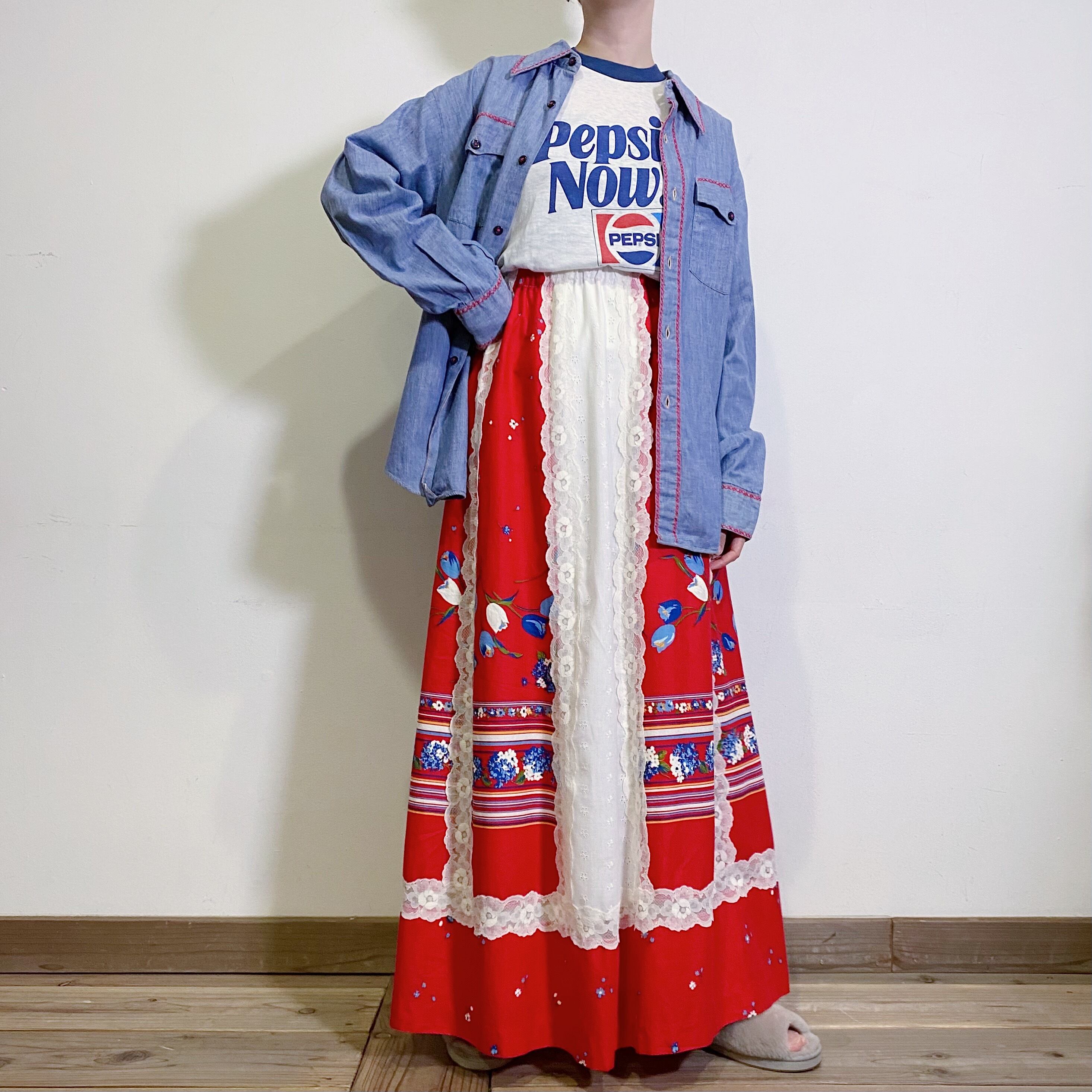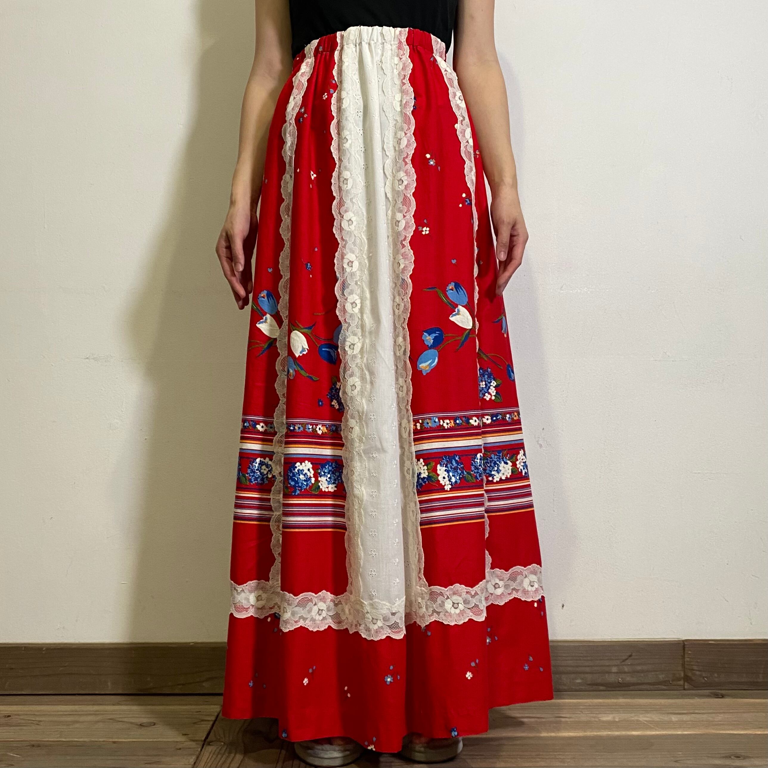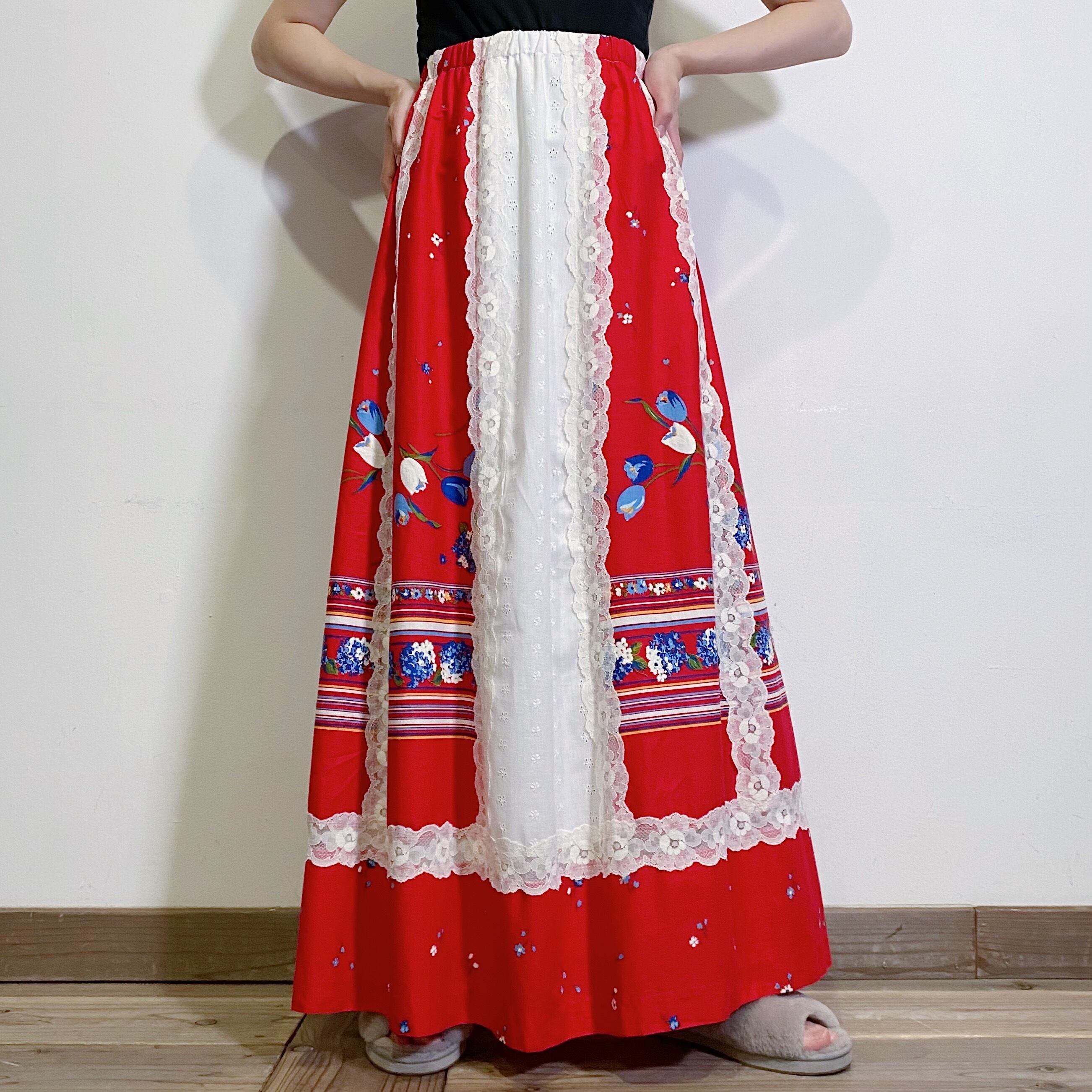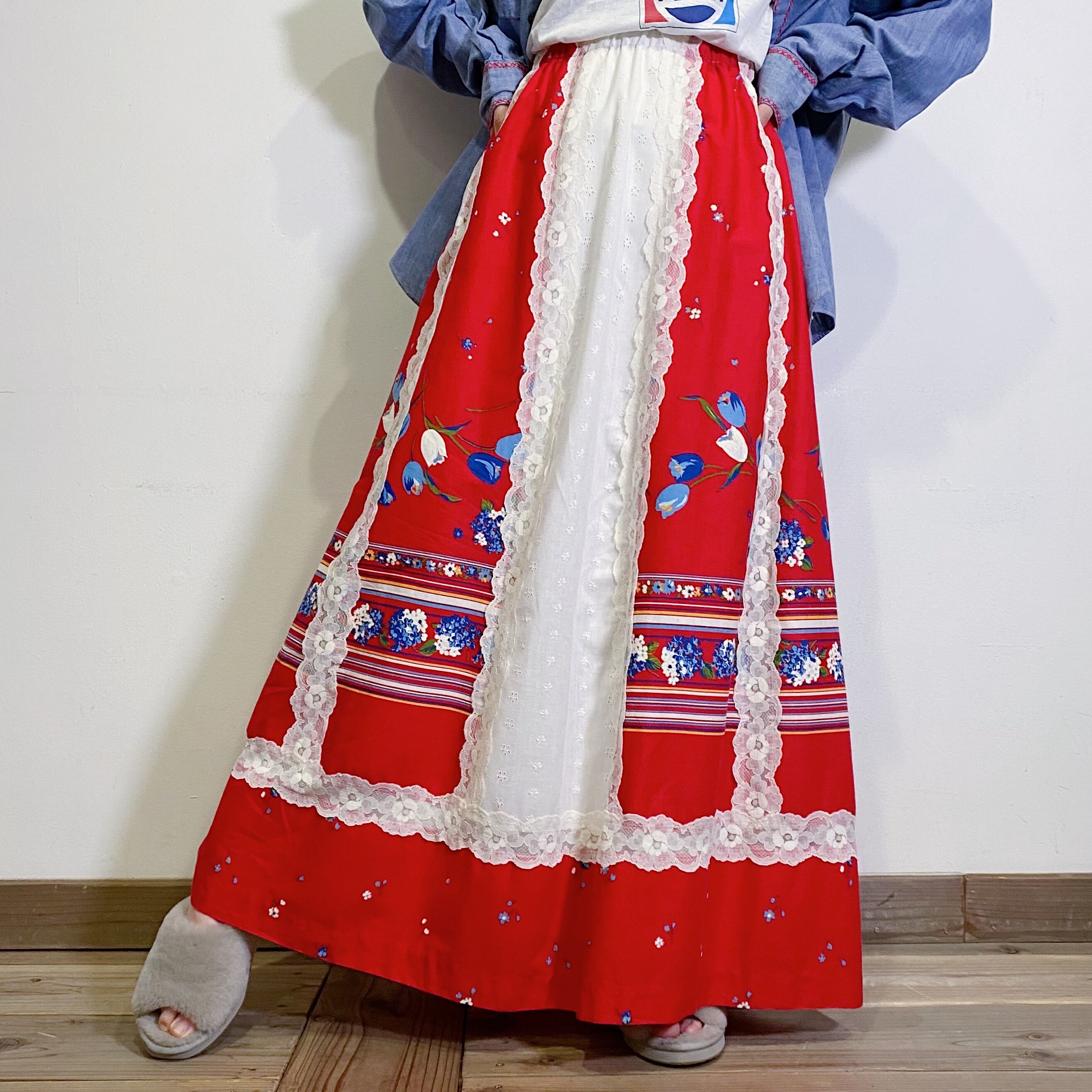 花柄とレースの切り替えが可愛い、70年代のスカートです。
