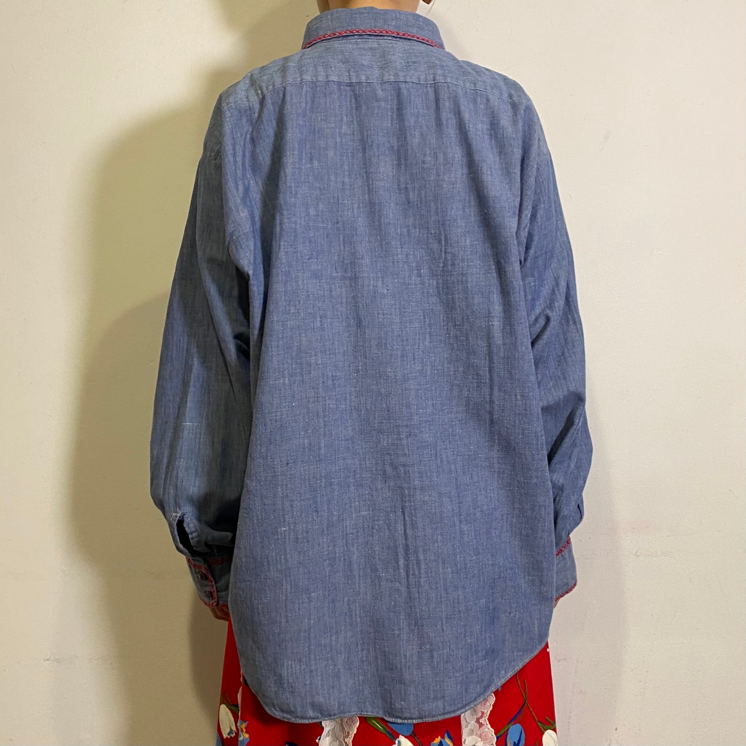 70s cross stitch chambray shirt