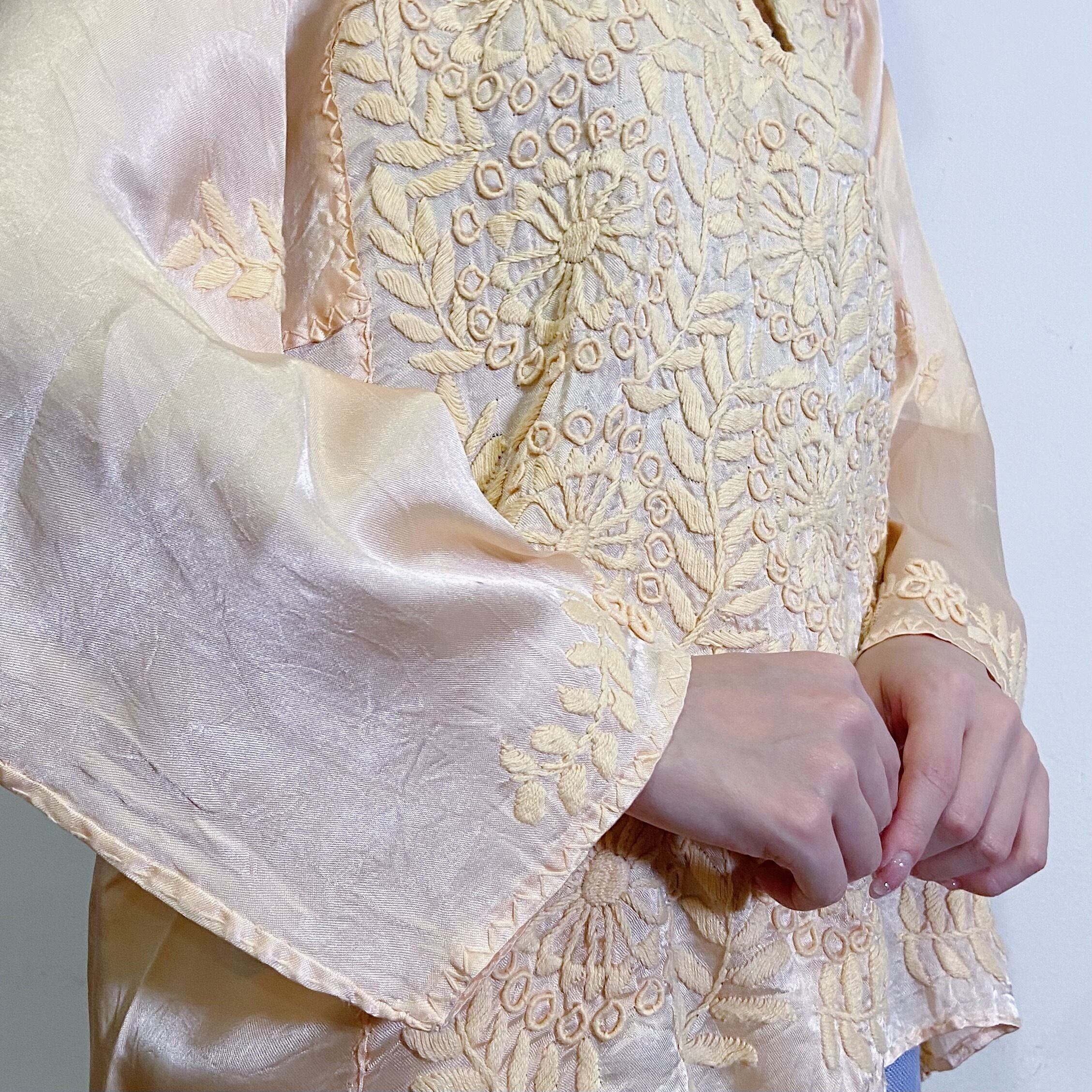 フロントには、お花の刺繍がびっしりと同色の糸で施されております。